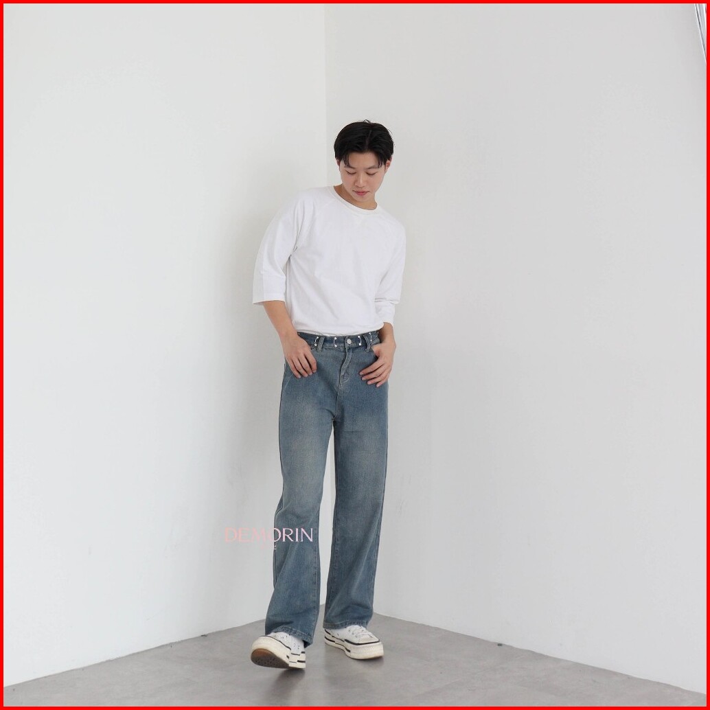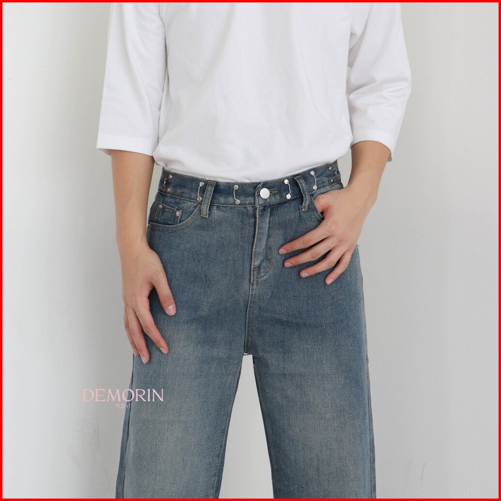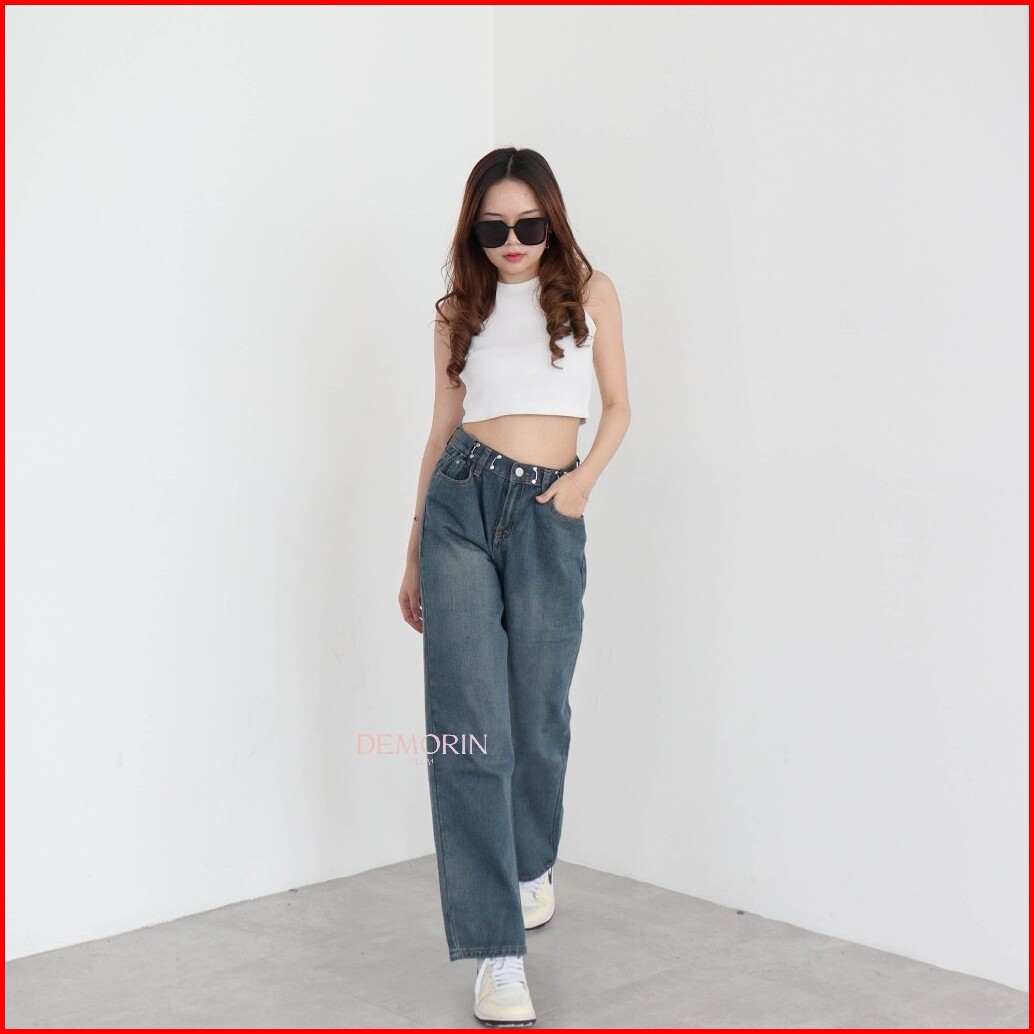 Demorin Celana Panjang Jeans Unisex Loose High Waist Denim Baggy Jeans Kait Pengecil Pinggang X19