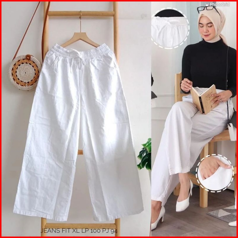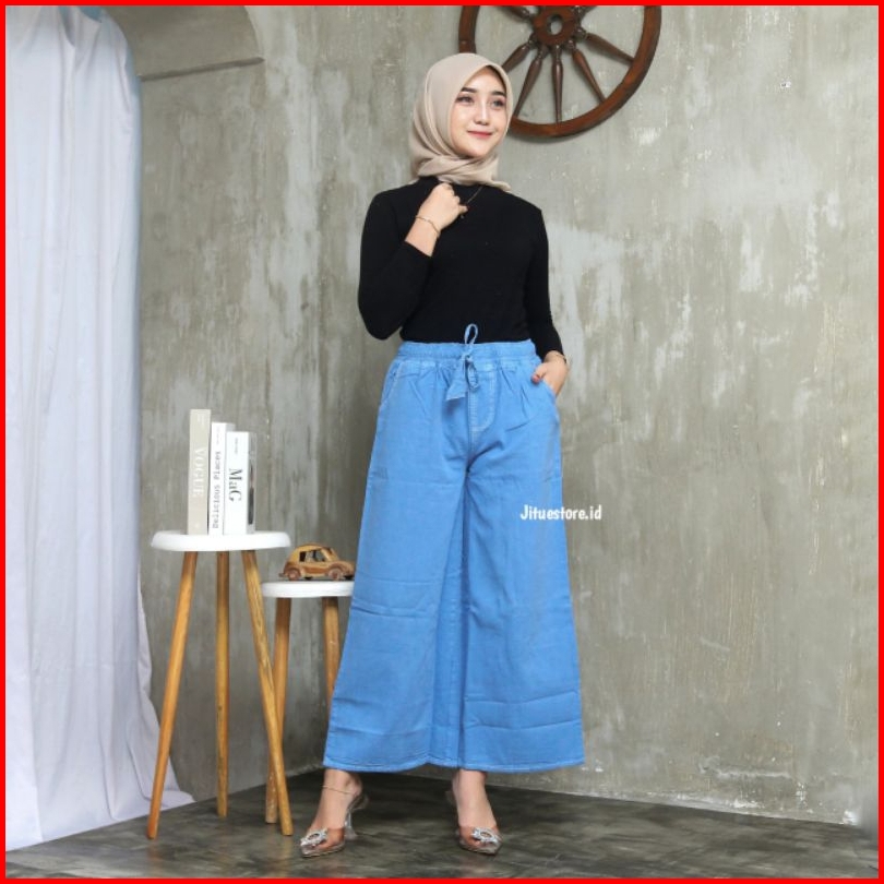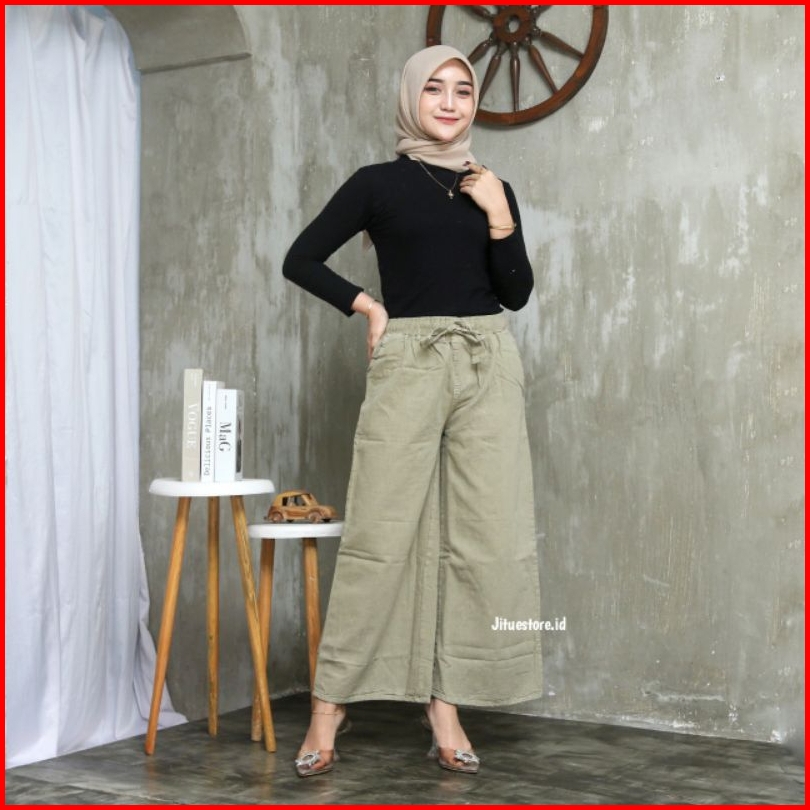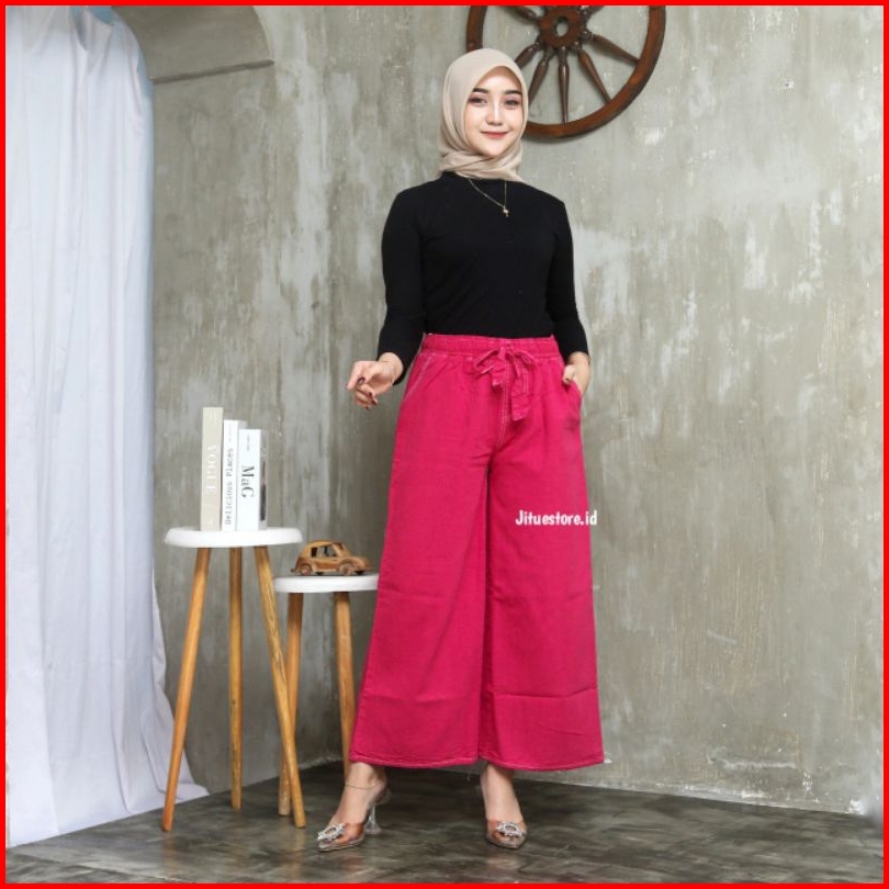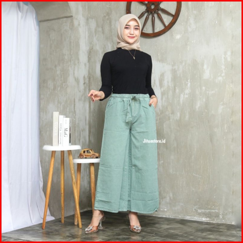 Kulot Jeans Pinggang Karet Kulot Jeans Putih Hitam Kulot Mozza Pinggang Karet Sage Cream Mocca Fuschia
