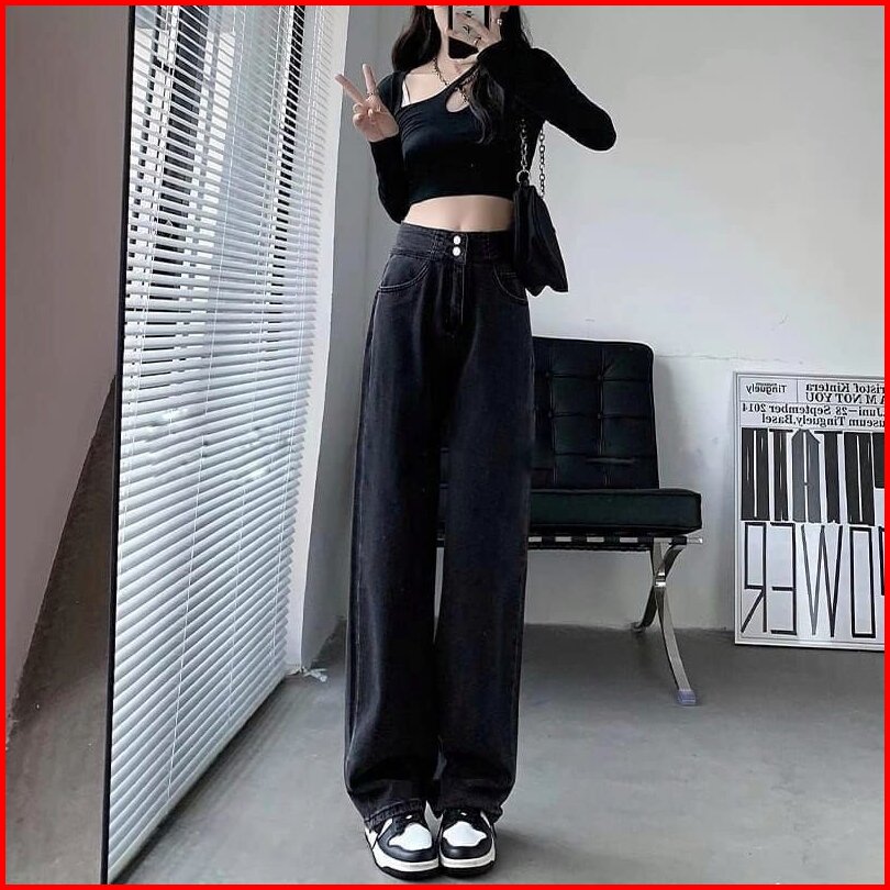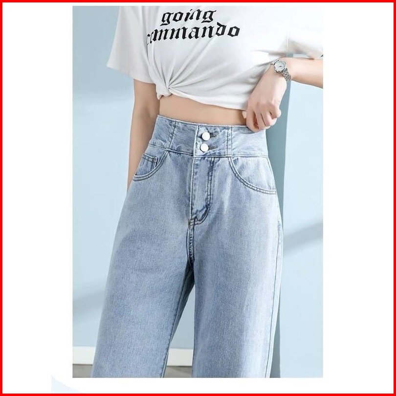Celana Jeans Wanita Kulot Highwaist Kancing Silang Belakang Jumbo