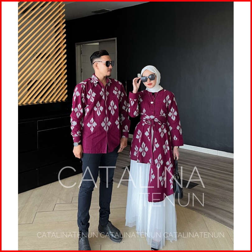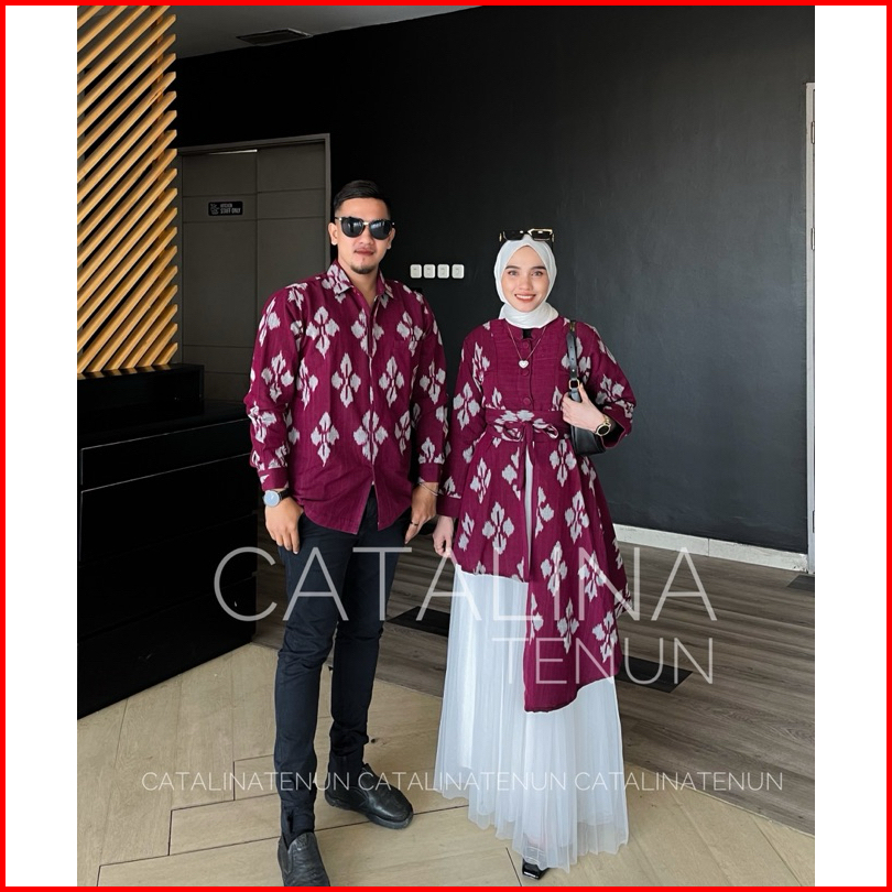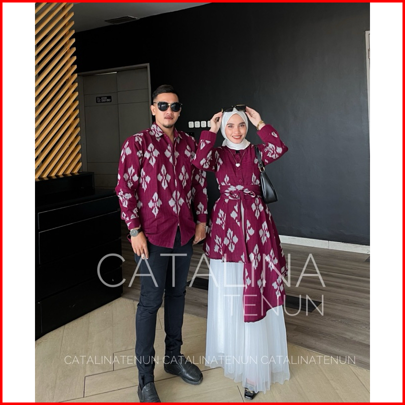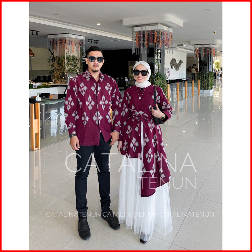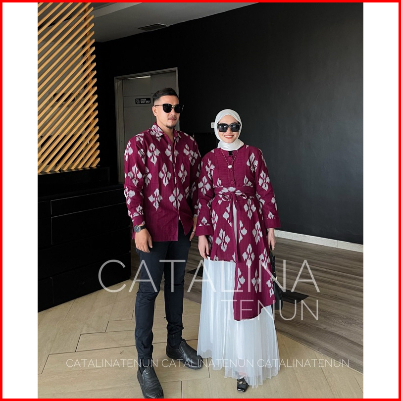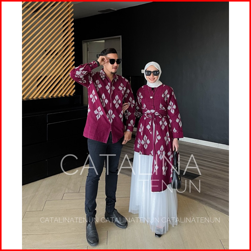 Couple Tenun Marwa Maron - Baju Couple Kondangan - Tenun Couple Set - Kemeja Gamis Kondangan - Baju Tenun Keluarga