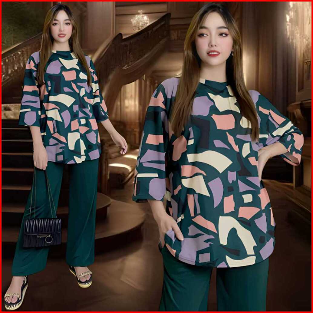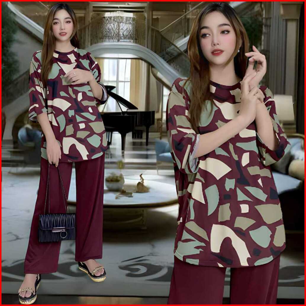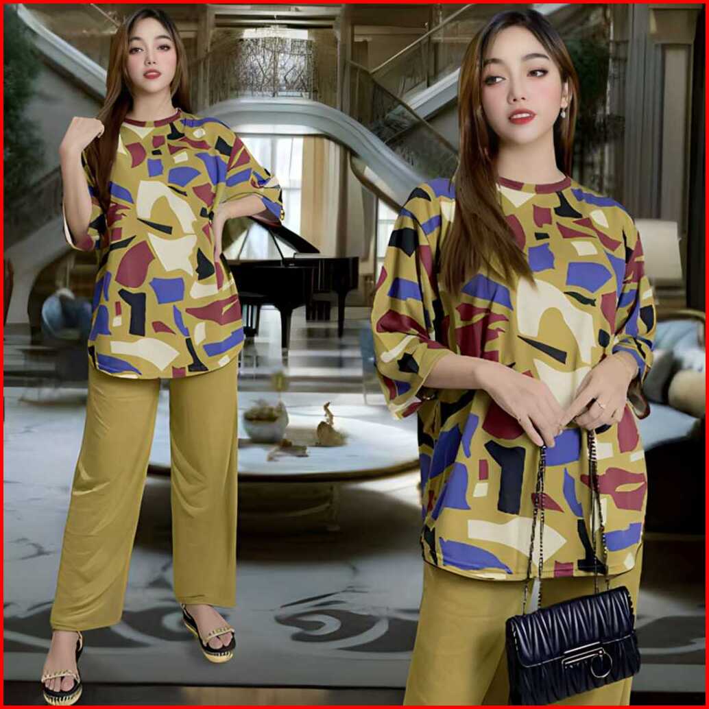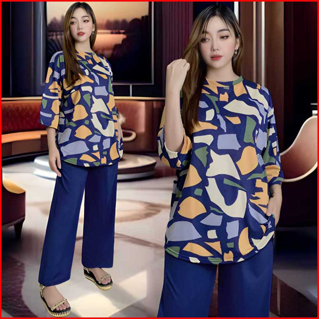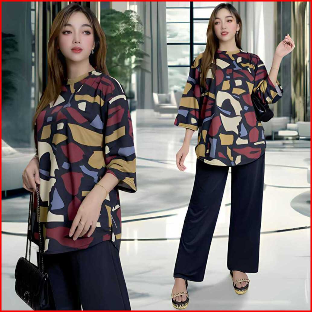 Aziza Baju Setelan Wanita Pakaian Setelan Celana Panjang Celana Lurus Kantong Kiri Kanan Dan Atasan Ld120 Oval Belahan K