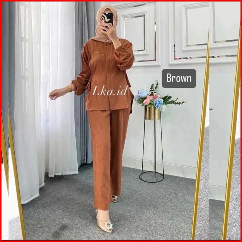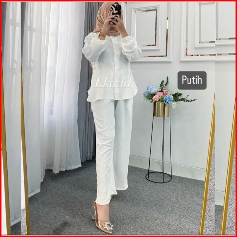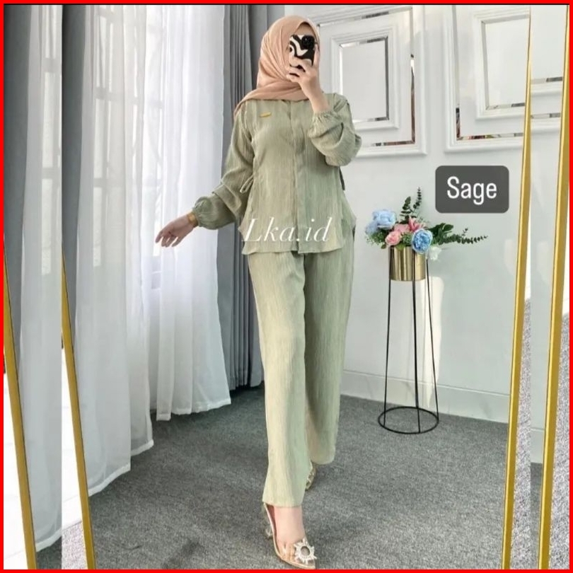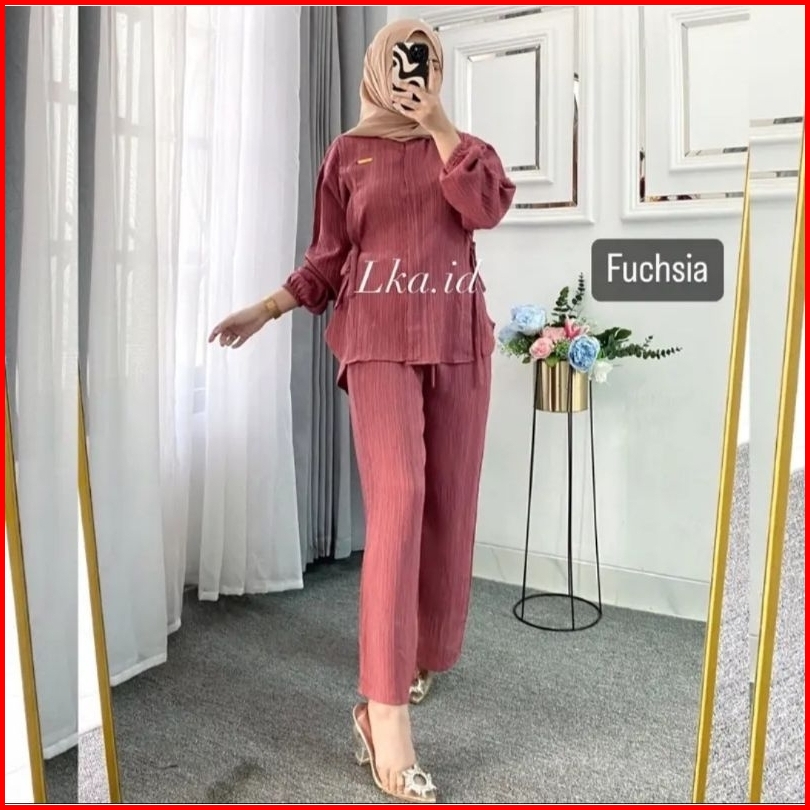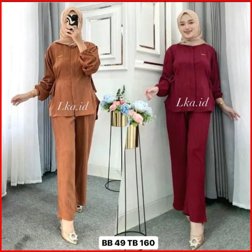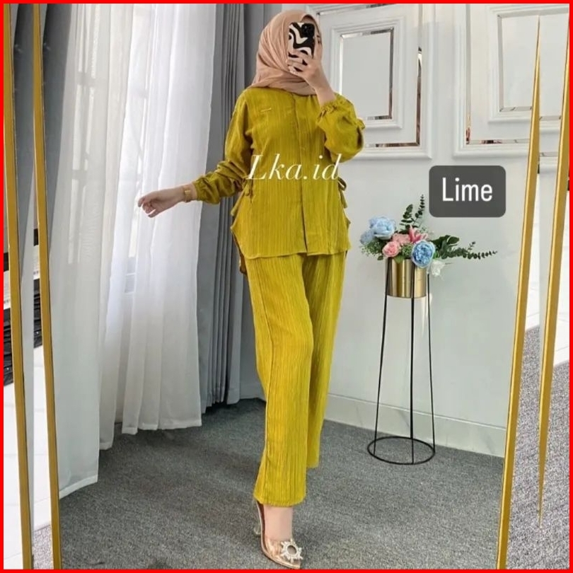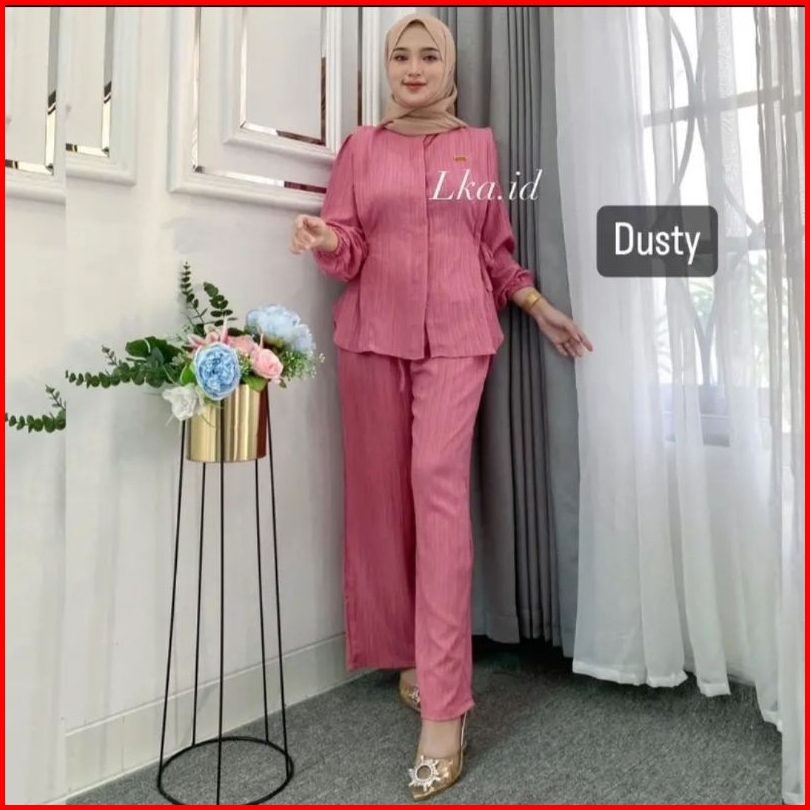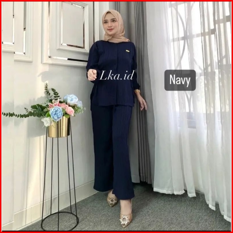 Naura One Set Premium Lady Crush Kekinian Baju Setelan Wanita Busui Terbaru Lengan Panjang Polos
