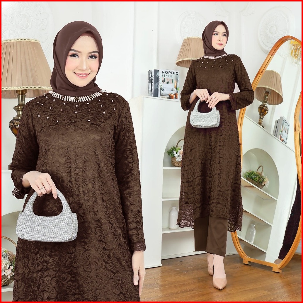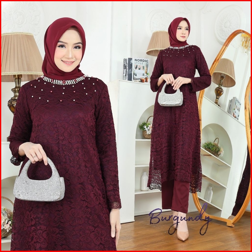 Set Asteria 3warna Atasan Tunik Dan Celana L Xl Xxl 3xl Setelan Wanita Pesta Brokat Kondangan By Stella Collection