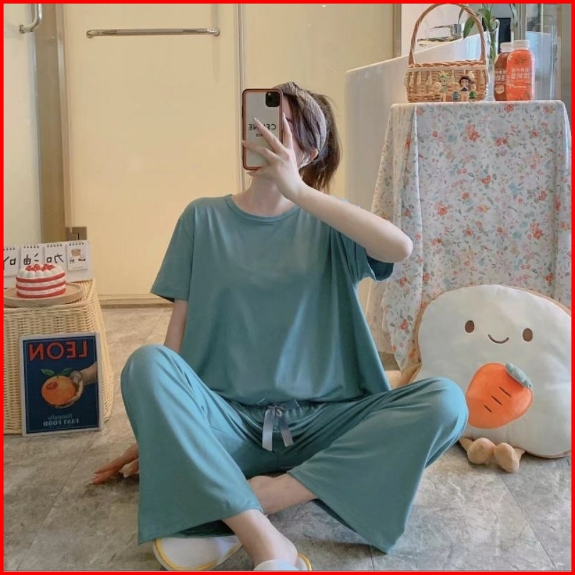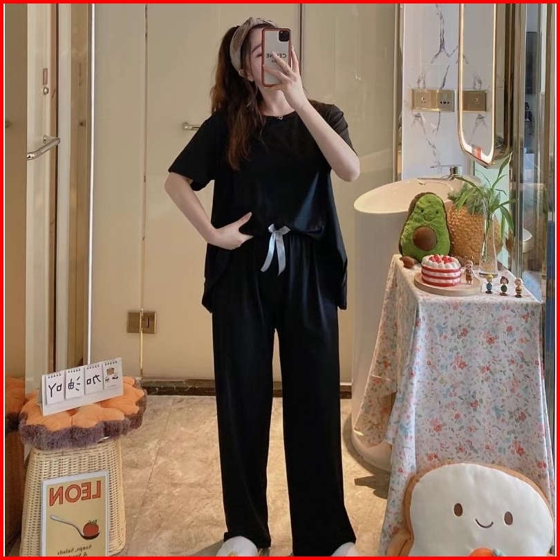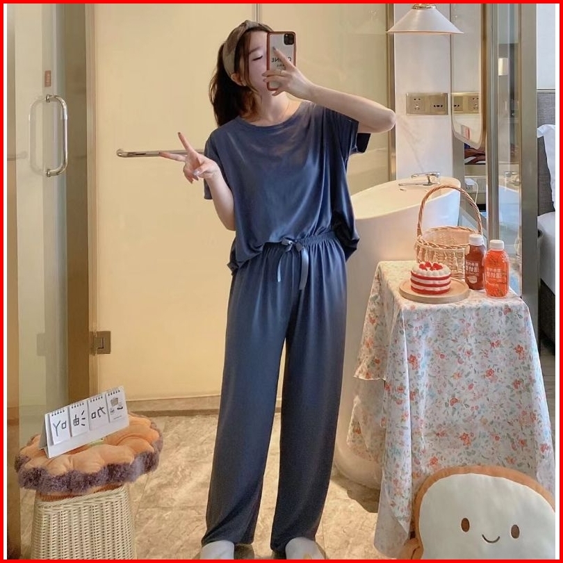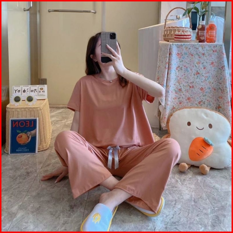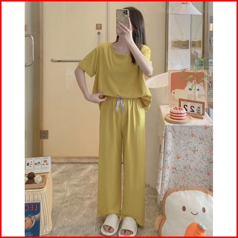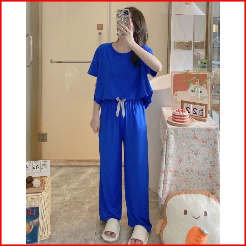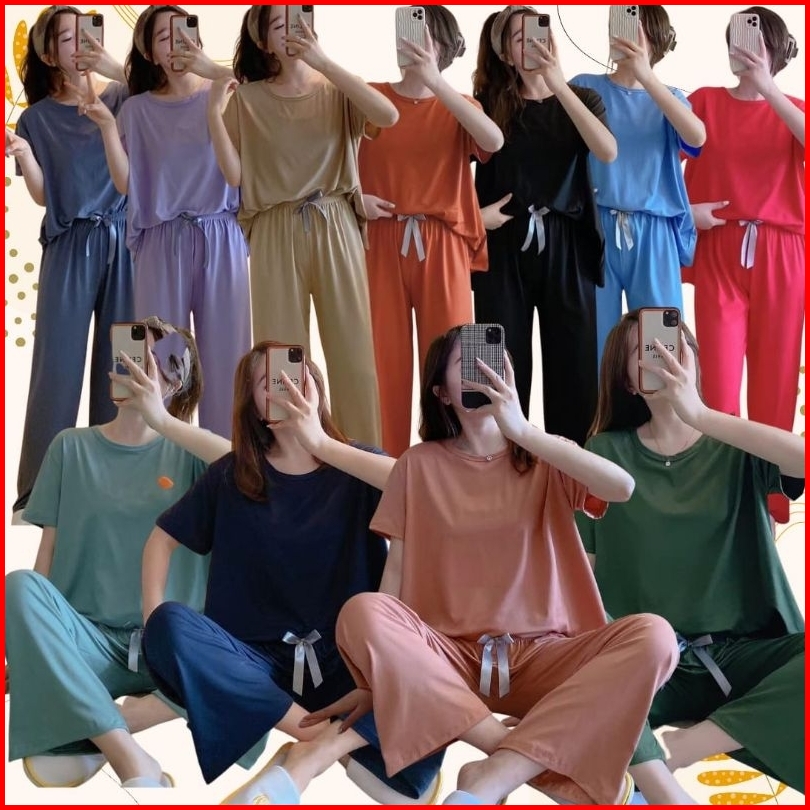 Rulif Oneset Setelan Wanita Baju Wanita Lengan Pendek Cp Import Spandek Polos Pita Cp Polos