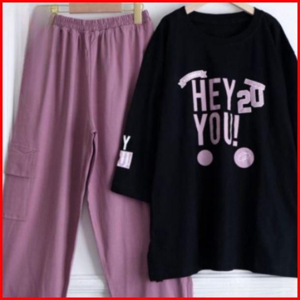 Setelan Baju Atasan Wanita Dan Celana Cargo Hey You Setelan Wanita Bahan Babyterry