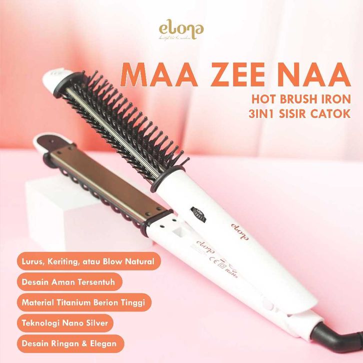 Elona Maa Zee Naa ~ Hot Brush Iron ( 3in1 sisir catok lurus keriting blow )