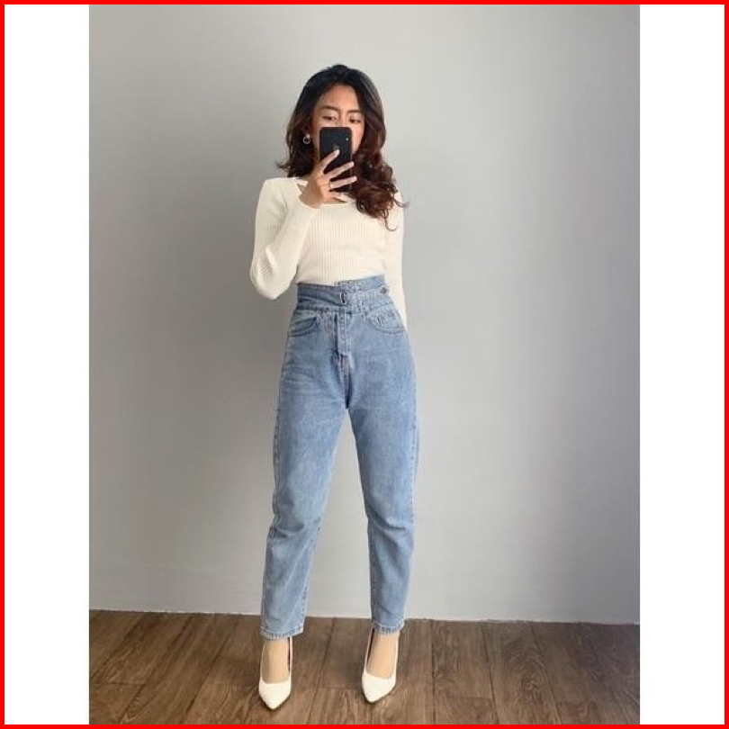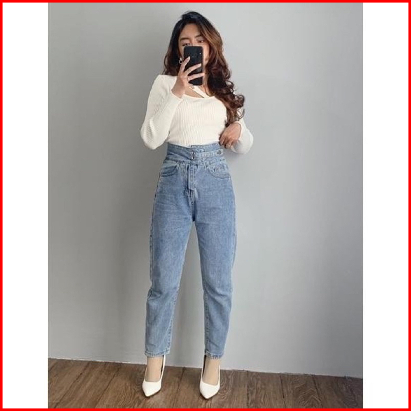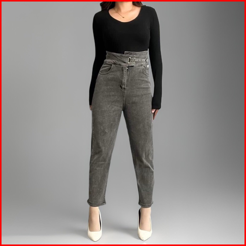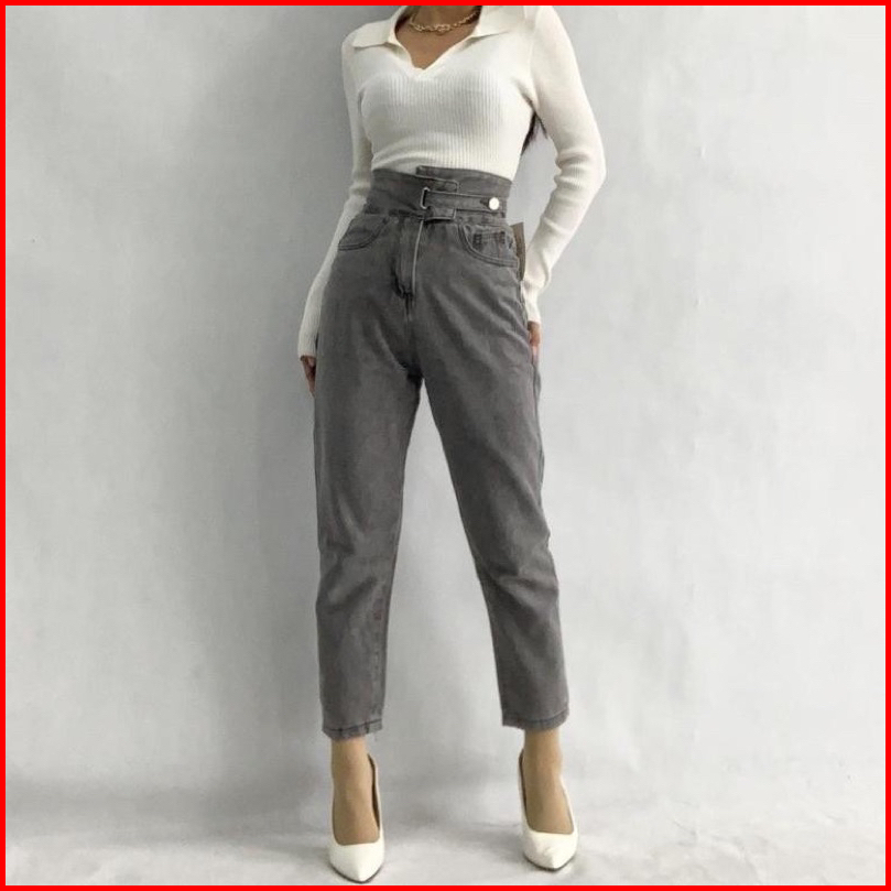 Celana Boyfrend Hw Jeans D46 Tali Pinggang 27-34 Abu