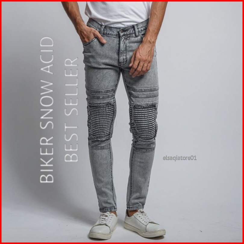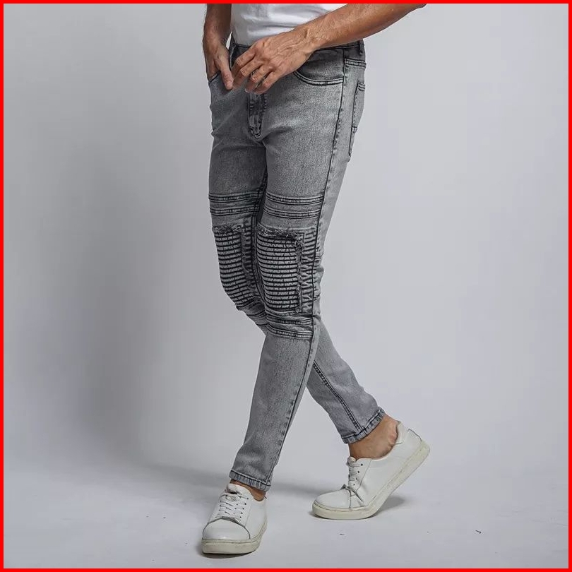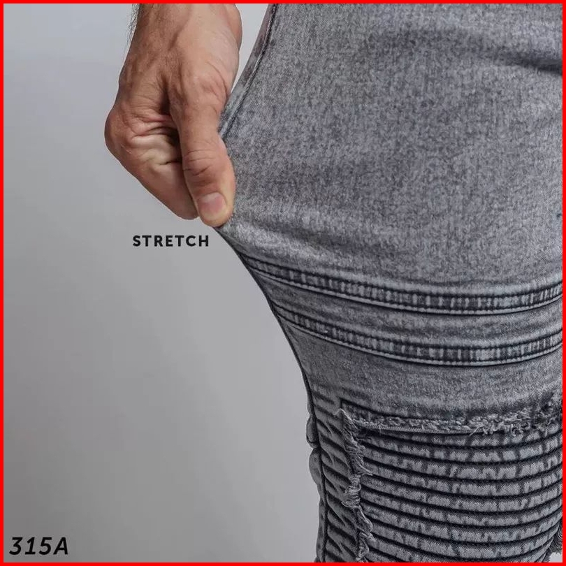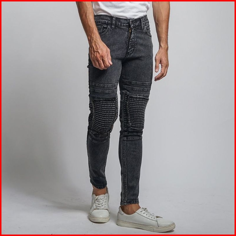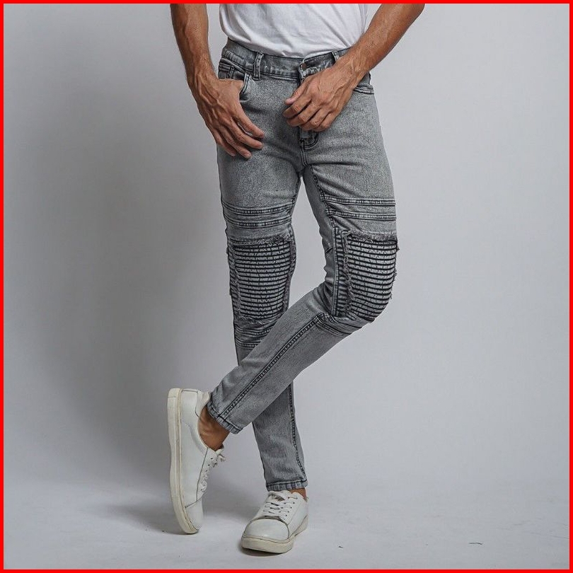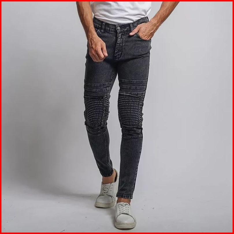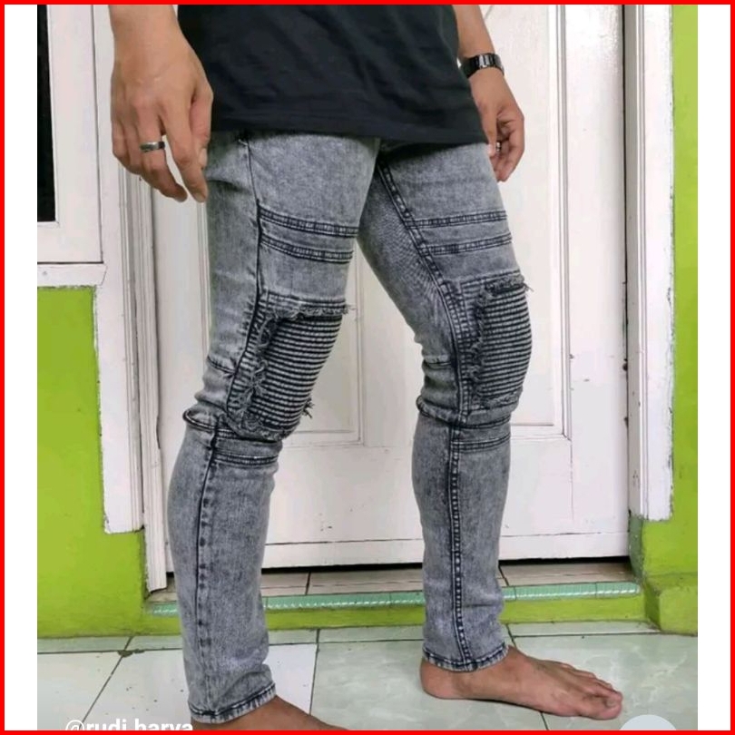 Celana Jeans Biker Riders Pria Skinny Jeans Panjang Polos Sobek Popol