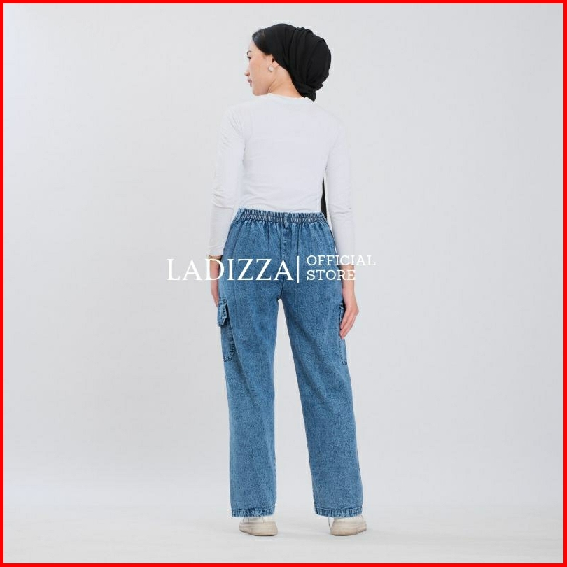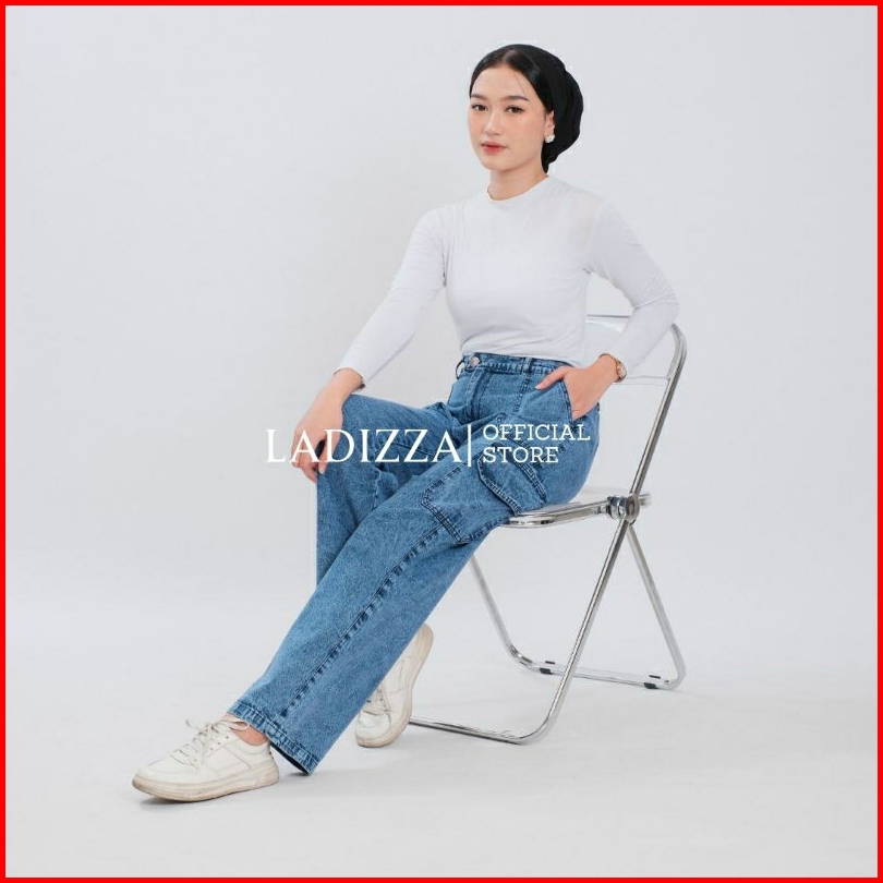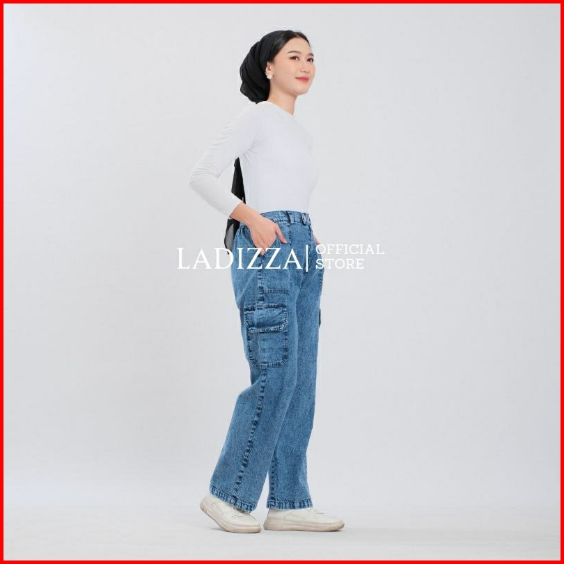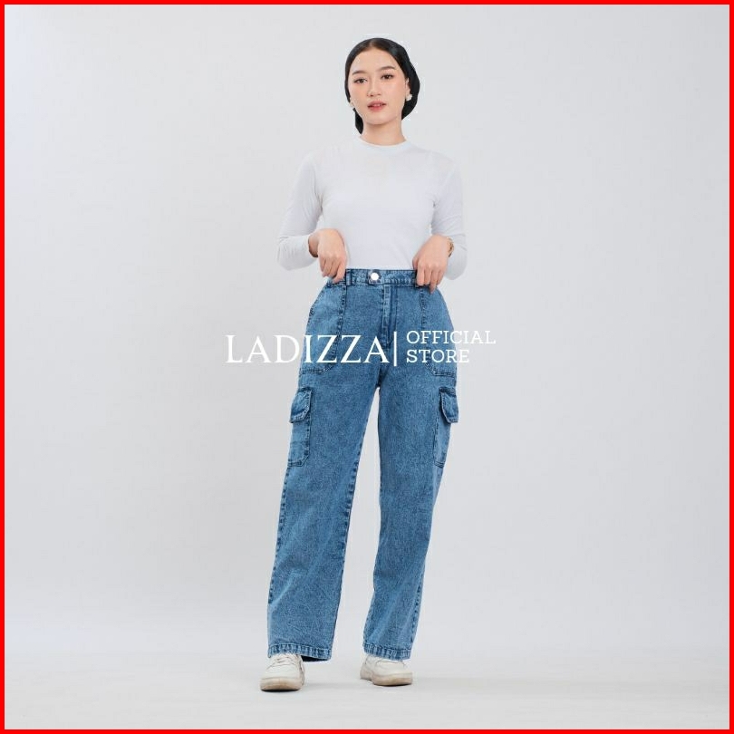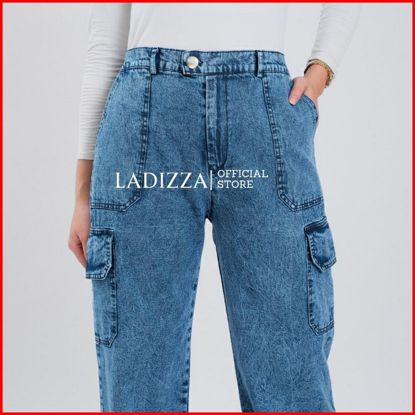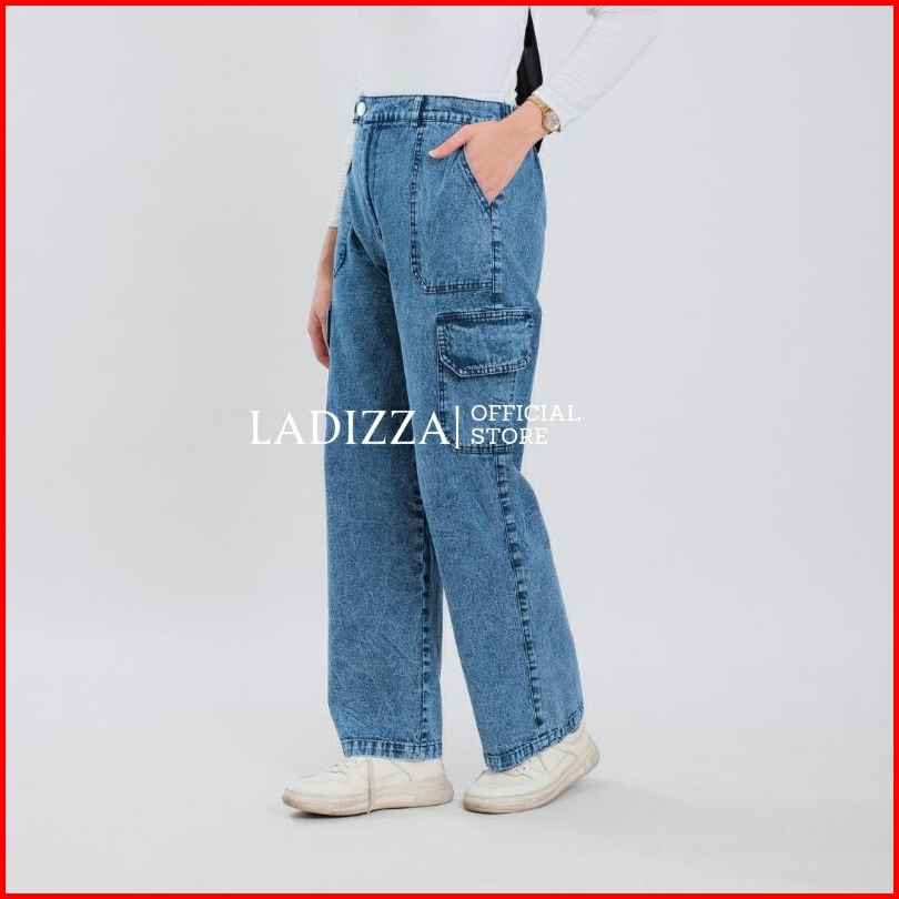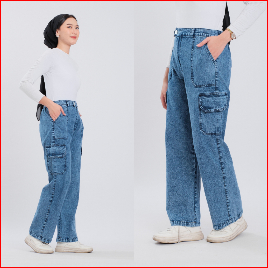 Celana Jeans Cargo Wanita Celana Denim Cargo Highwaist Snow Blue