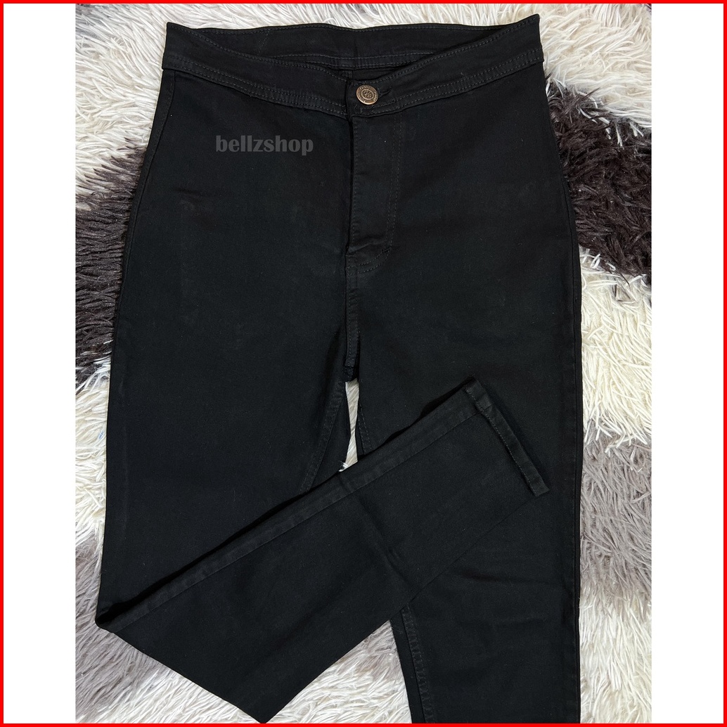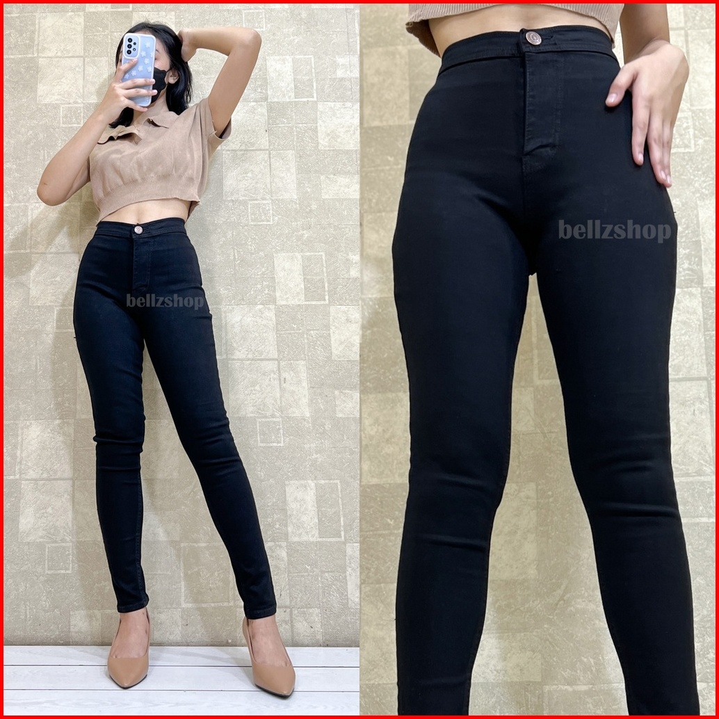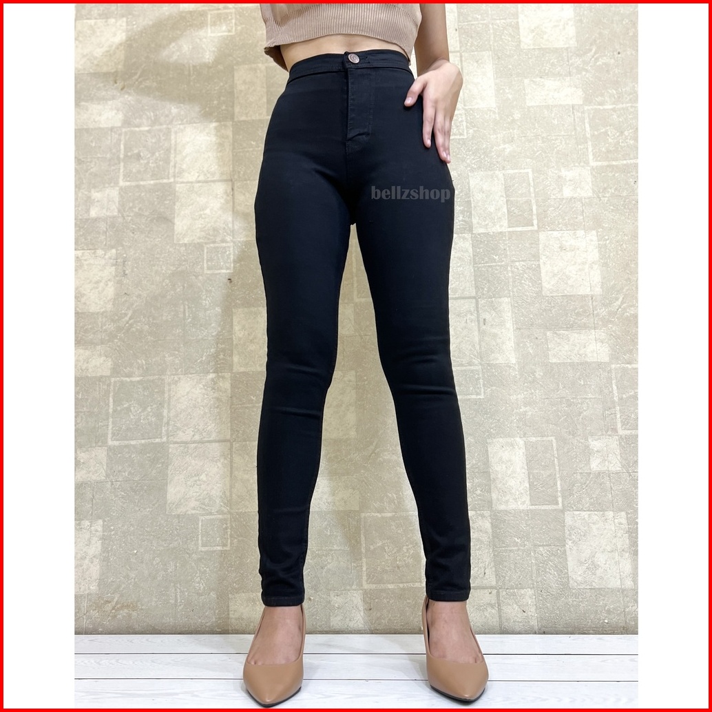 Celana Highwaist Wanita Jeans Stretch Hitam Polos Jumbo Premium Morrin Bellzshop Size 27 Sd 34