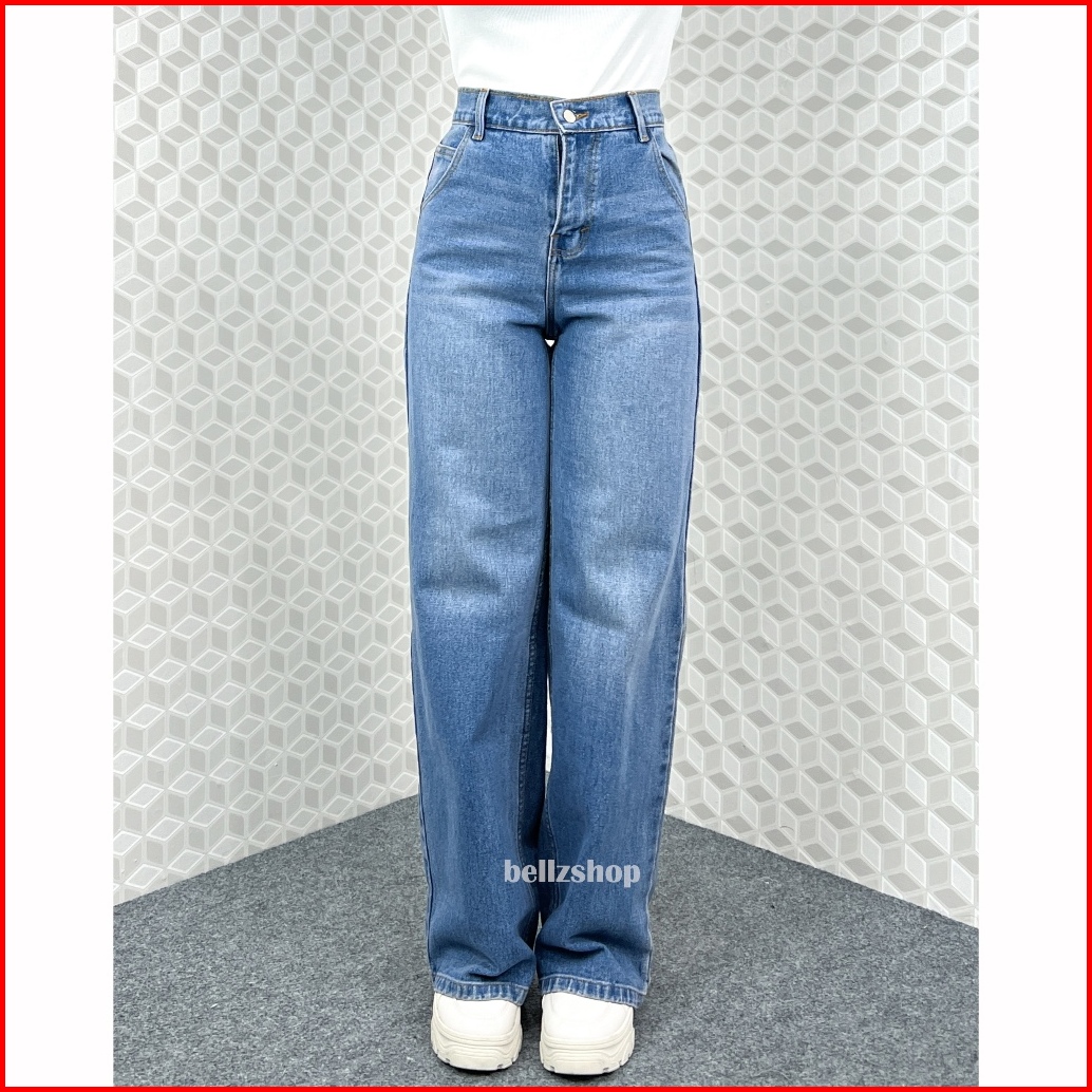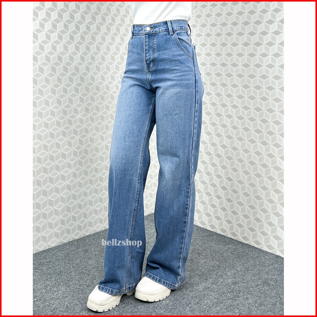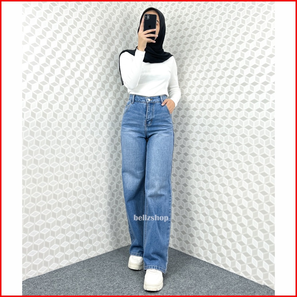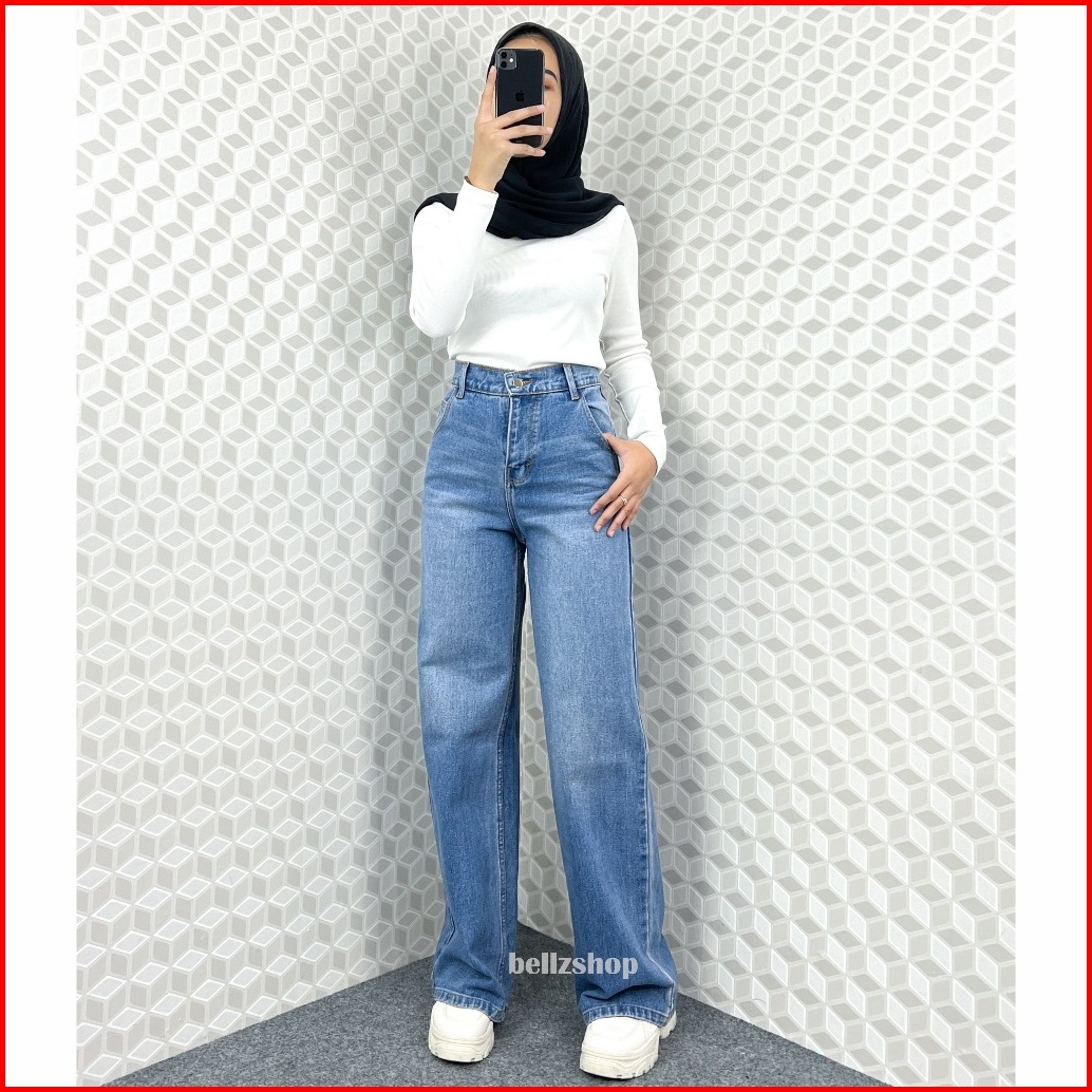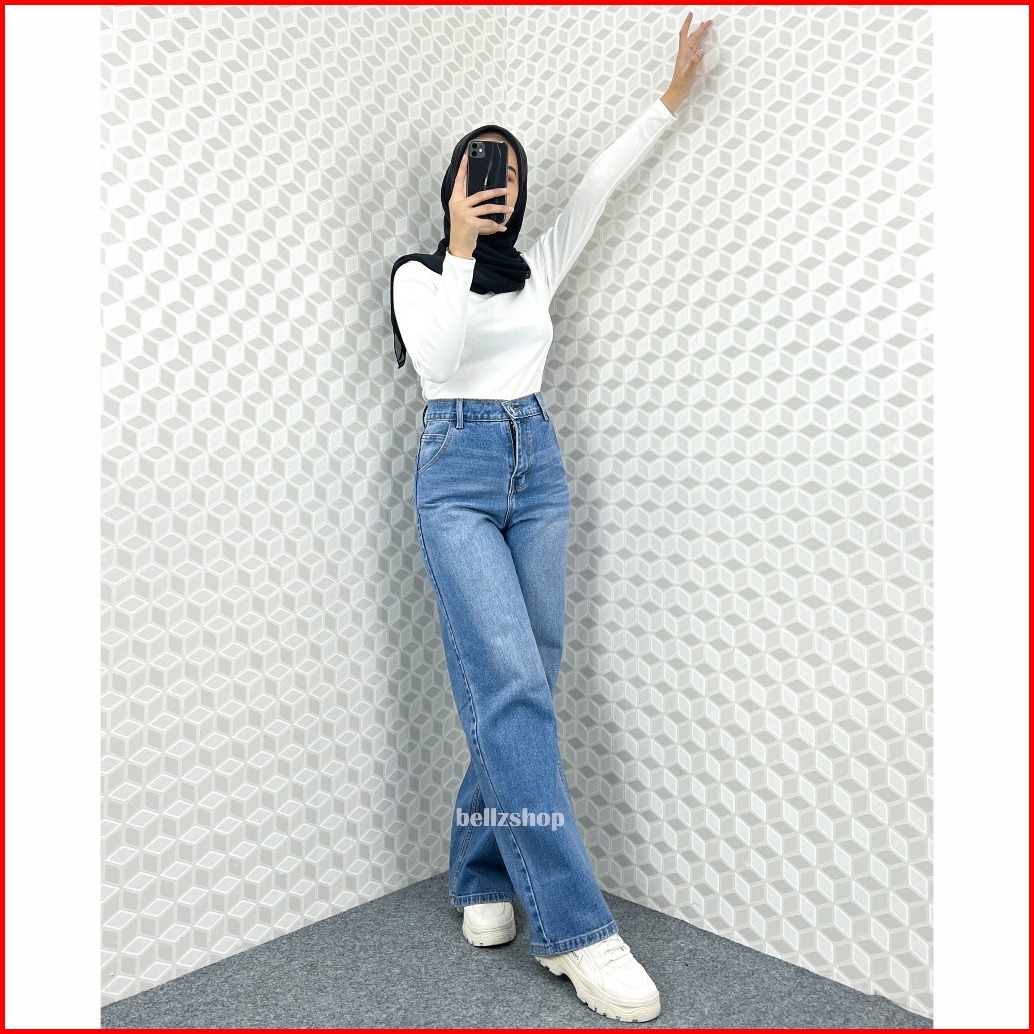 Celana Kulot Highwaist Jeans Panjang Wanita Tebal Tint Whisker Premium Bellzshop Sachi Size S-xxl