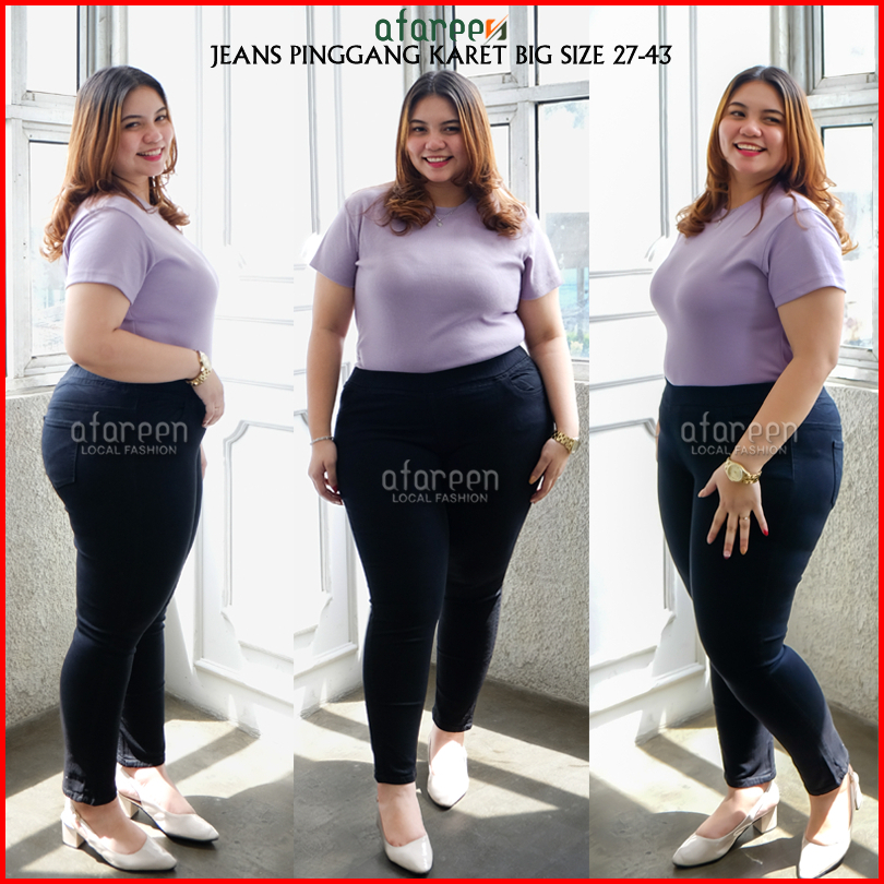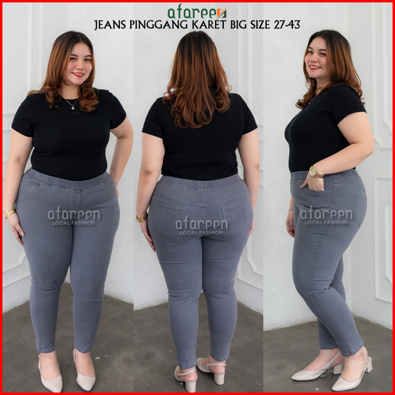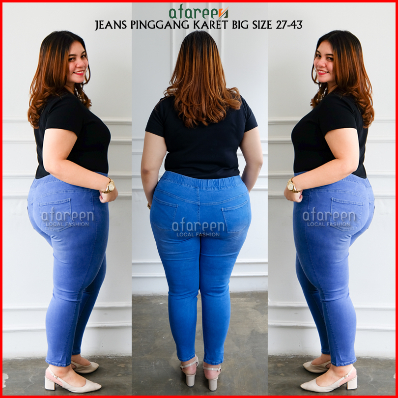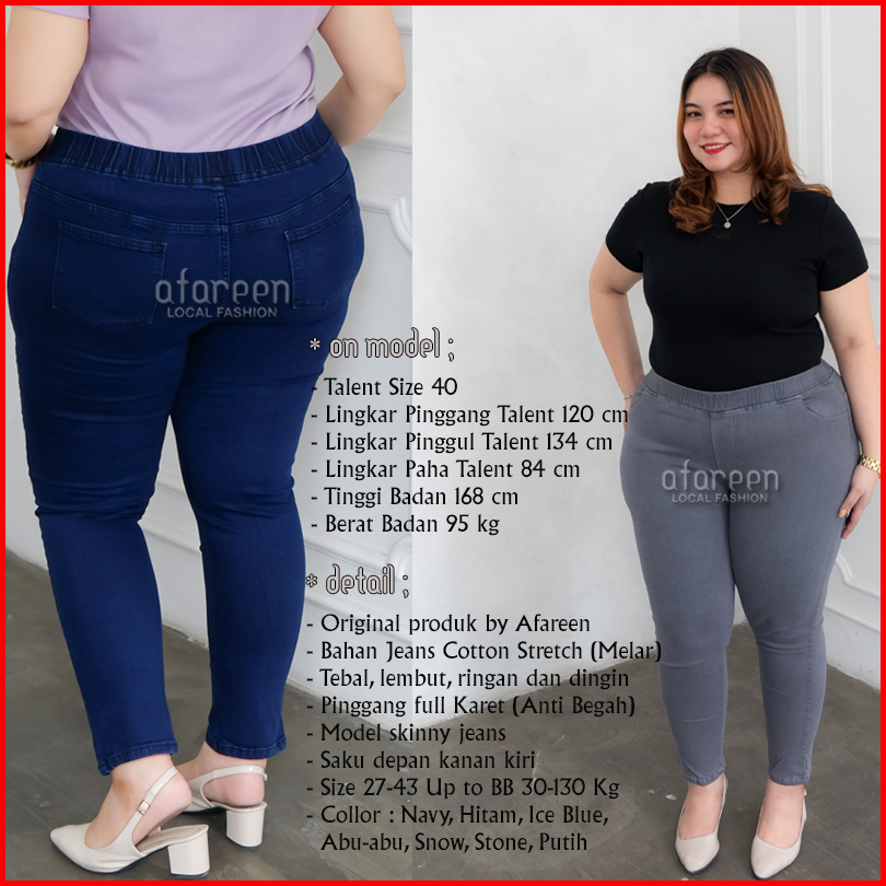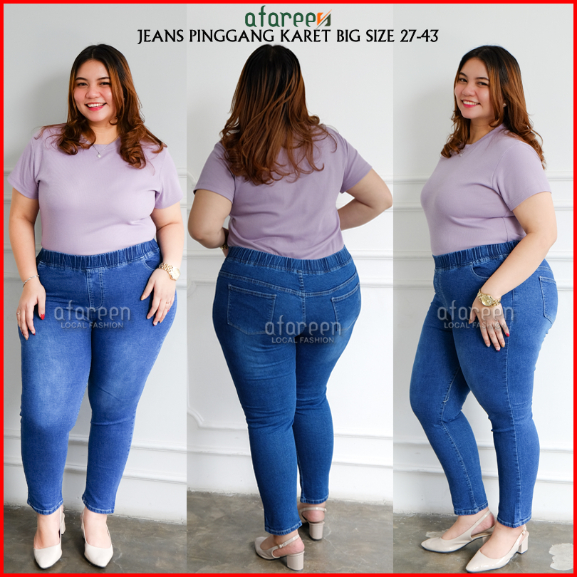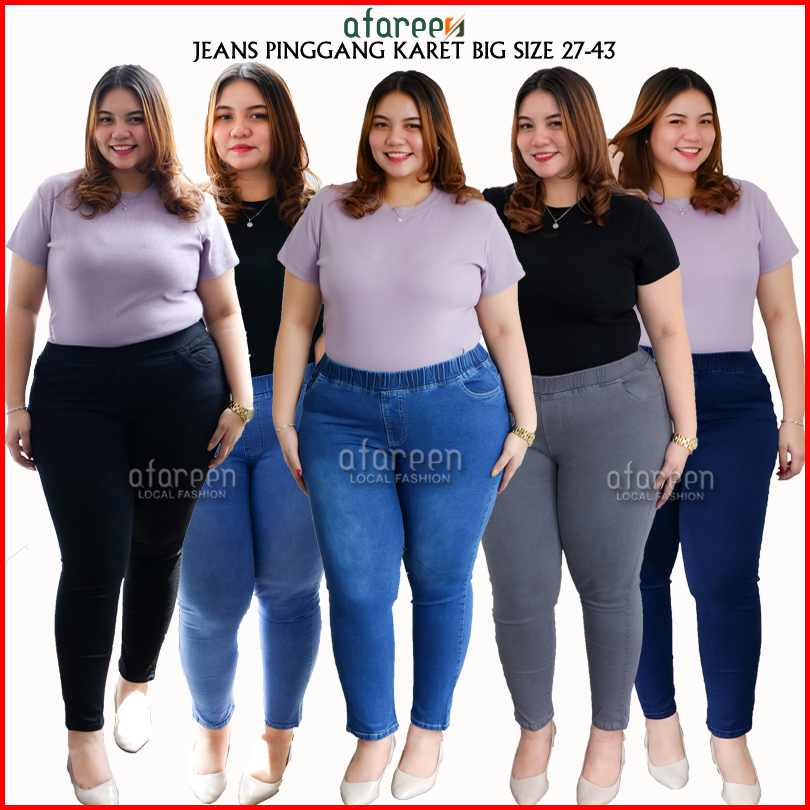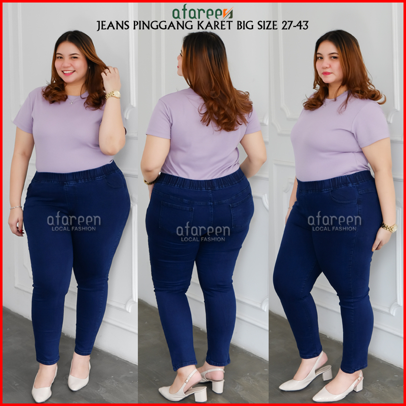 Afareen - Celana Jeans Jumbo Wanita Celana Jeans Pinggang Karet Melar Jeans Big Size 27-43