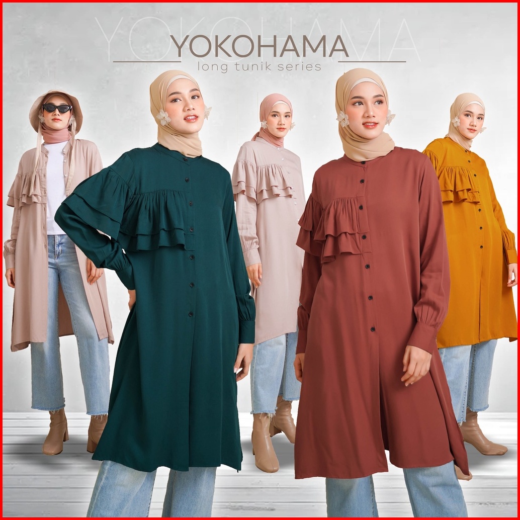 Maydee Tunik Yokohama Wanita Casual Atasan Wanita Tunik Kemeja Wanita Polos