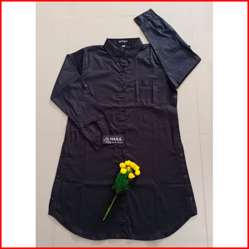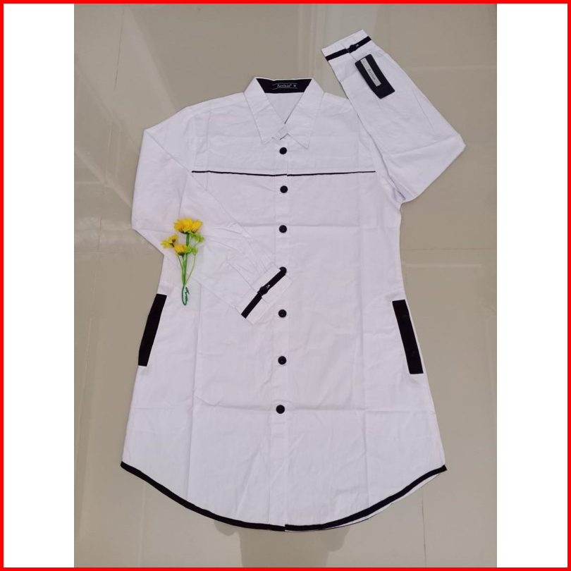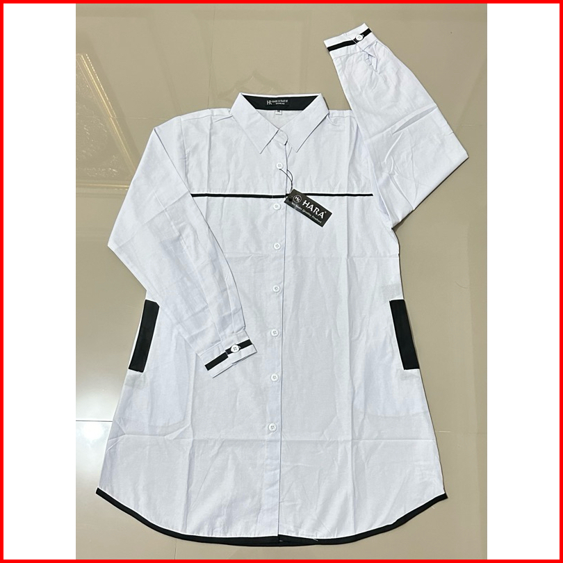 Hitam, Putih kerah v, Putih kancing hitam, Blus PB 78 cm, putih plat, Tunik putih