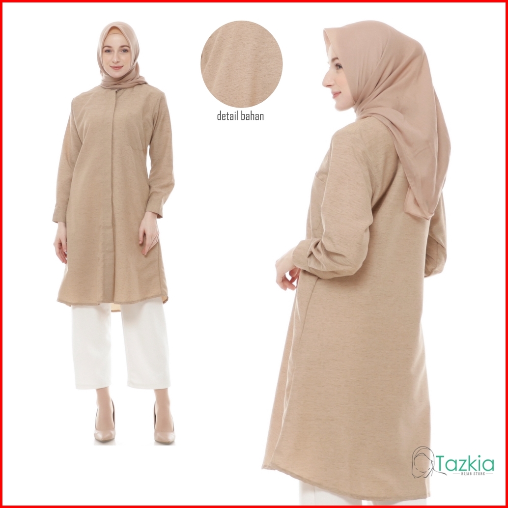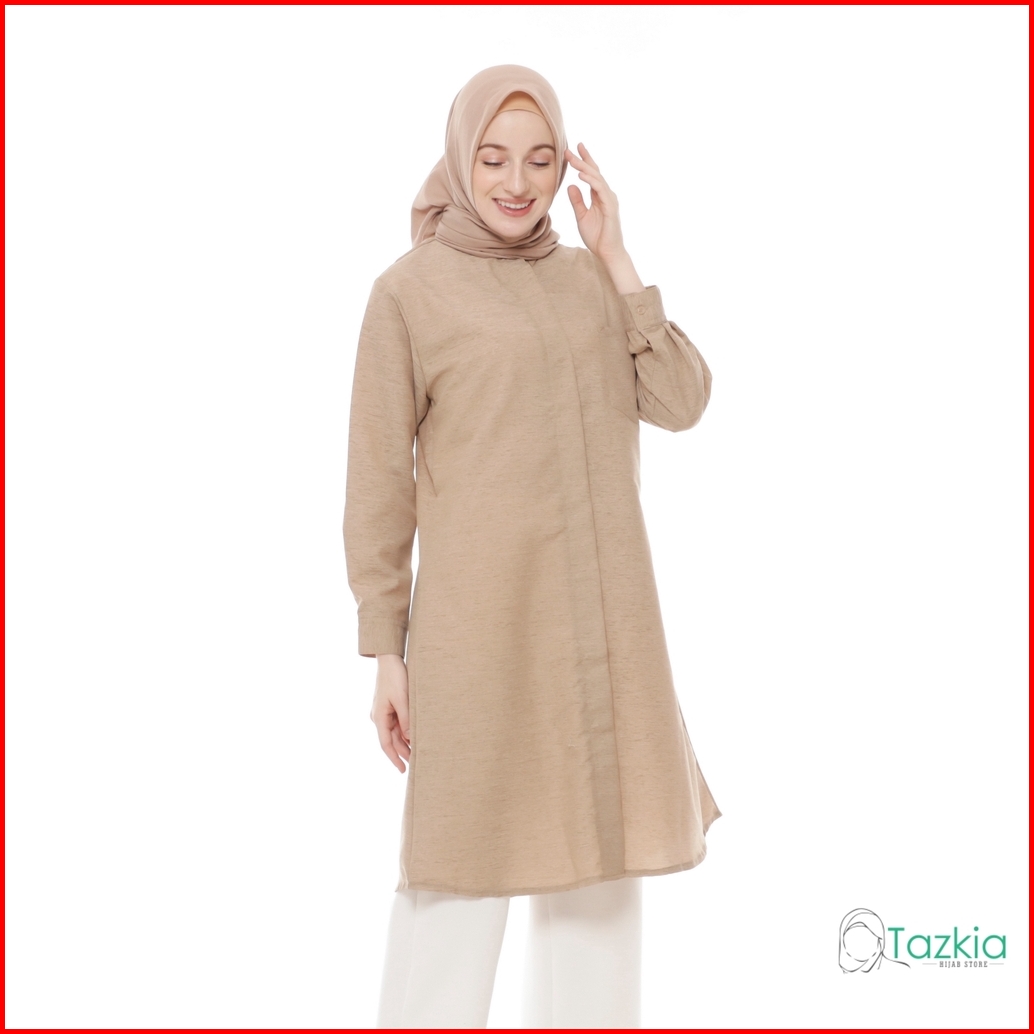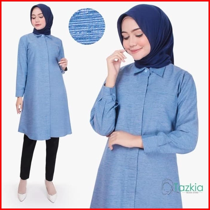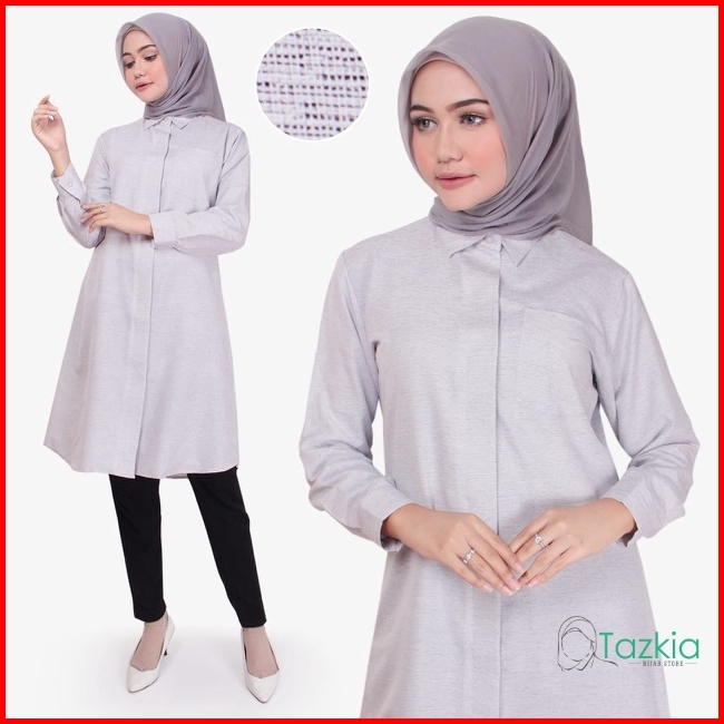 Atasan Muslim Wanita Tazkia Hijab Store Omira Tunik Kemeja Tunik Kancing Linen