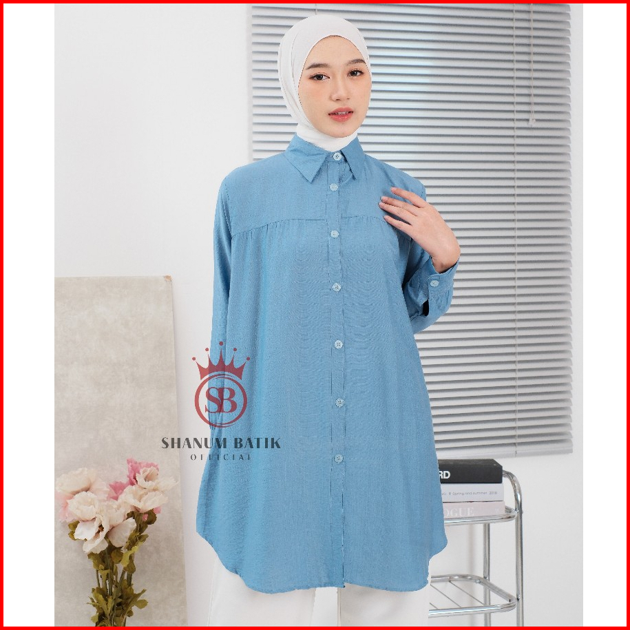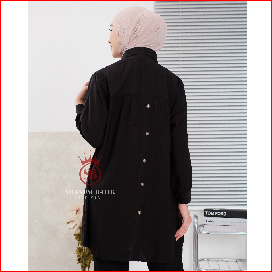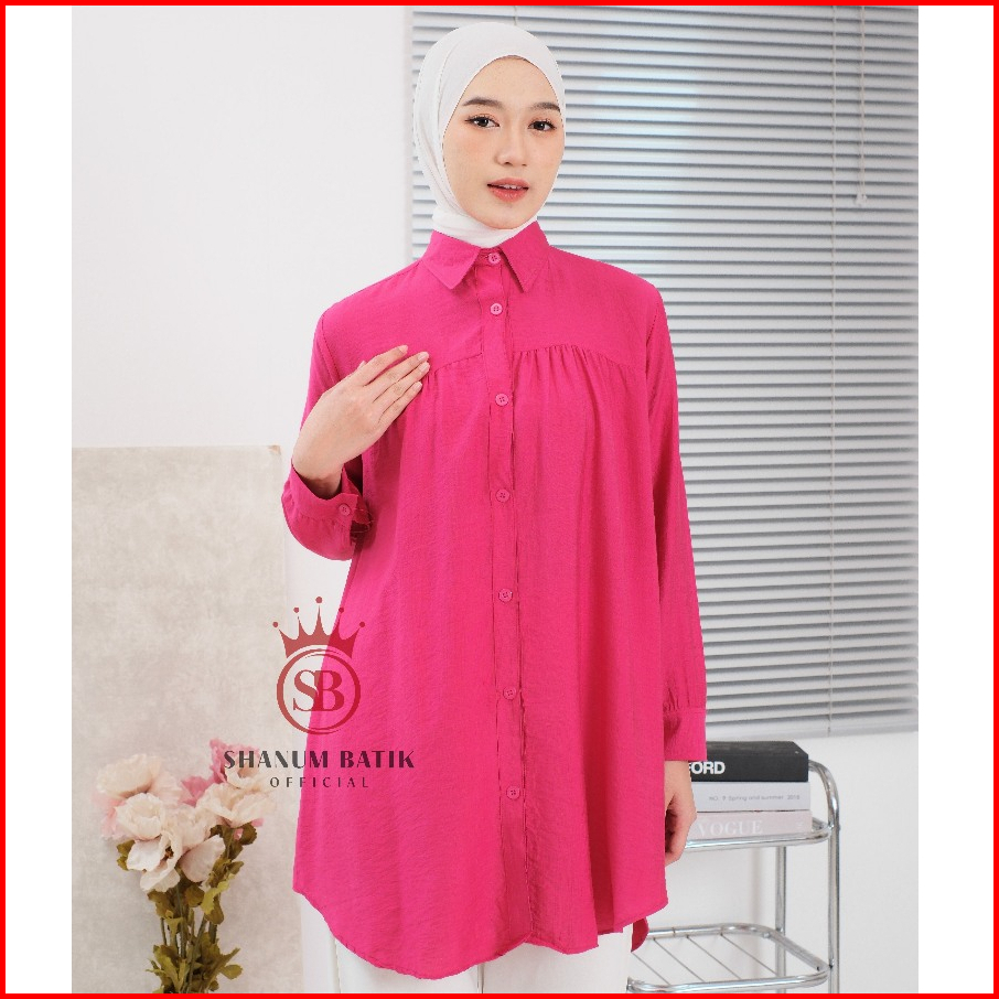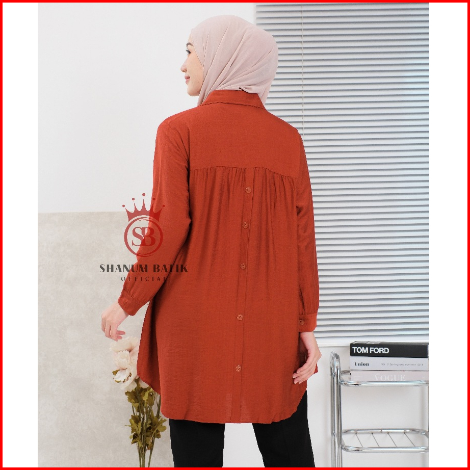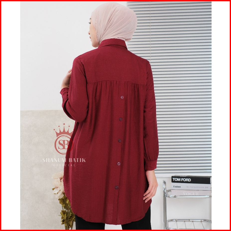 Tunik Camelia Basic Polos Polo Linen Kancing Depan Belakang Kemeja Wanita Best Quality