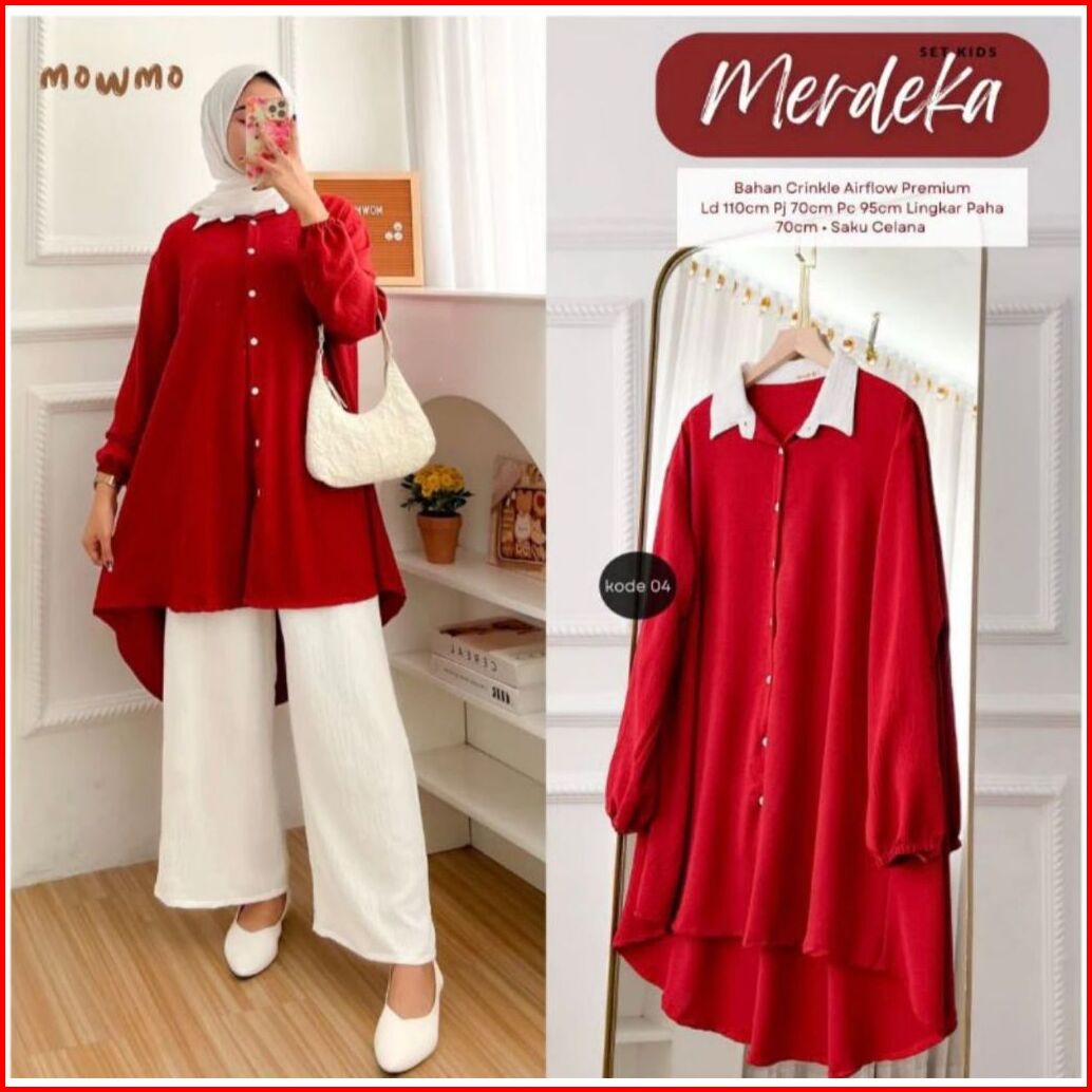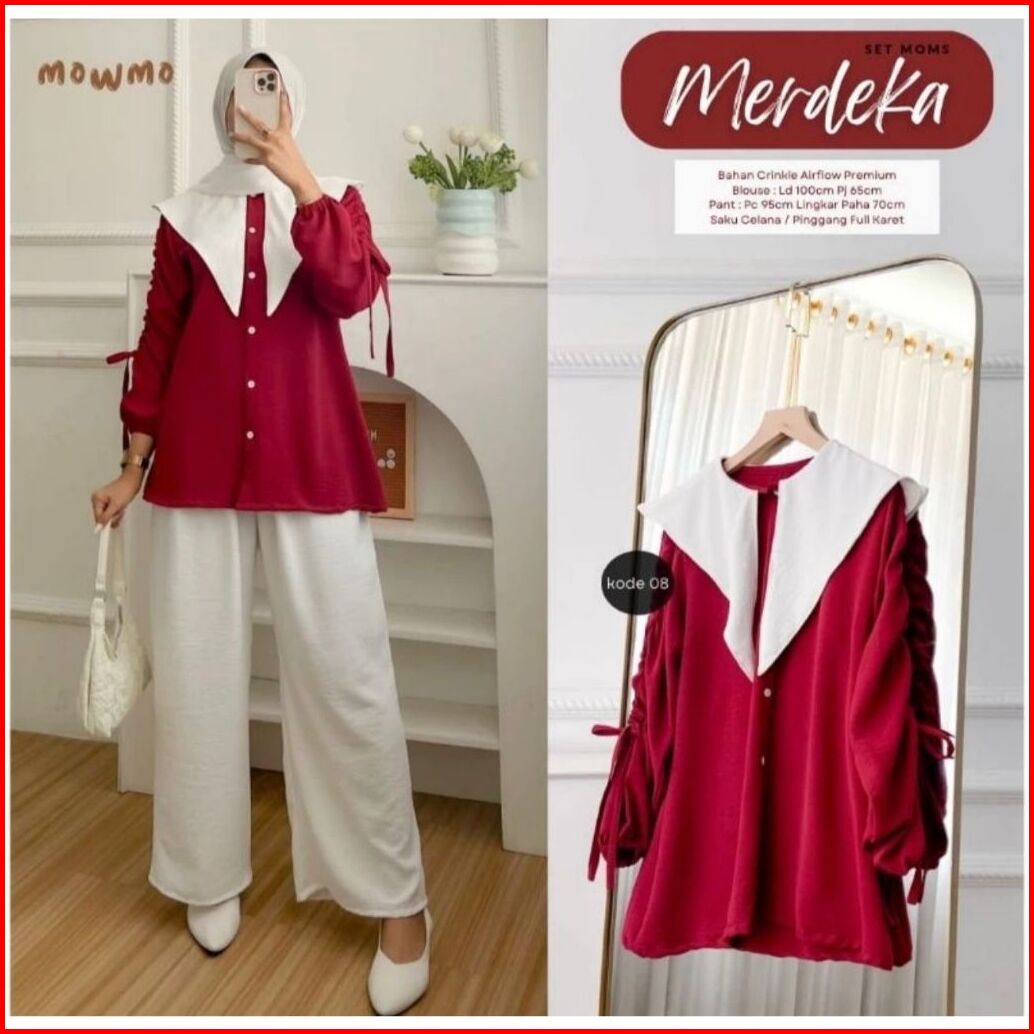 Setelan Celana Merah Putih Seragaman 17 Agustus Baju Merah Putih 17 Agustus Crinkle Airflow Setelan Merah Putih Agustus