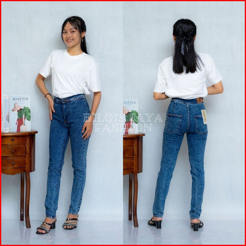 Celana Highwaist Jeans Wanita Skinny Highwaist Blacksnow Bluesnow Celana Wanita Terbaru