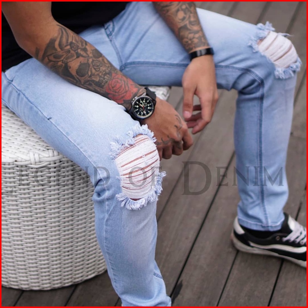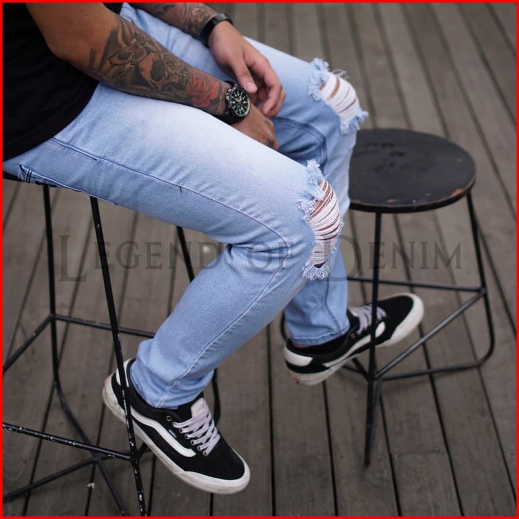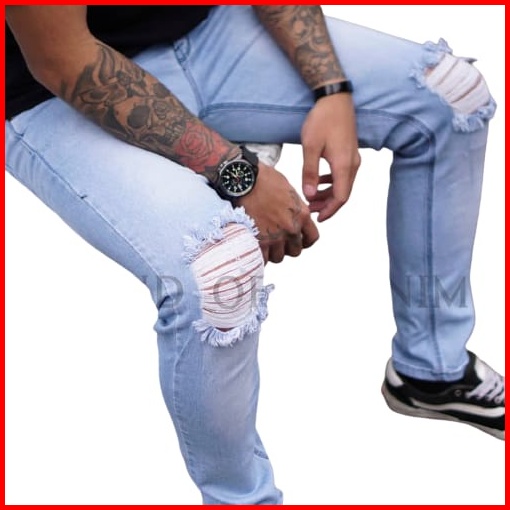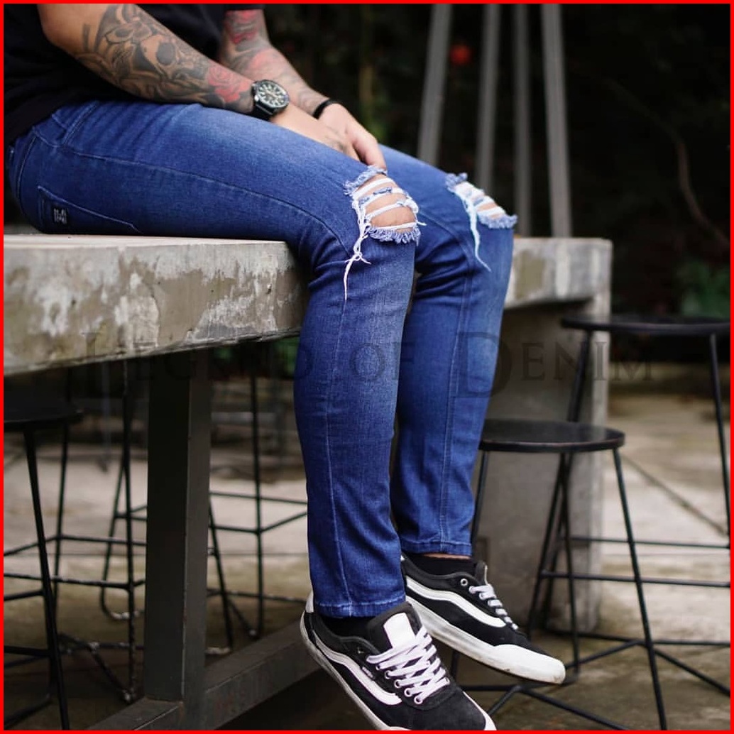 Celana Levis Pria Sobek Lutut Hitam Jeans Denim Strech Slimfit Cowo Jins Pensil Sobek Lepis Cowok Skinny
