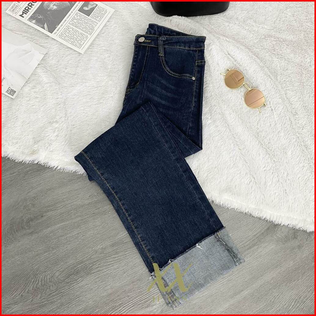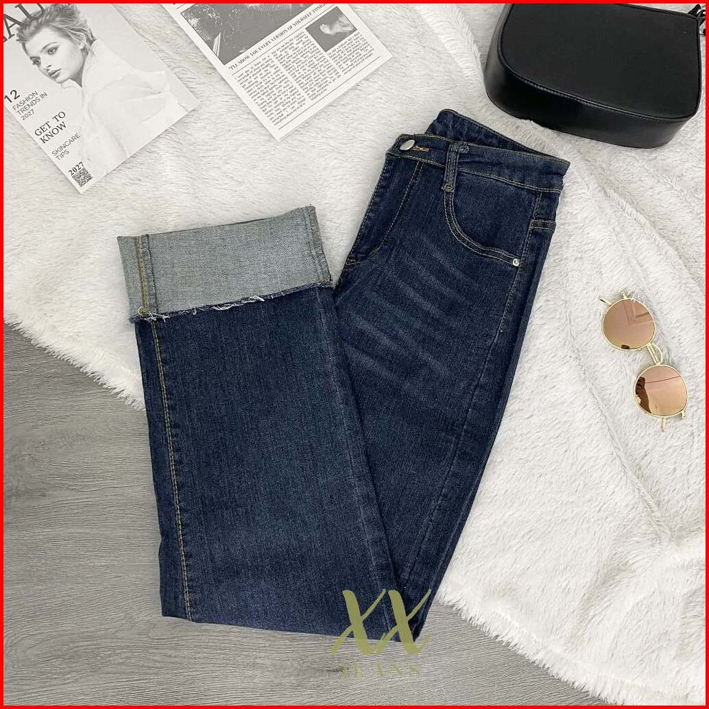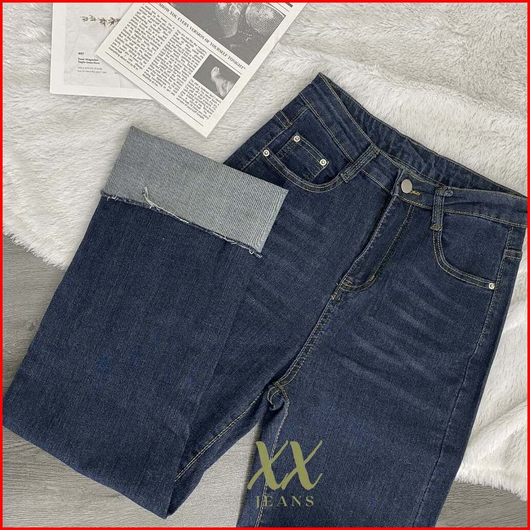 C4 - Celana Panjang High Waist Jeans Kulot Lipat Biru Tua Wanita Korean Style Premium Import
