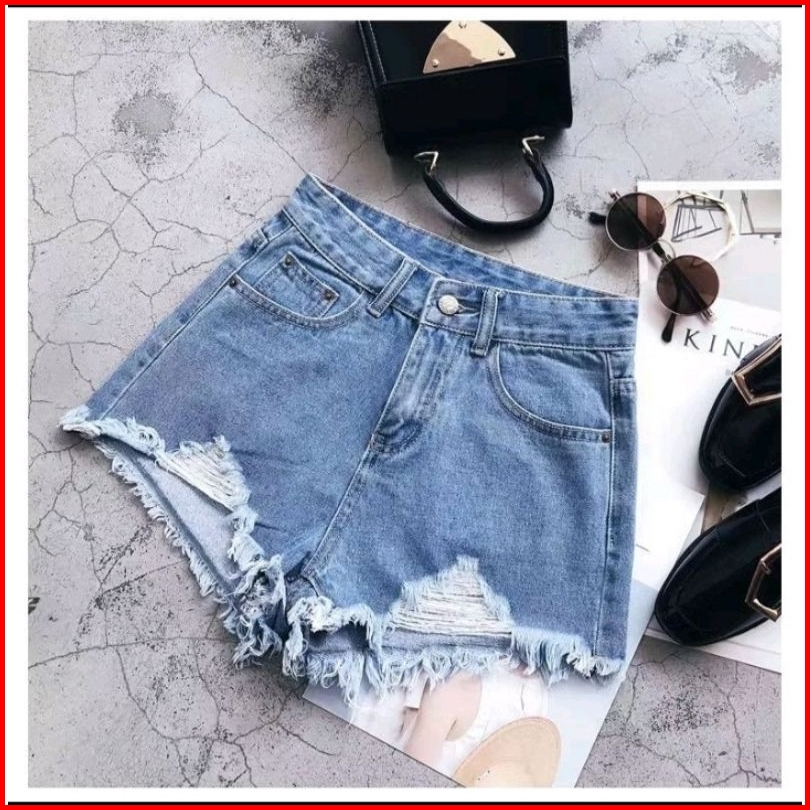 Celana Sobek Rippet Pendek Wanita Hot Pants Jeans Korean Style High Weist