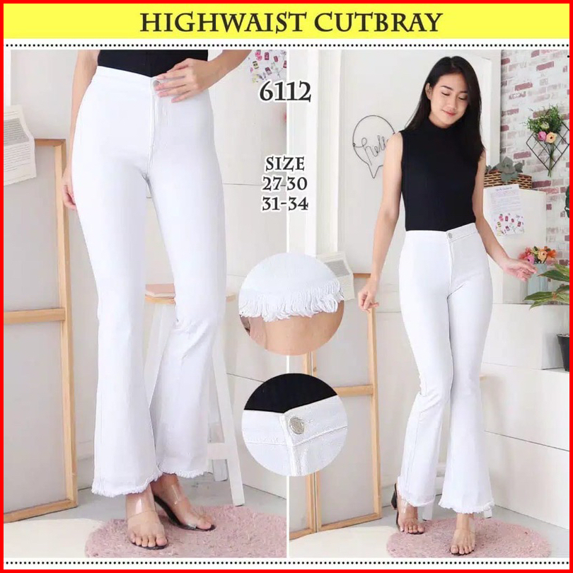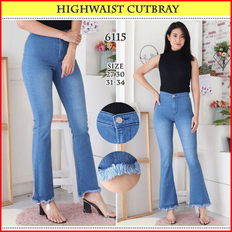 Celana Wanita Jeans Cutbray Highwaist Kekinian