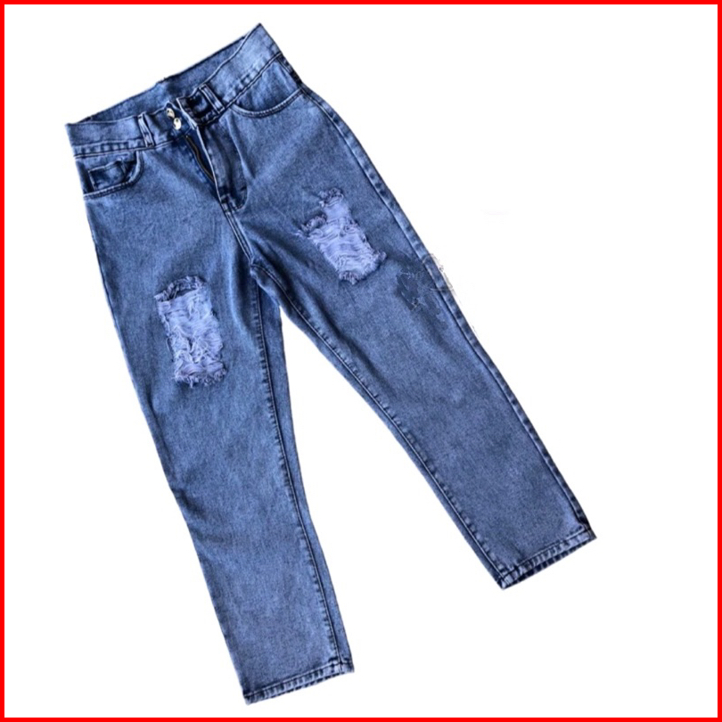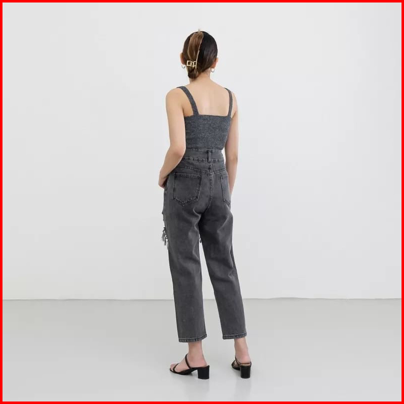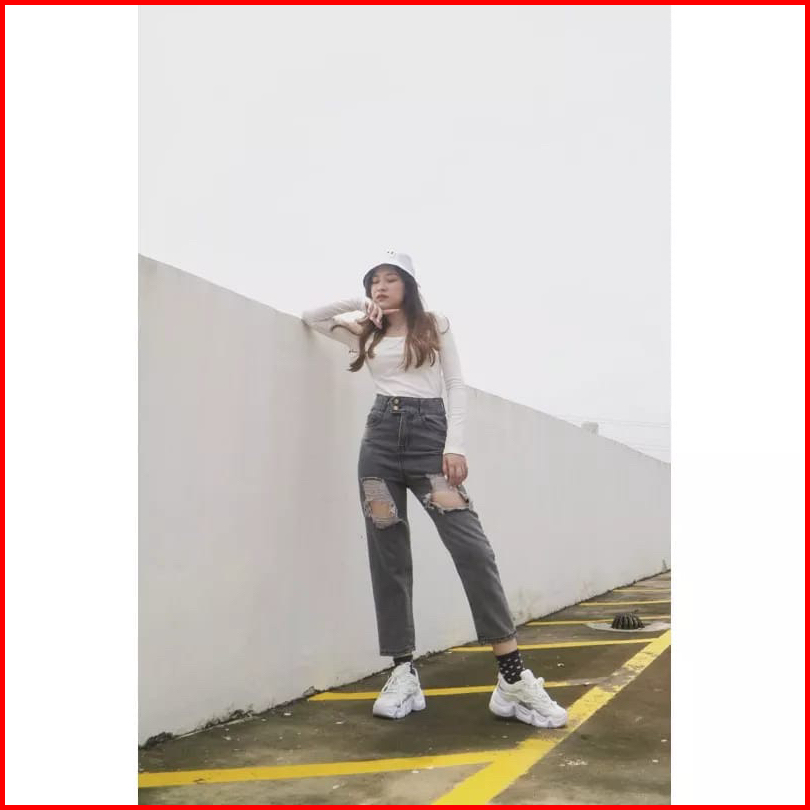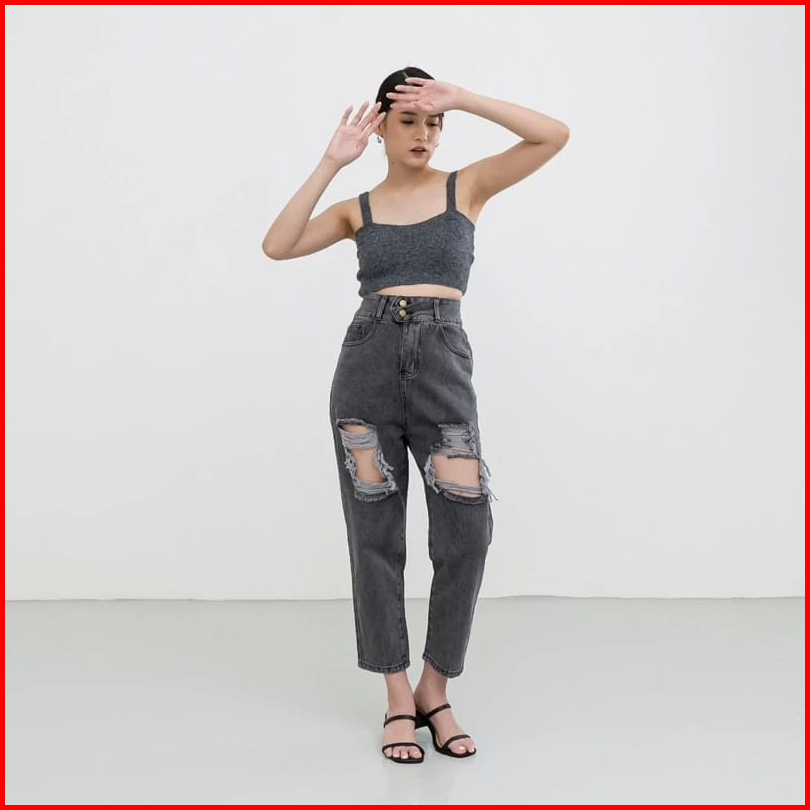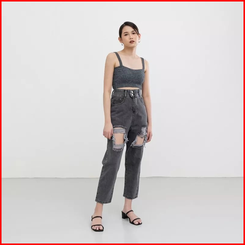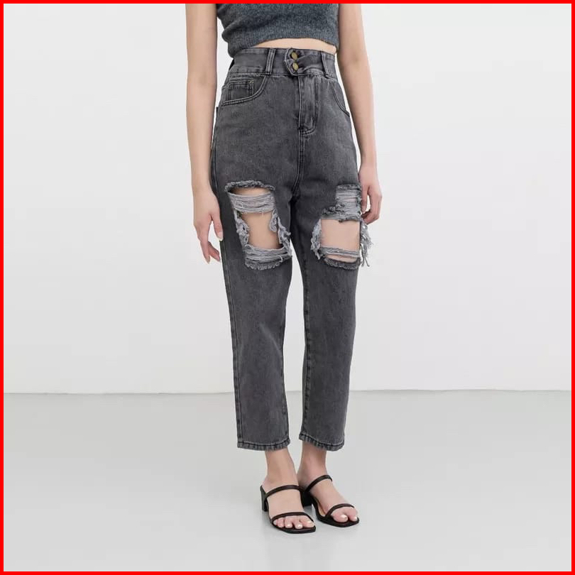 Highwaist Boyfriend Ripped Jeans Sobek Tidak Tembus