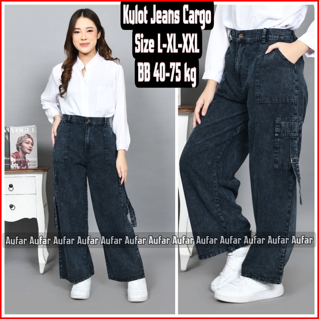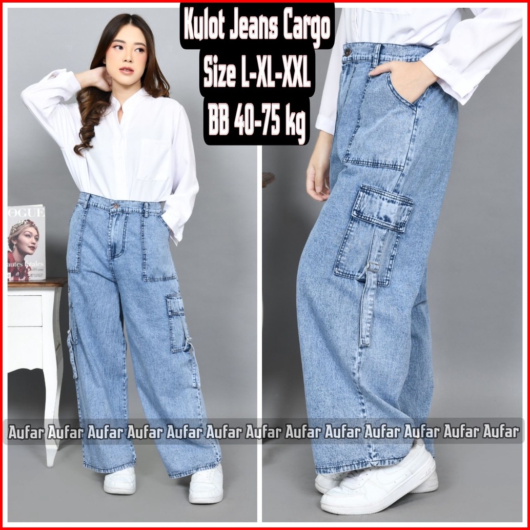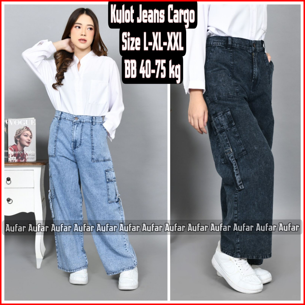 Kulot Jeans Cargo Wanita Dewasa Size L Xl Xxl Bb 40-75 Jeans Ori
