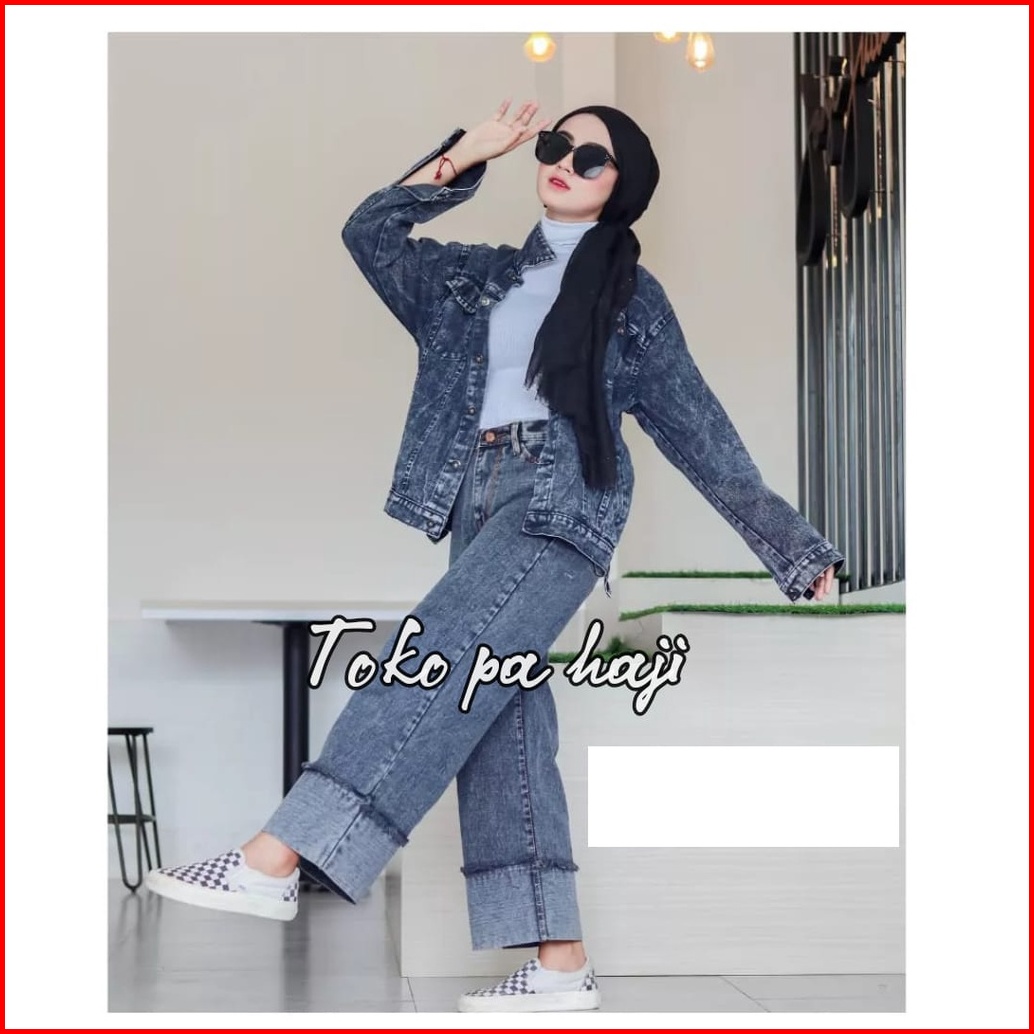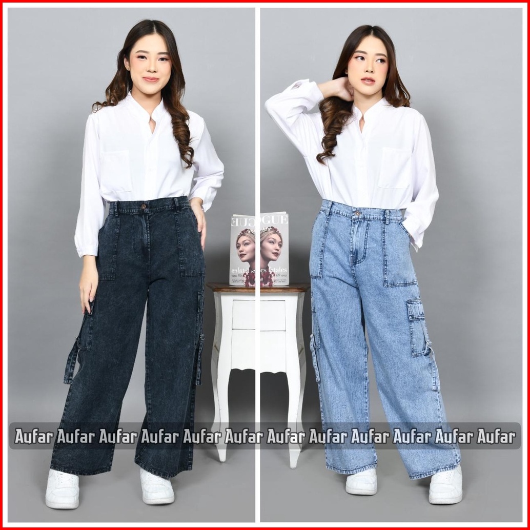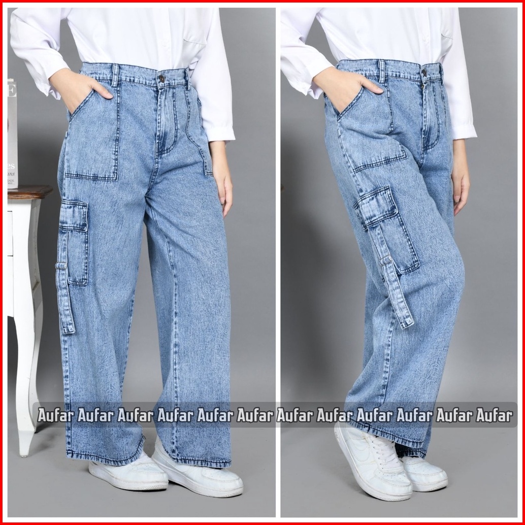 Kulot Jeans Cargo Wanita Dewasa Size L Xl Xxl Bb 40-75 Jeans Ori