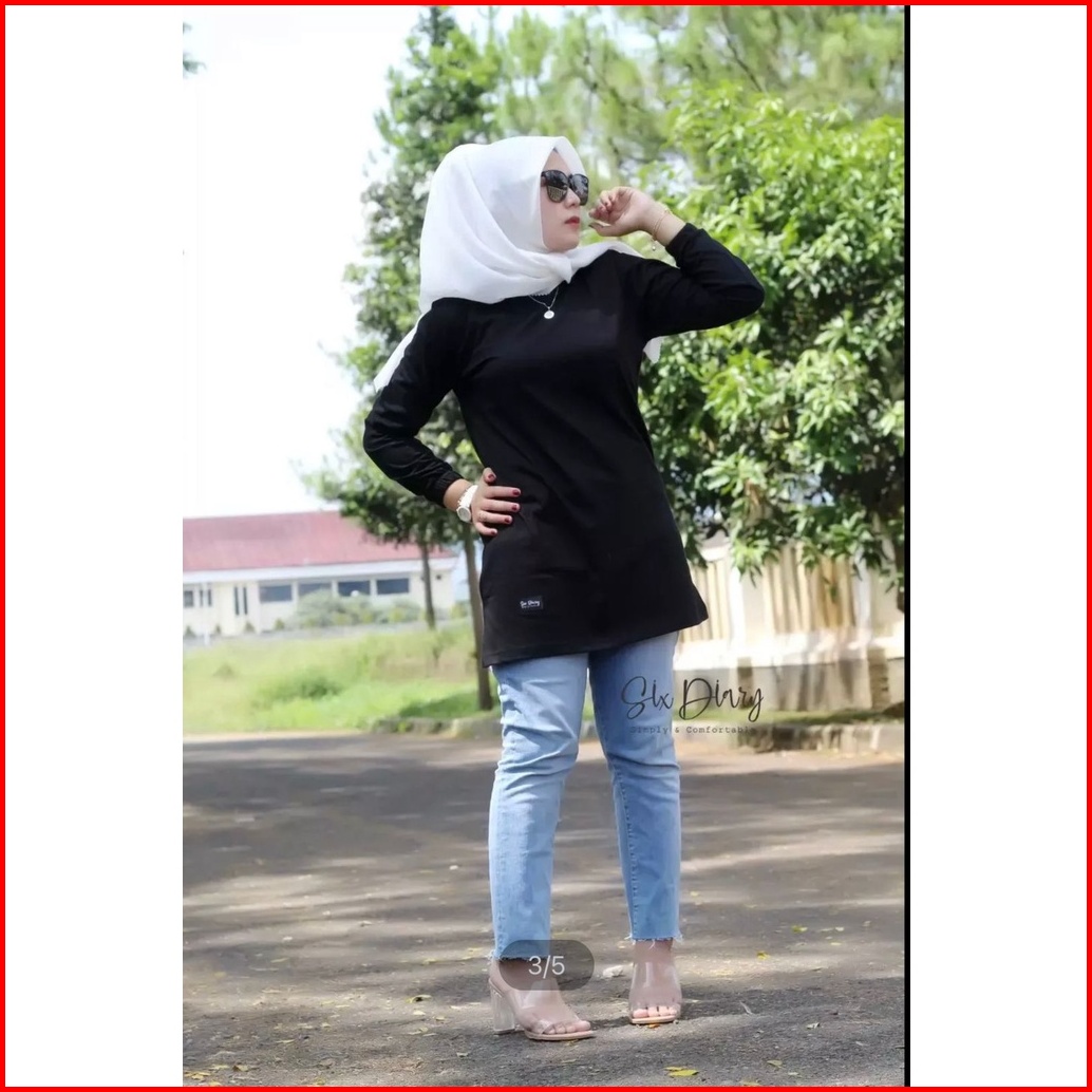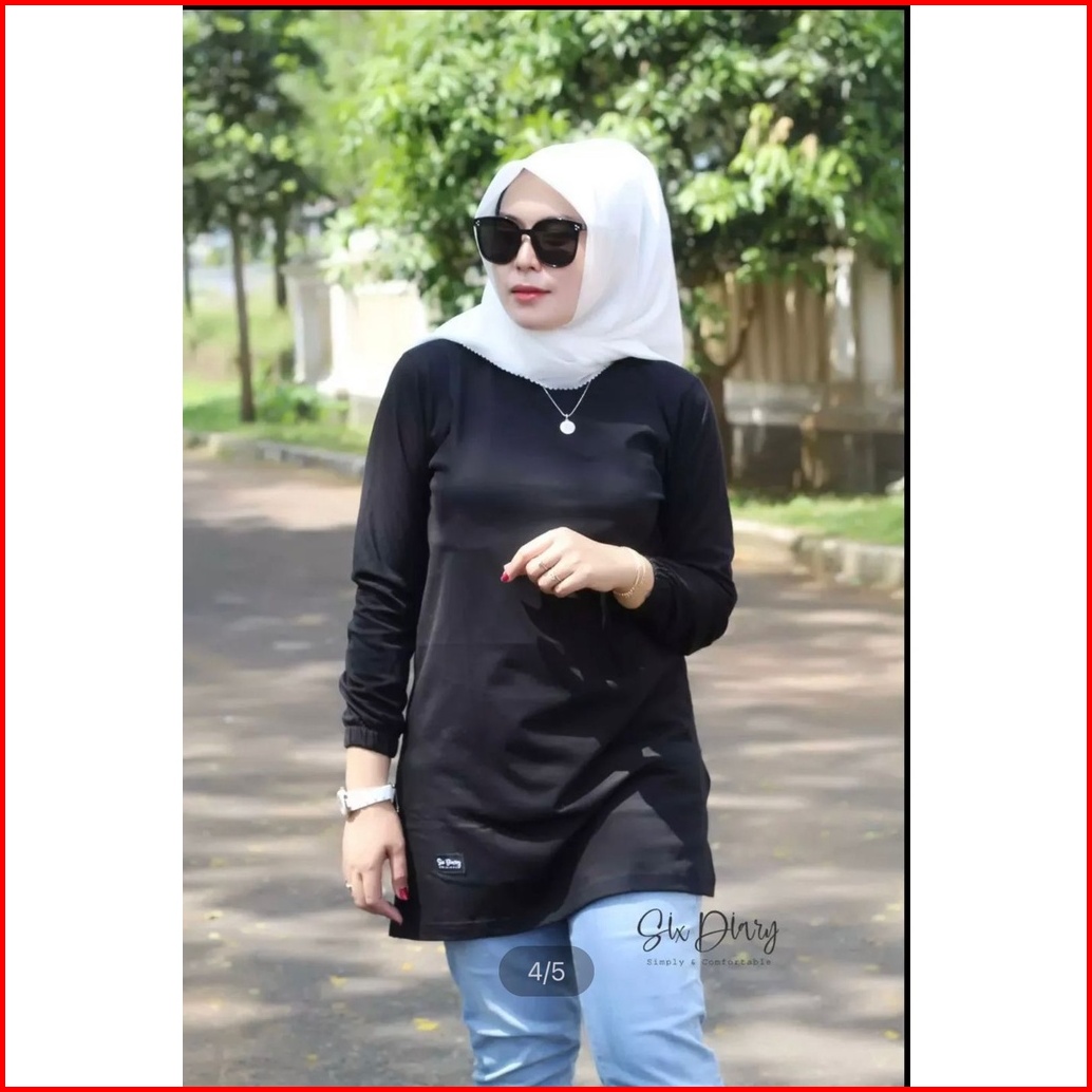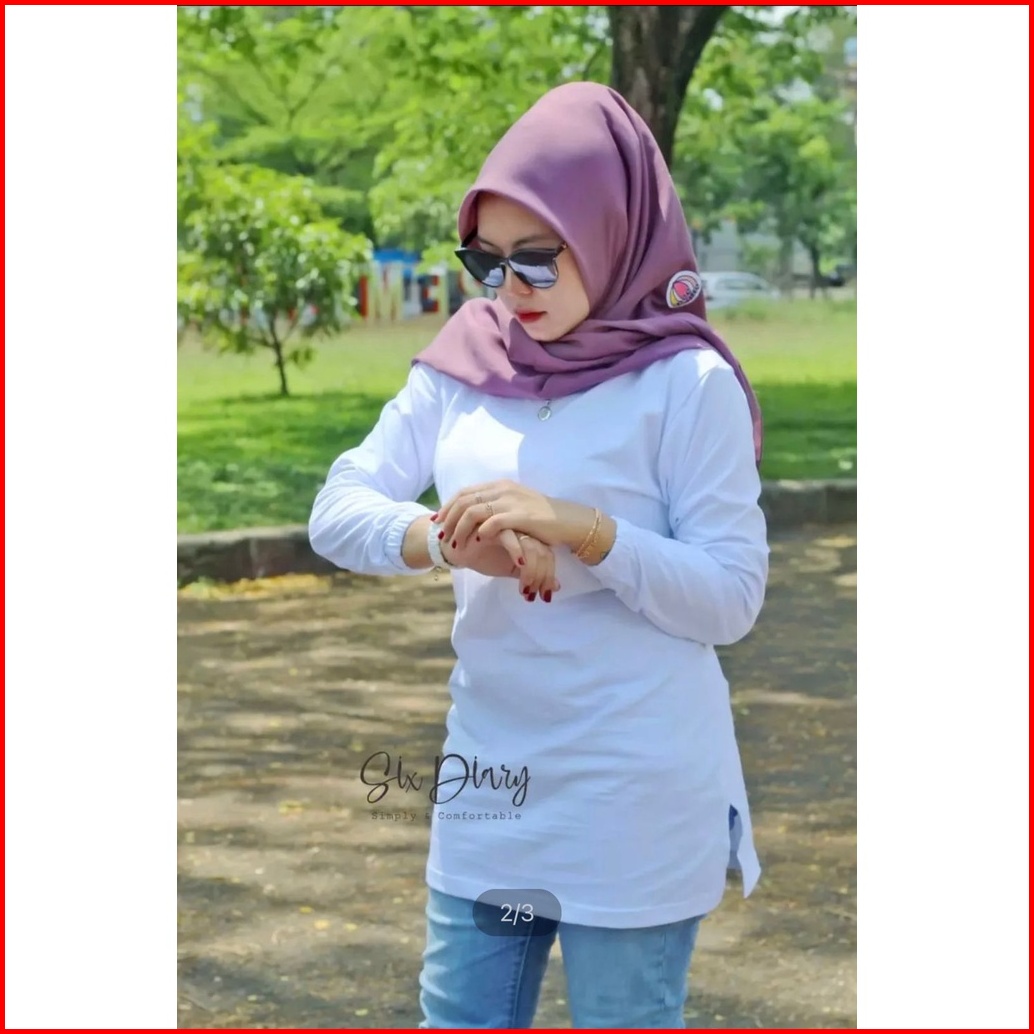 Tunik Baju Wanita Fashion Wanita Kaos Wanita Atasan Wanita Kaos Lengan Panjang Wanita Tunik Polos Putih Belah Pinggir Ta