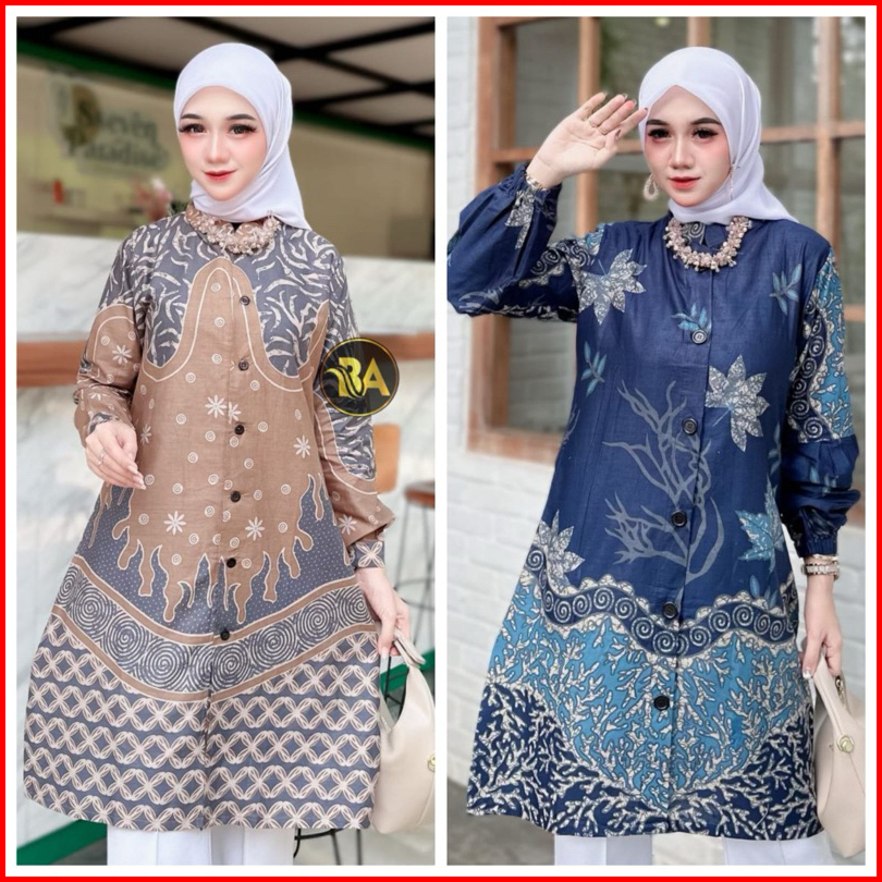 Tunik Batik Wanita Modern Terbaru Jumbo M L Xl Xxl Atasan Batik Wanita Seragam Murah Batik Tunik Wanita