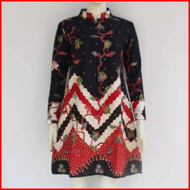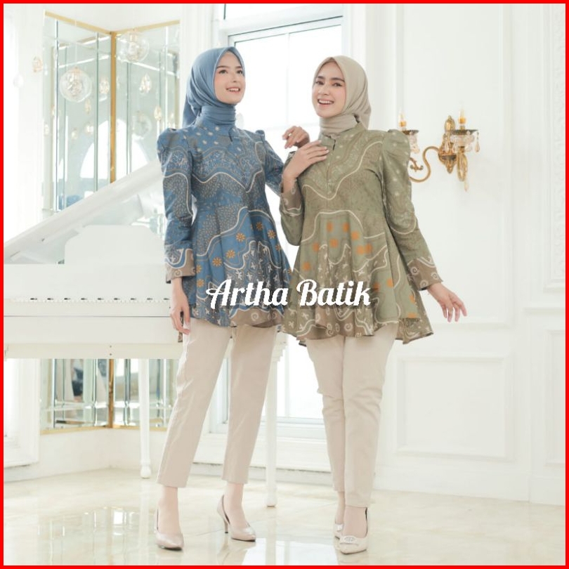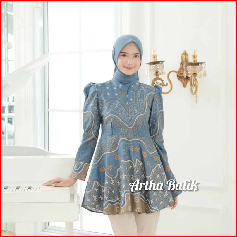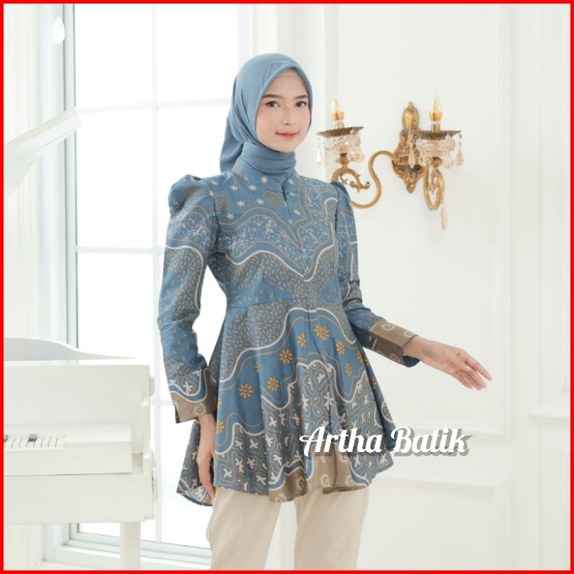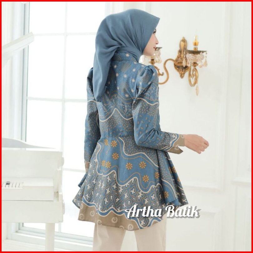 Batik Wanita Modern Atasan Batik Wanita Lengan Puffy Shoulders Model Peplum Payung