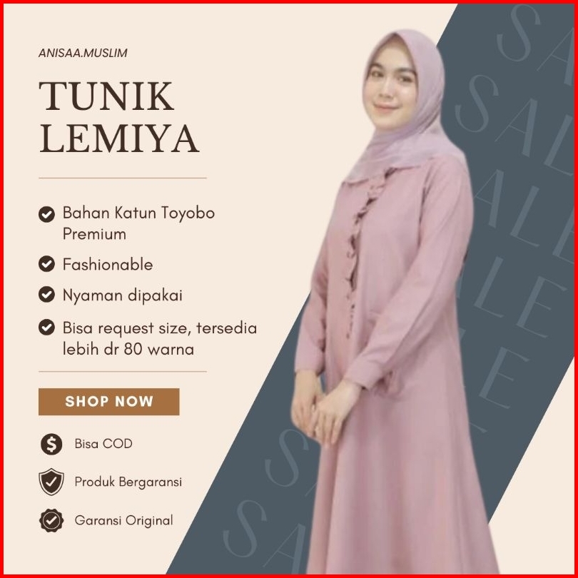 Baju Atasan Tunik Wanita Terbaru 2025 Lemia Tunik Katun Toyobo Putih Series Design By Disiko