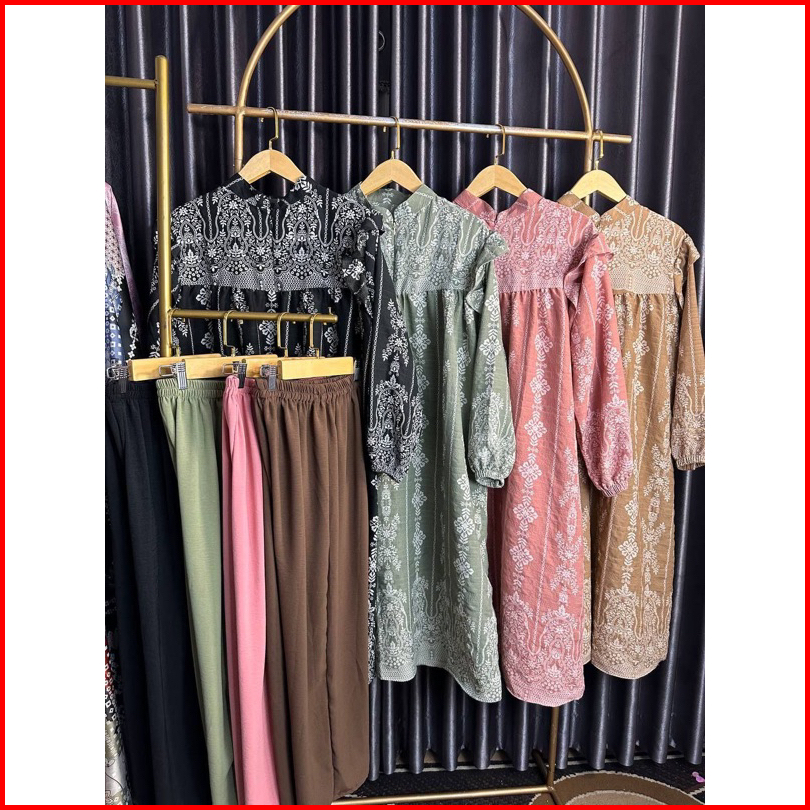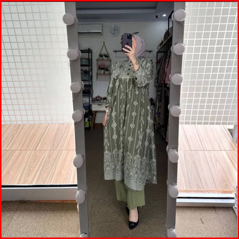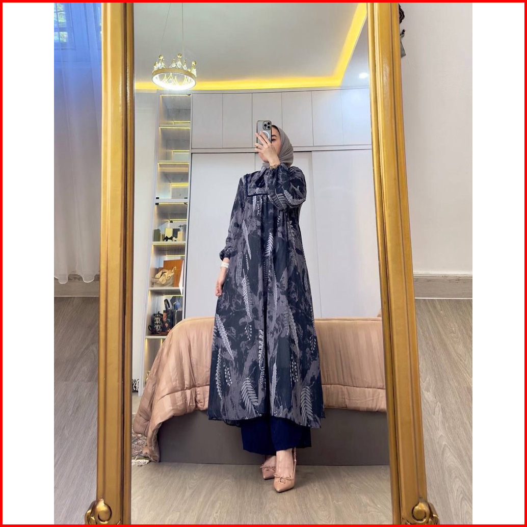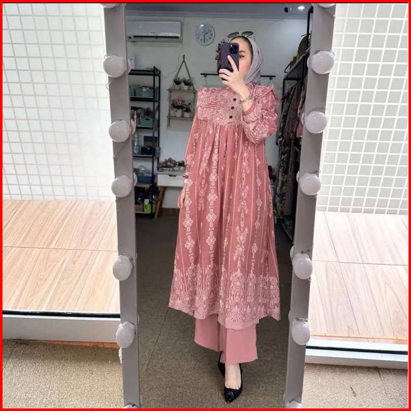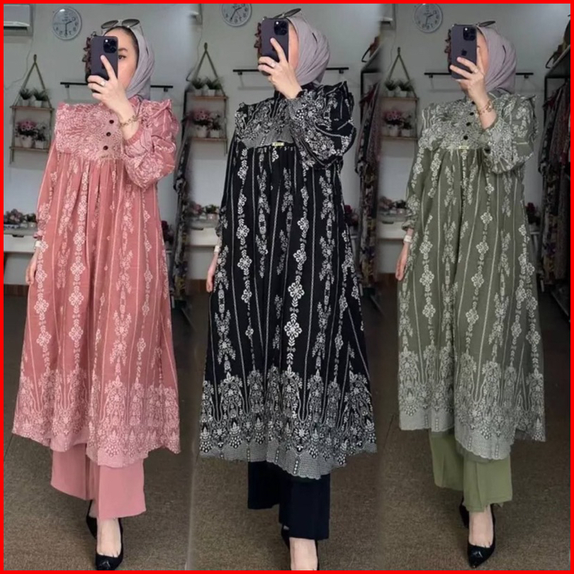 One Set Tunik Bunga Long Tunik Kekinian Style Wanita Hijab Fashion Wanita Kekinian Set Celana Terlaris Set Tunik Bunga S