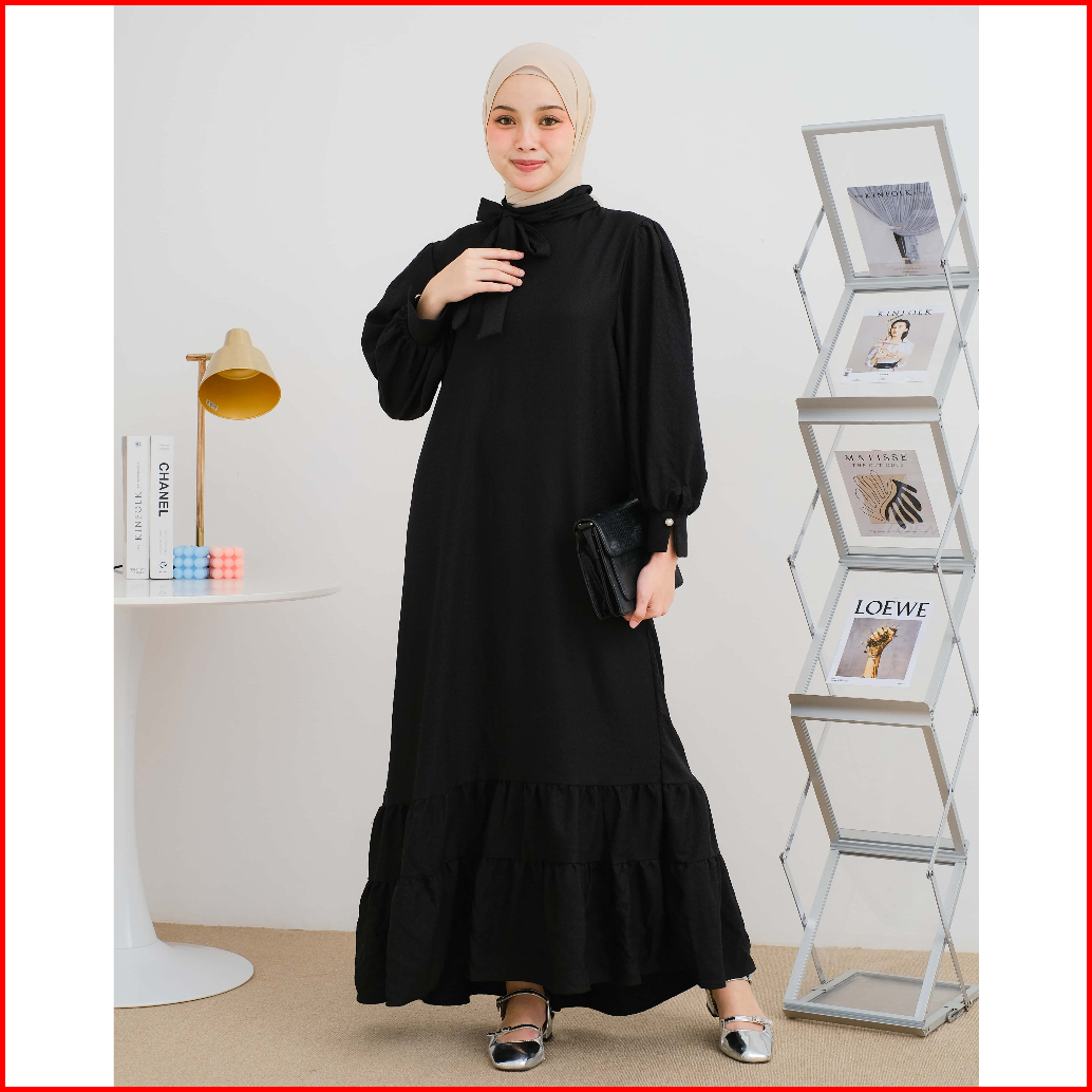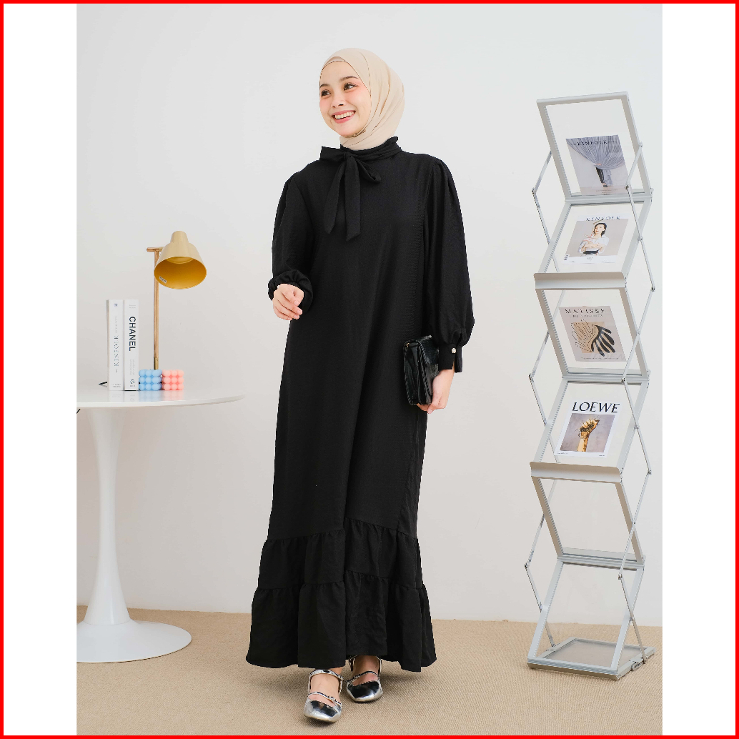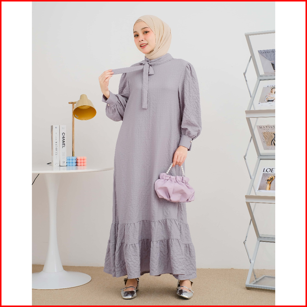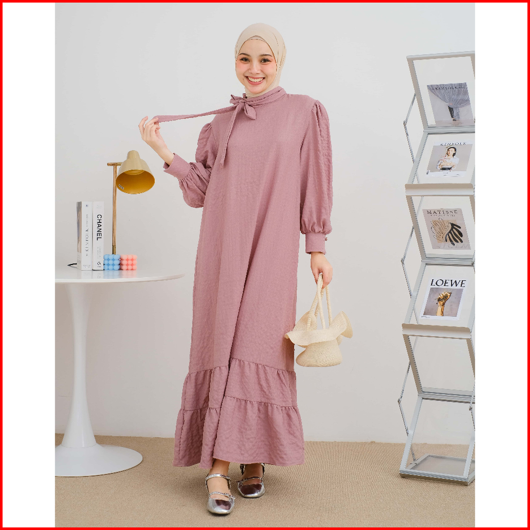 Mayoutfit Vamitha Mididress Dress Gamis Crinkle Basic Kerah Pita Lengan Plisket