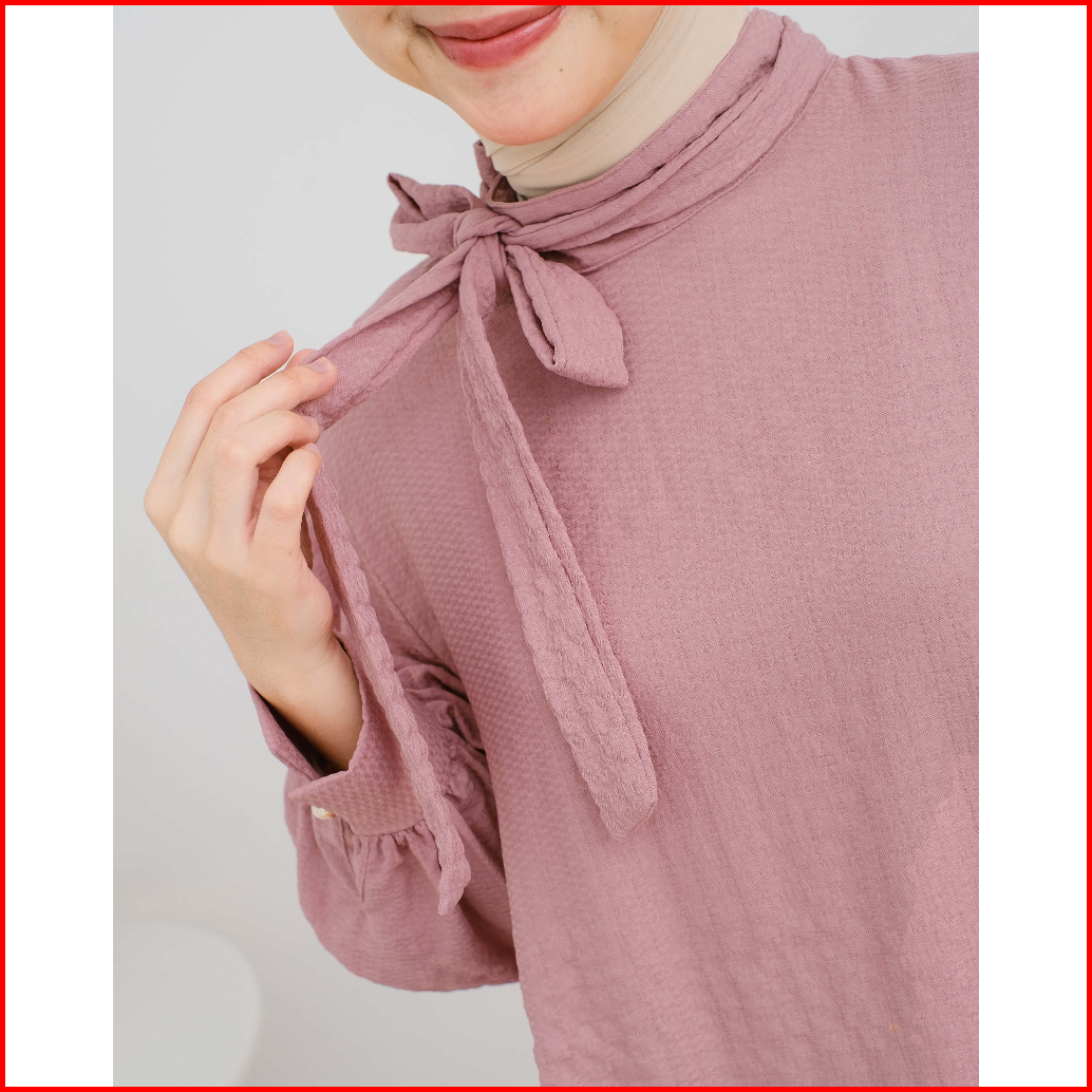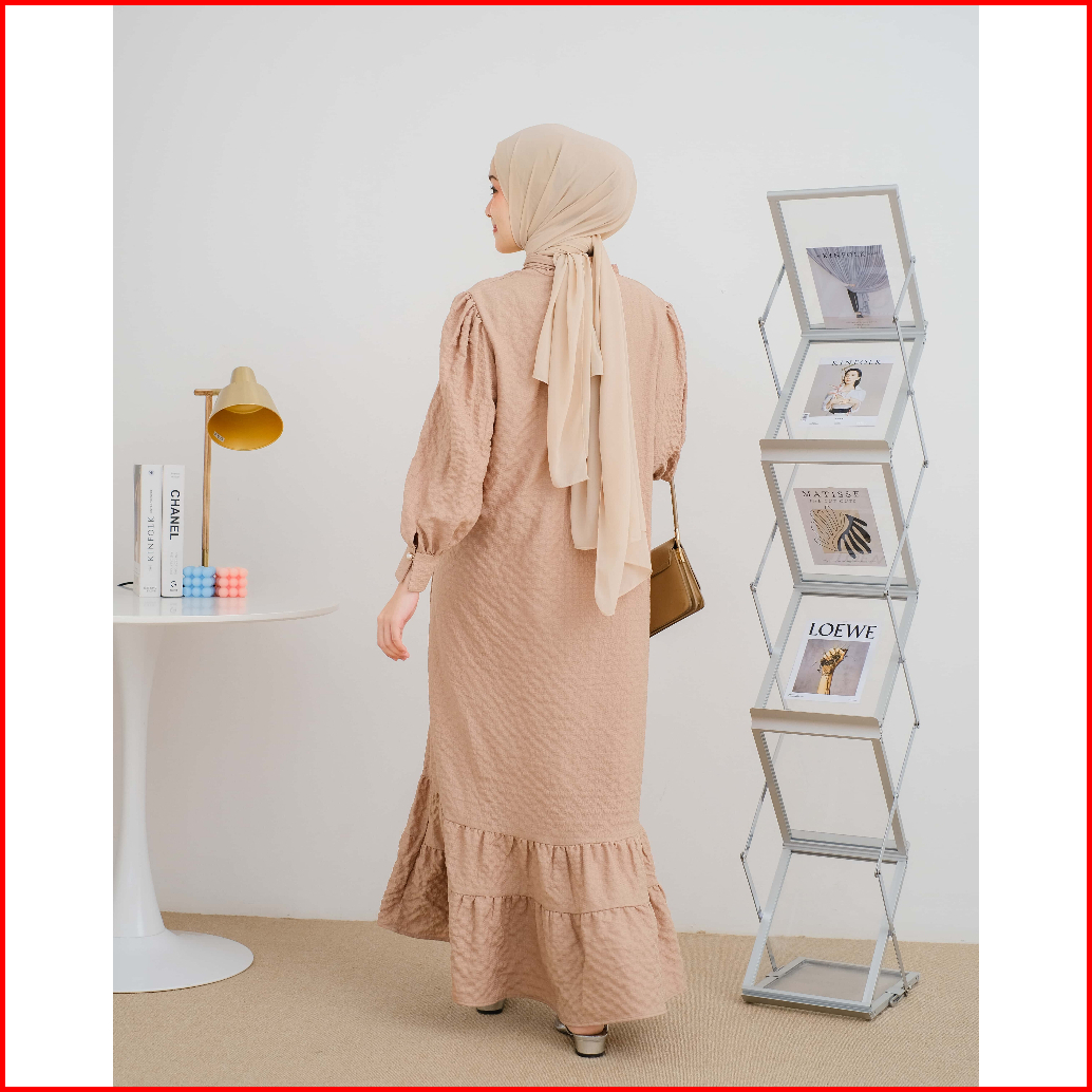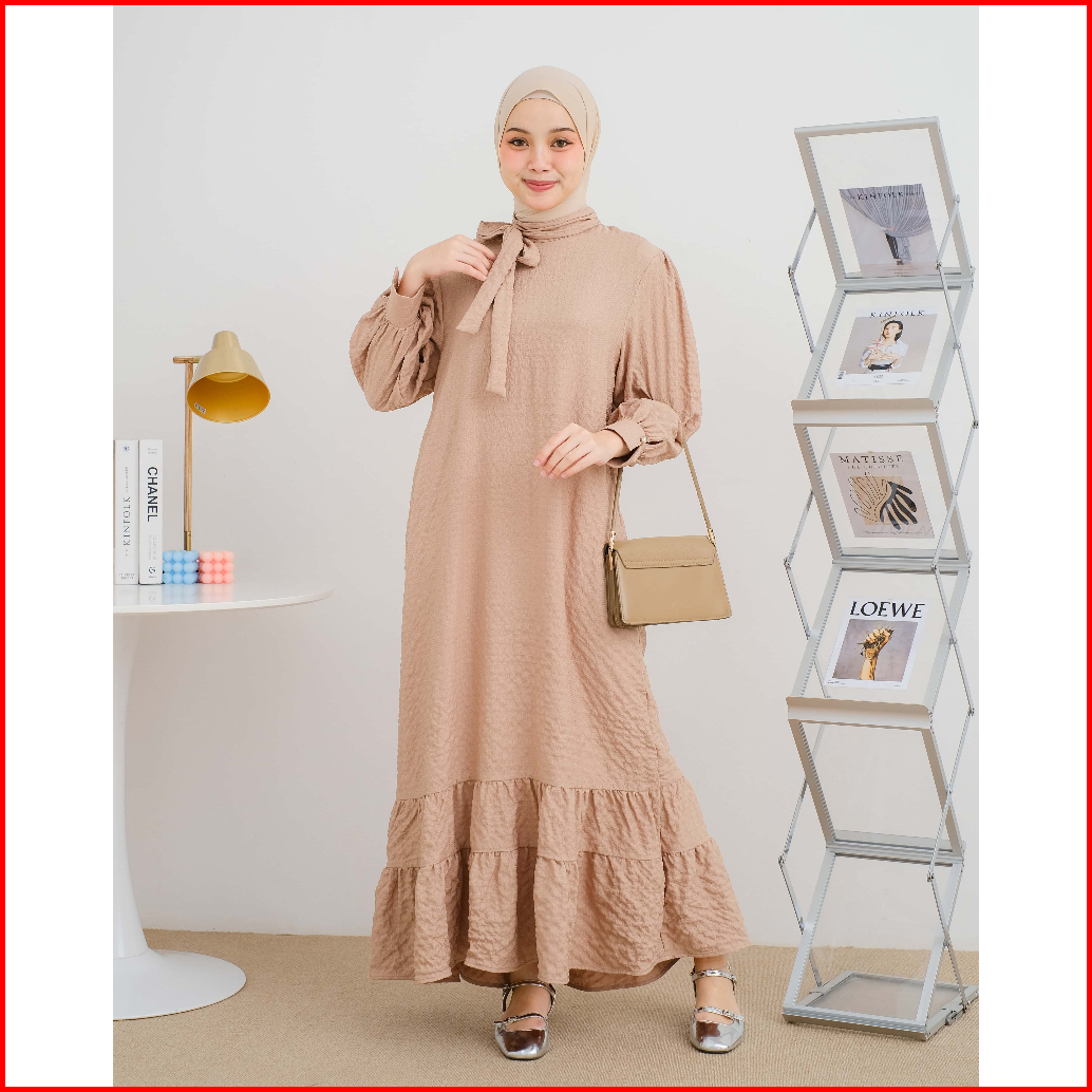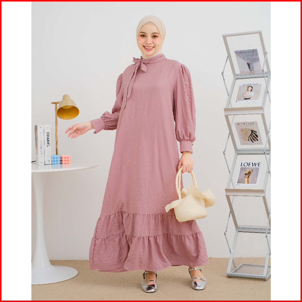 Mayoutfit Vamitha Mididress Dress Gamis Crinkle Basic Kerah Pita Lengan Plisket