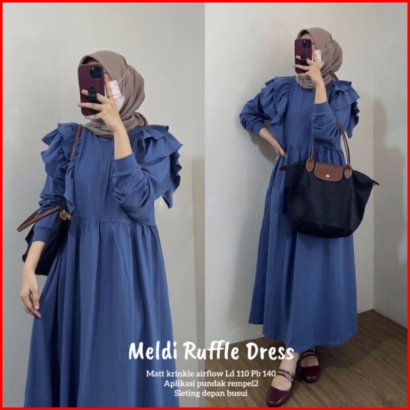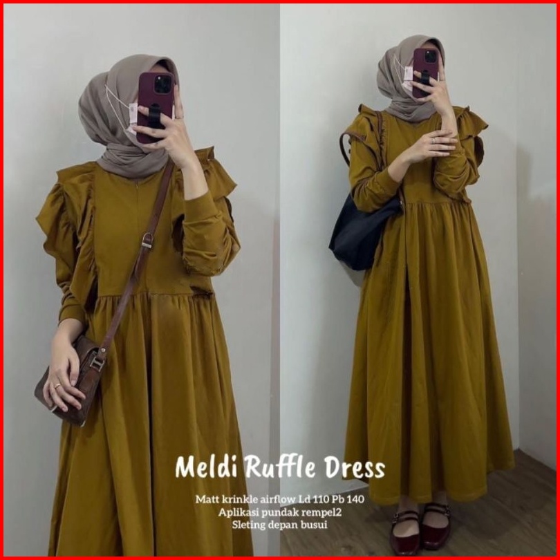 R.a - Meldi Ruffle Dress Maxy Wanita Muslim Cringkle Airflow Polos Basic L Gamis Jumbo Besar Ootd Casual Daily Fashion T