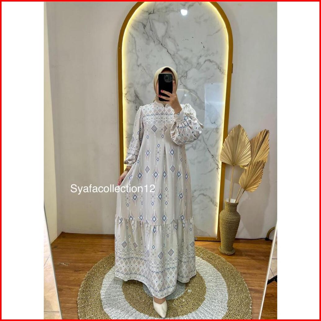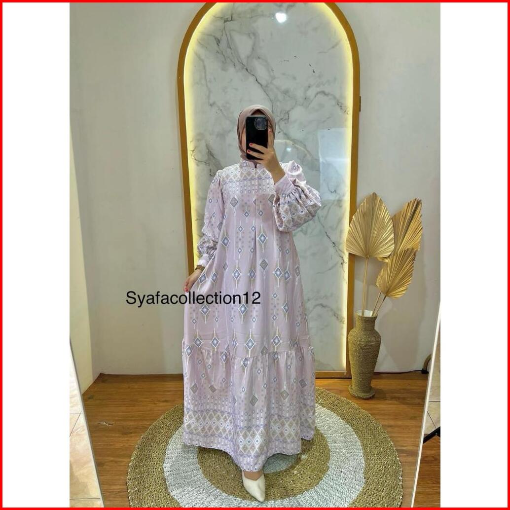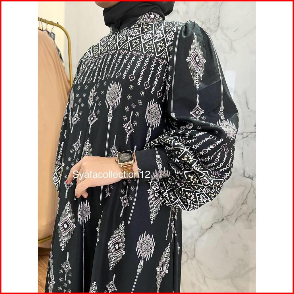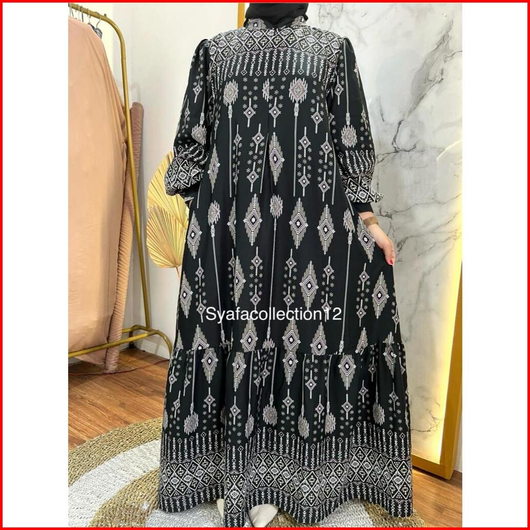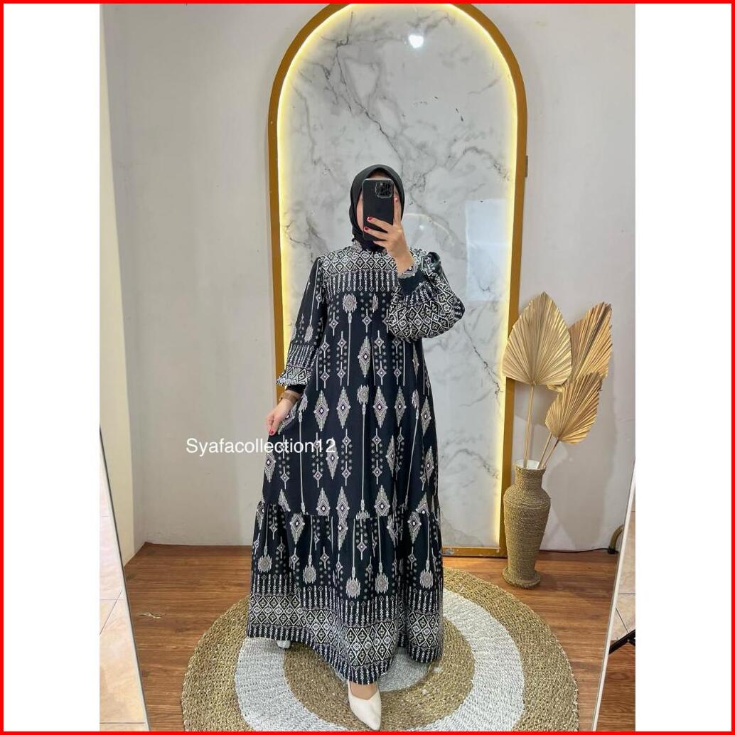 Syafacollection Alena Dress Gamis Formal Busana Wanita Muslim Motif Etnik