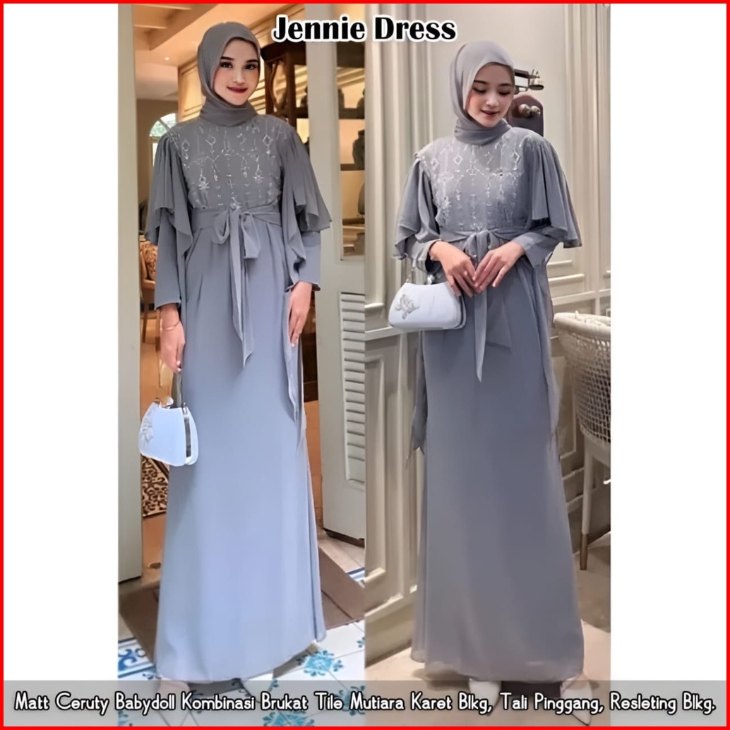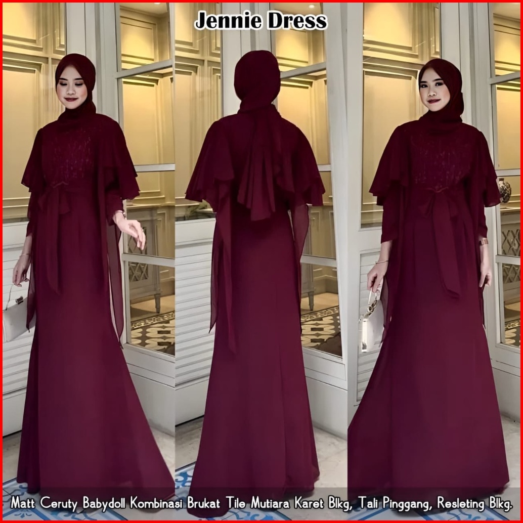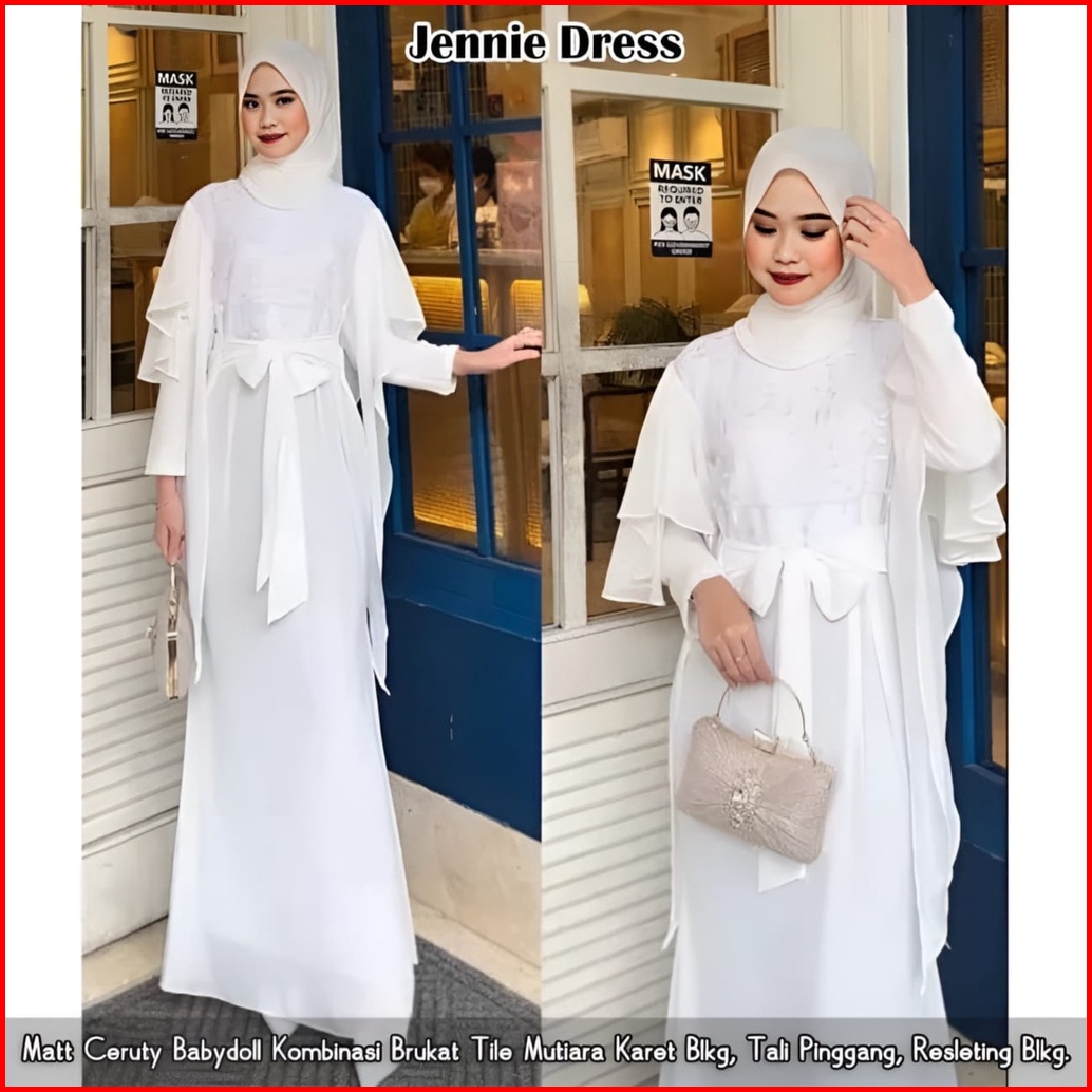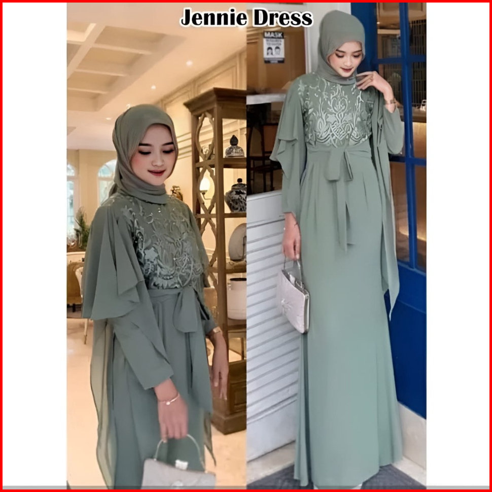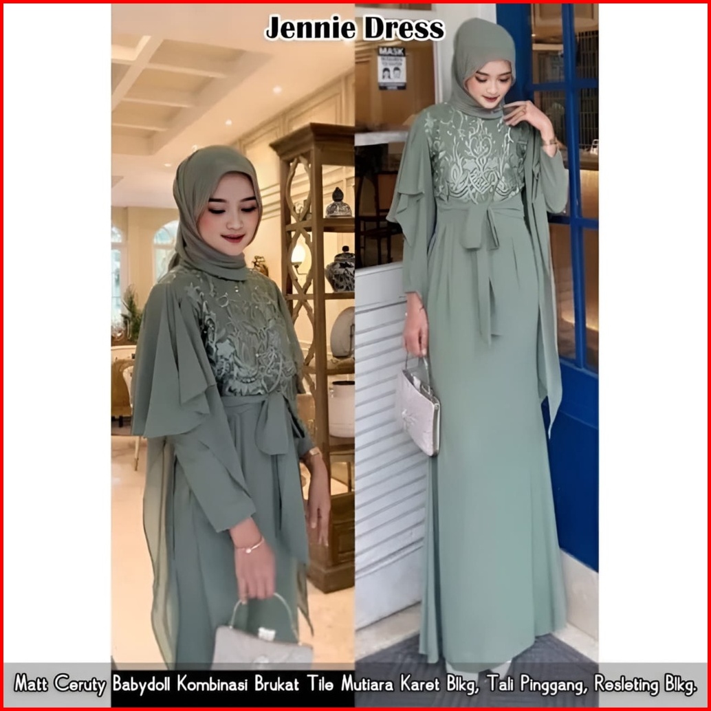 Vallina Outfit - Jennie Maxy Dress Set Outer Brokat Gamis Muslim Kondangan Remaja Wanita Kekinian Terbaru