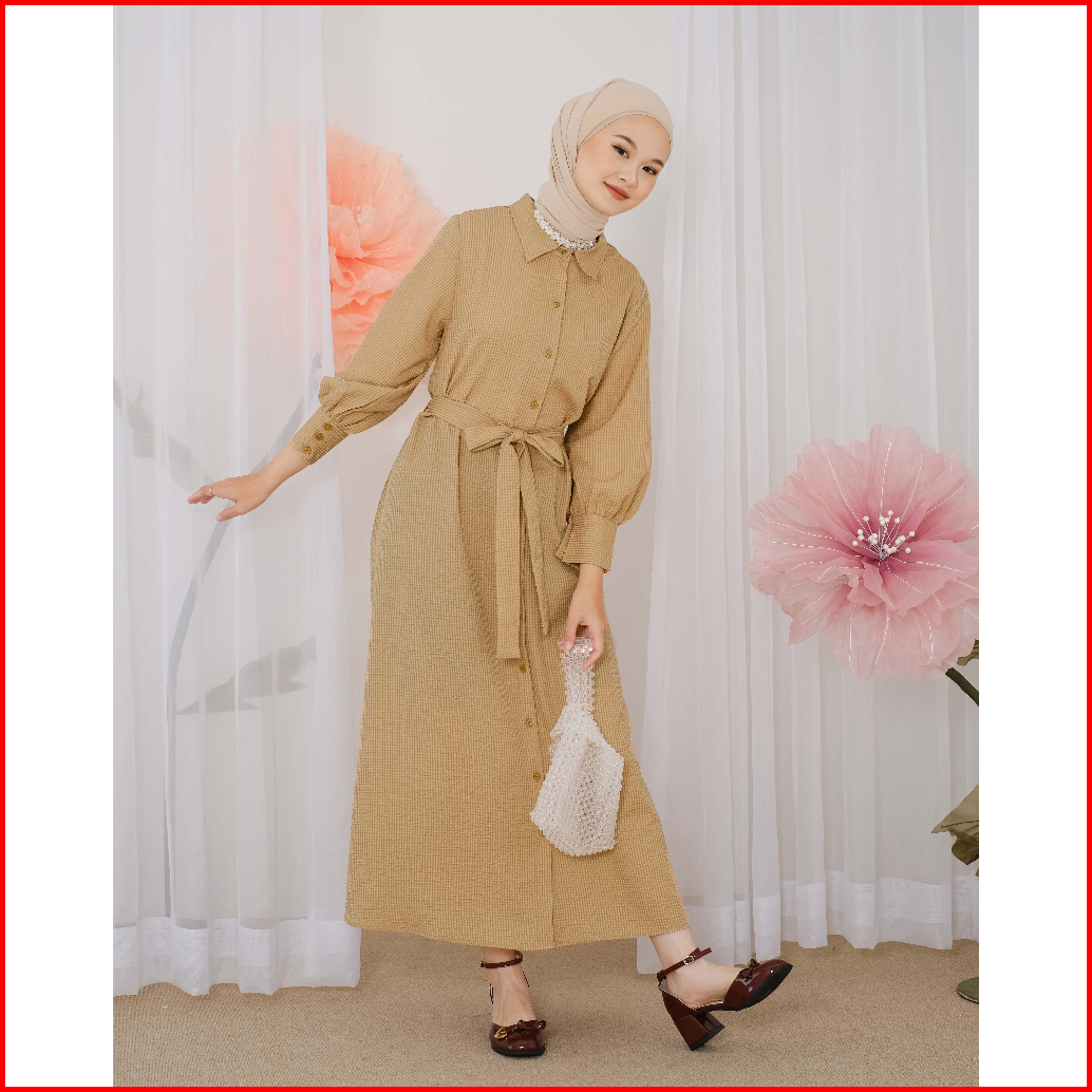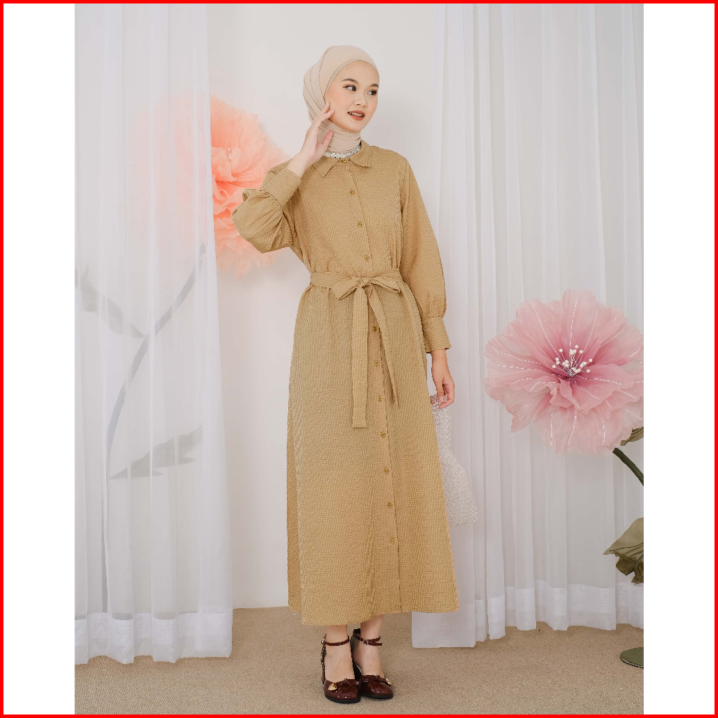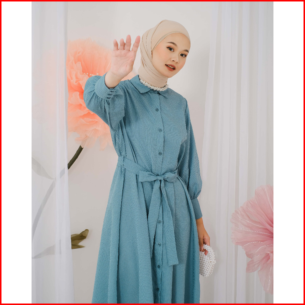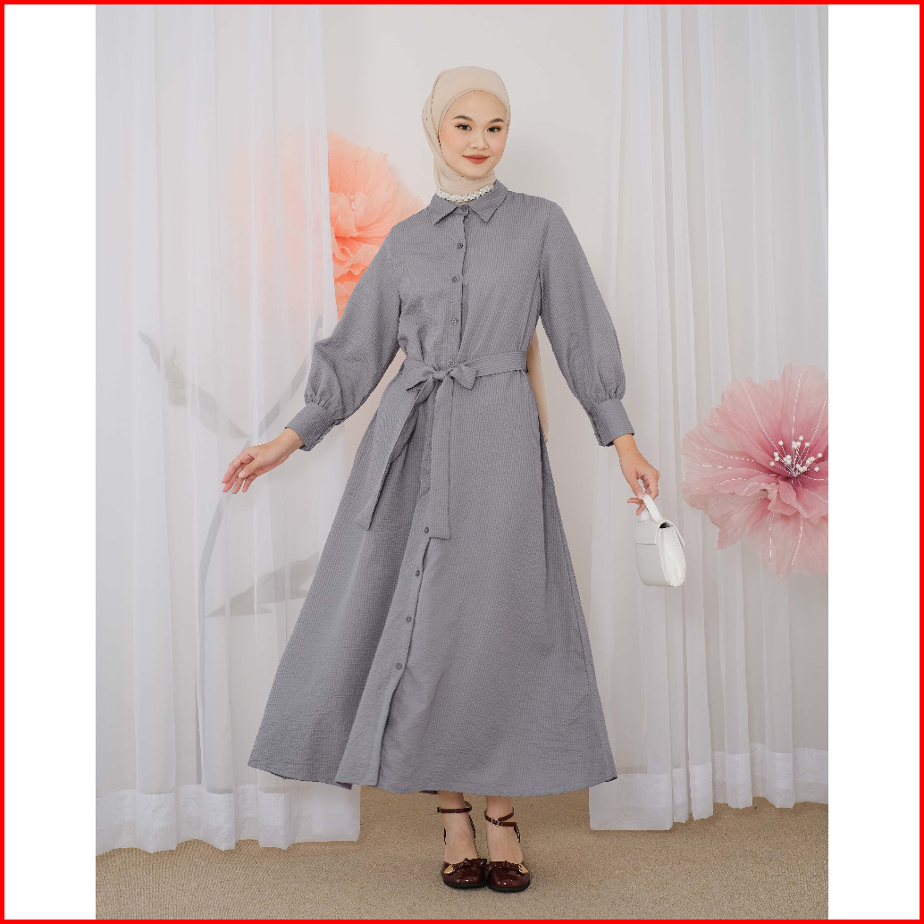 Mayoutfit Fabiana Mididress Gamis Dress A-line Crinkle Midi Shirt Sabuk Tali