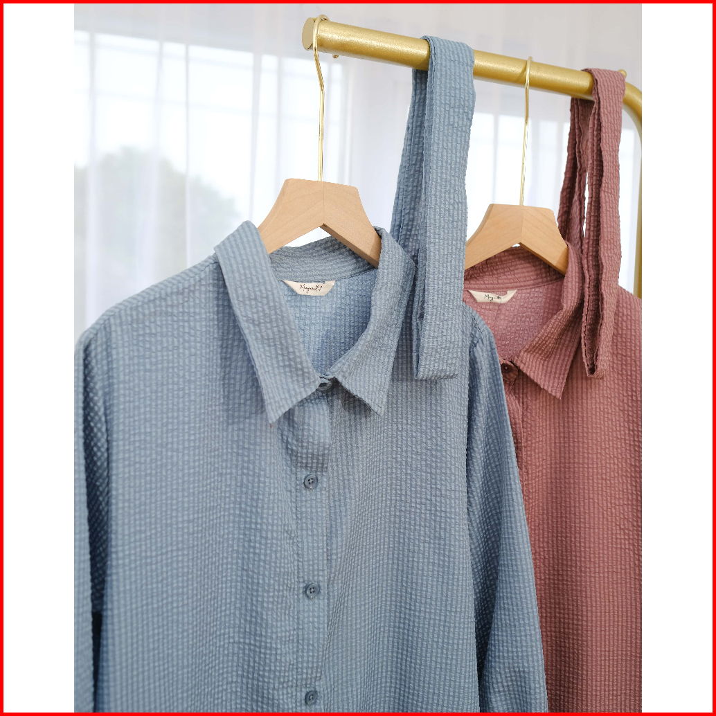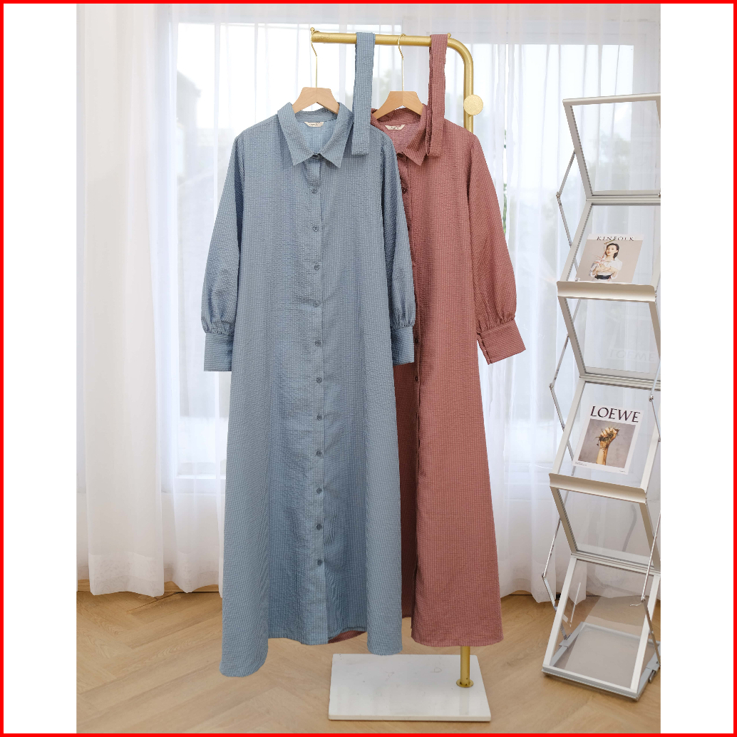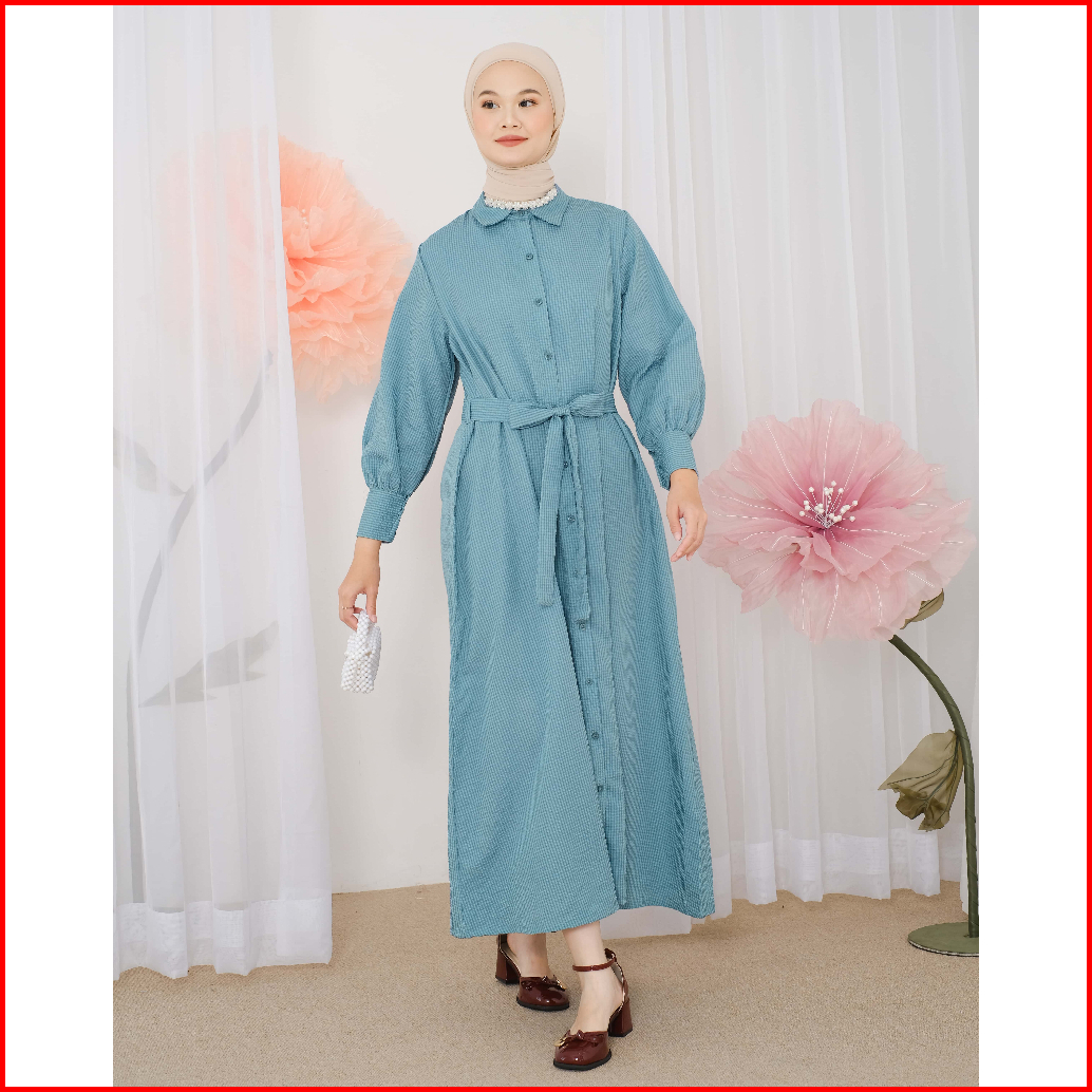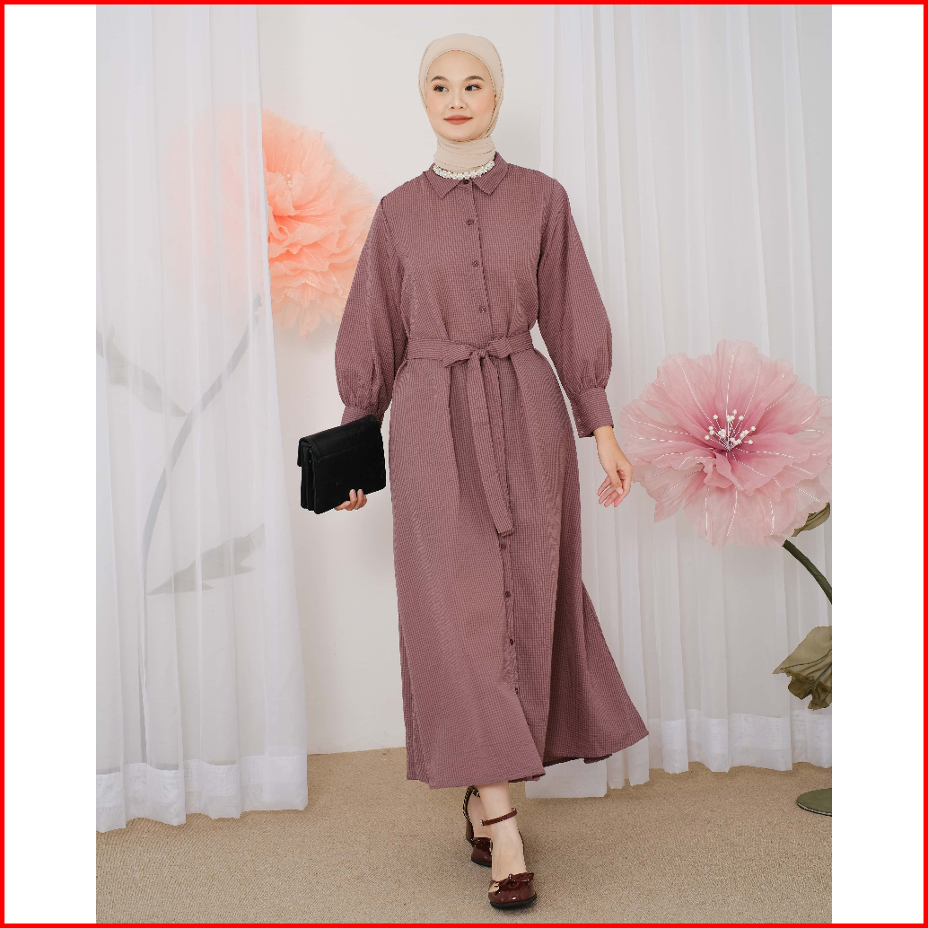 Mayoutfit Fabiana Mididress Gamis Dress A-line Crinkle Midi Shirt Sabuk Tali