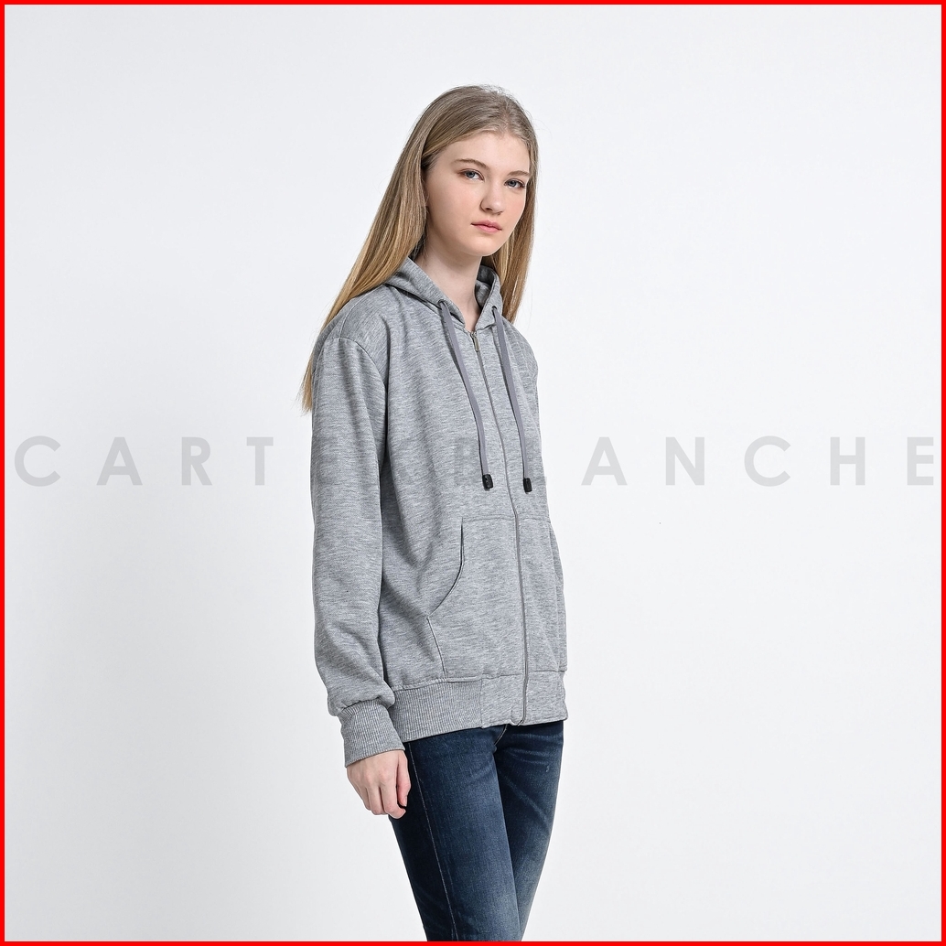 Cartexblanche - Lightgrey Abu Muda Polos Jaket Hoodie Zipper Unisex Pria - Wanita Size M - Xxl