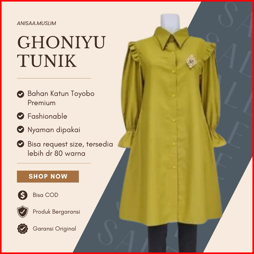Baju Atasan Wanita Terbaru Ghoniyu Tunik Tunic Katun Toyobo Premium Putih Hitam Kekinian