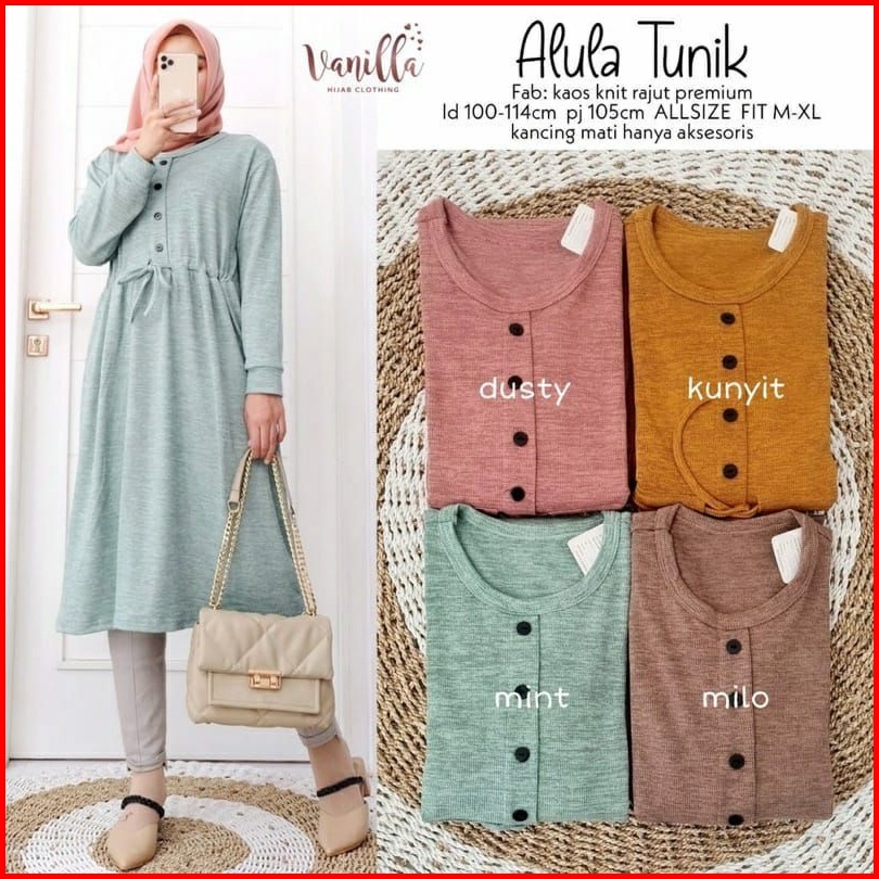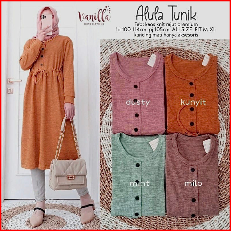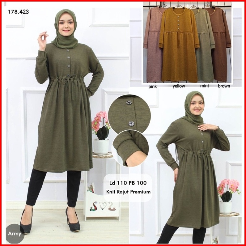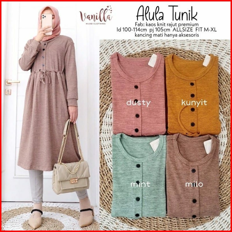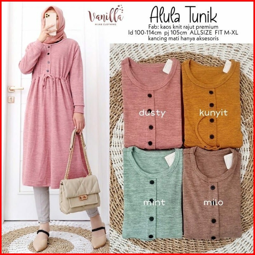 Am - Alula Tunik Wanita Serut Pinggang Kaos Rajut Premium R.14 - 473