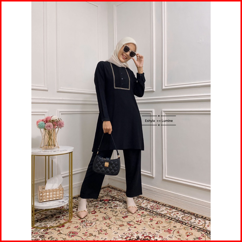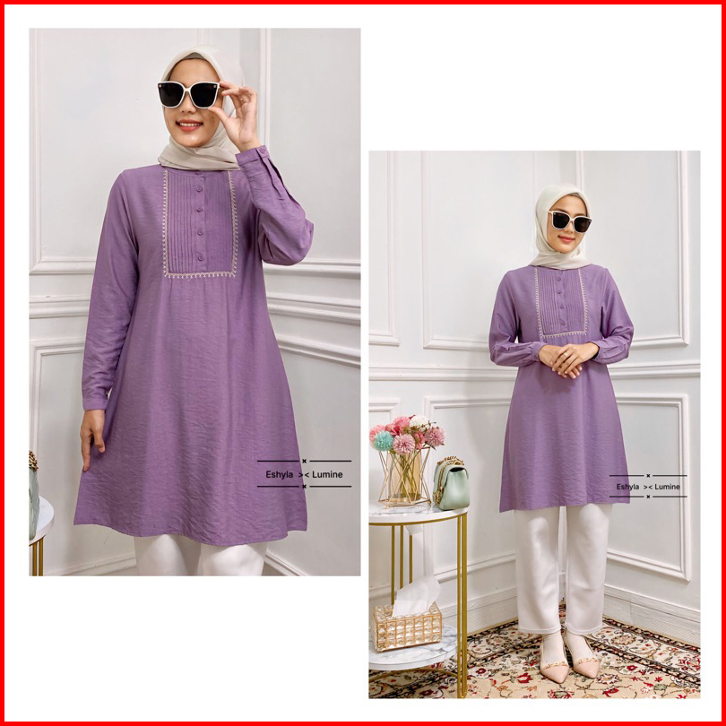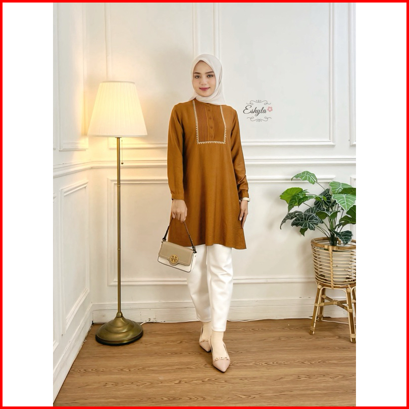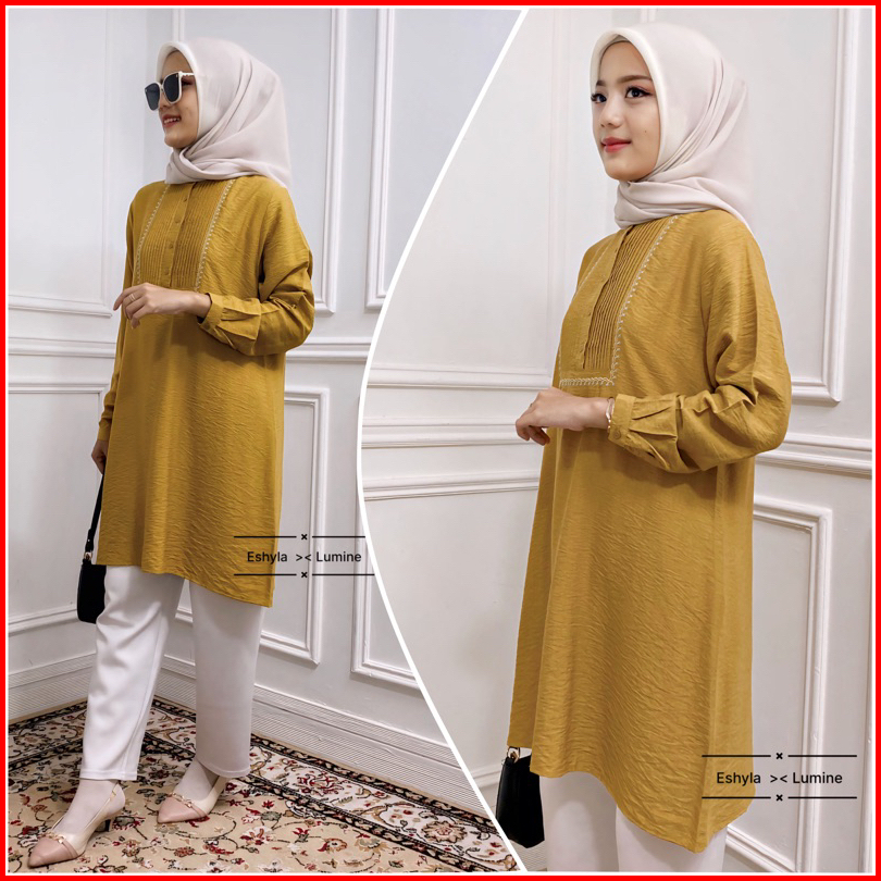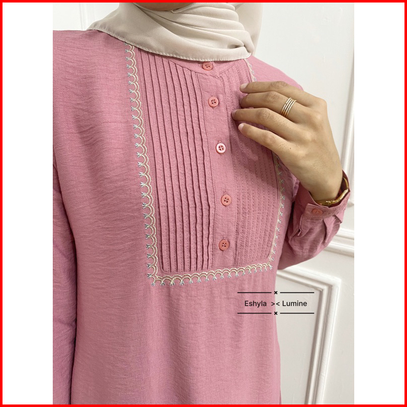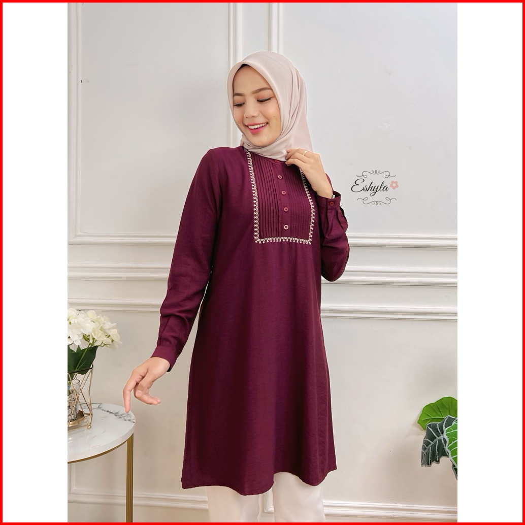Narra Tunik By. Eshyla- Tunik Wanita Polos Katun Linen Crinkle Bordir Opnaisel