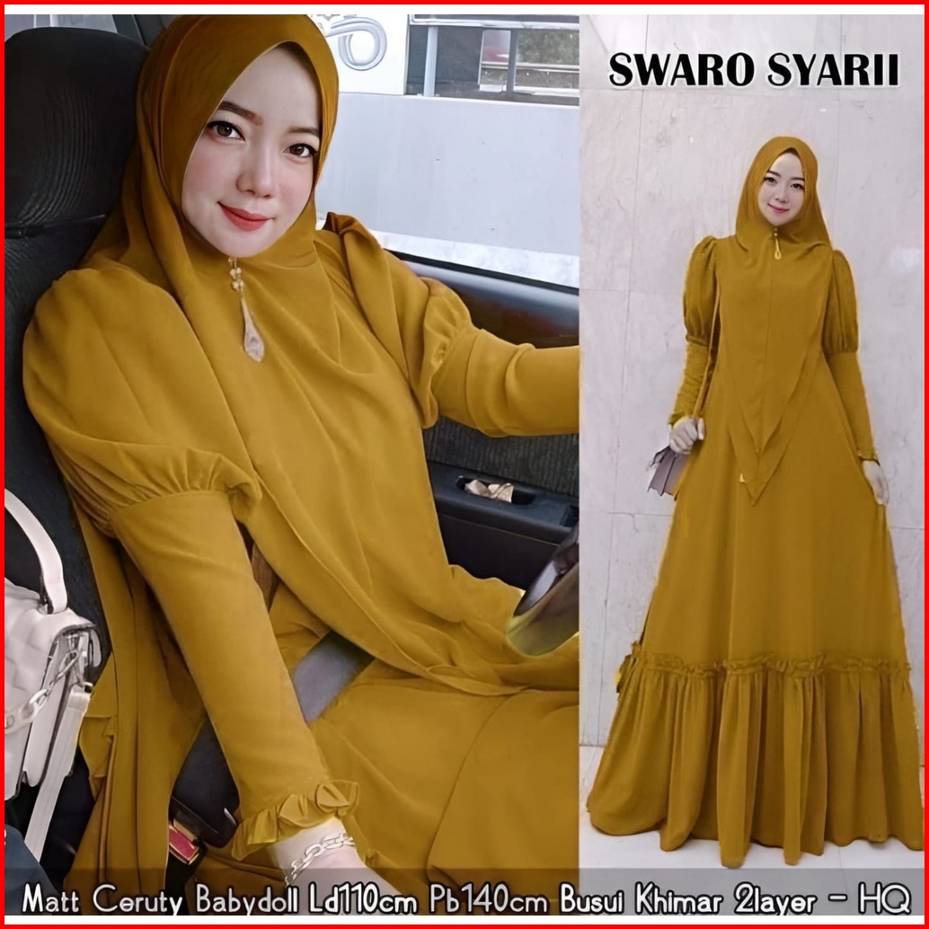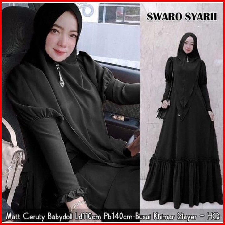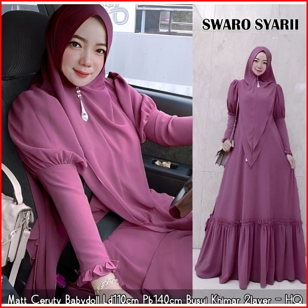 R.a - Swaro Syari Gamis Busui Ceruty Babydoll Furing Dress Syar I Khimar 2 Layer Muslim Premium