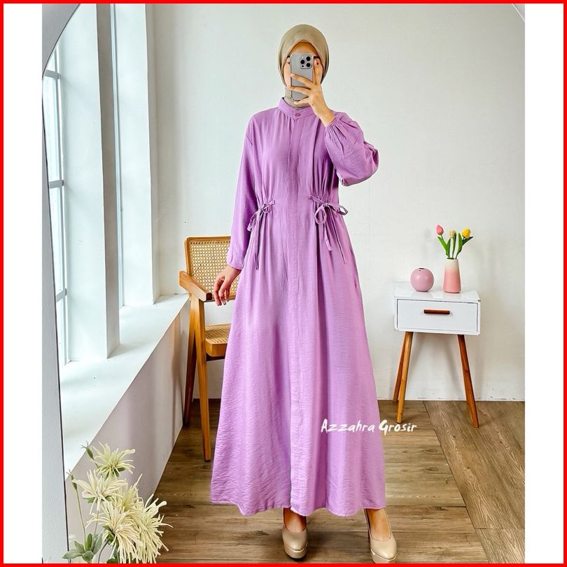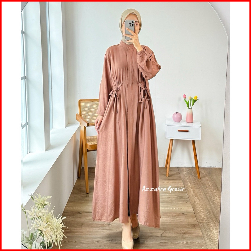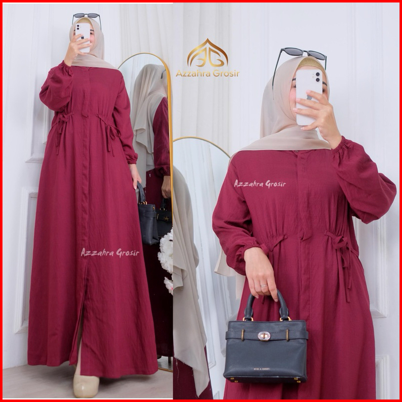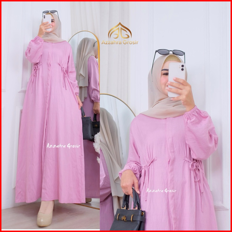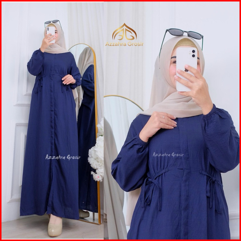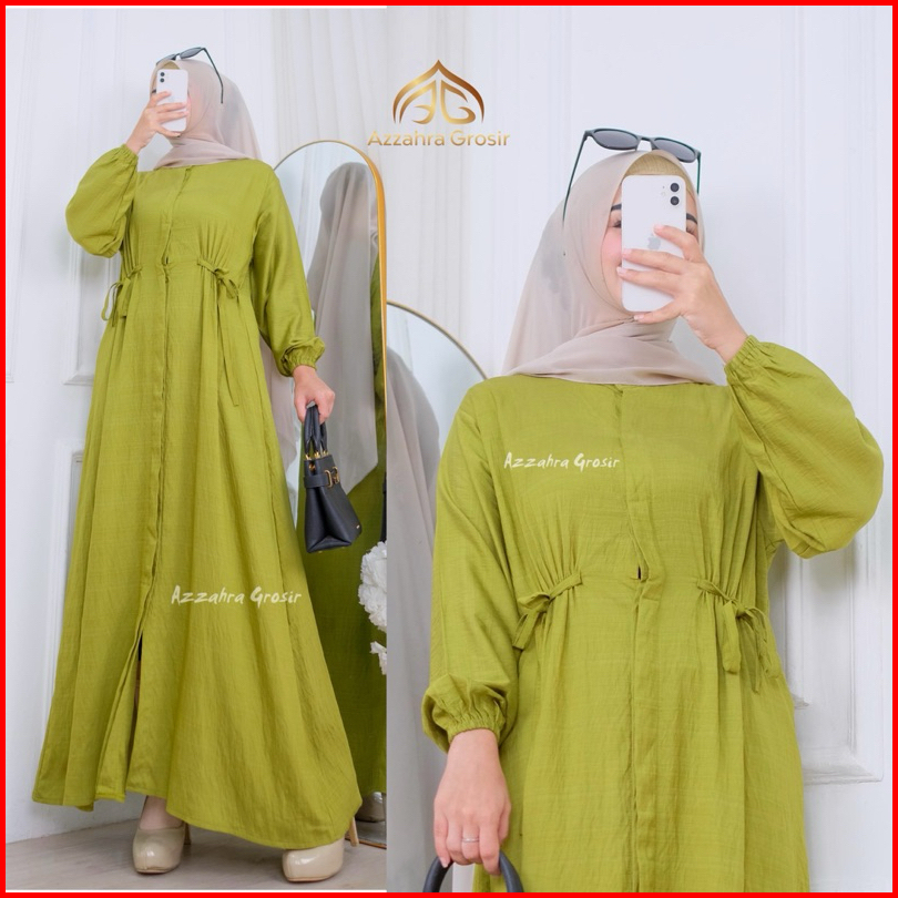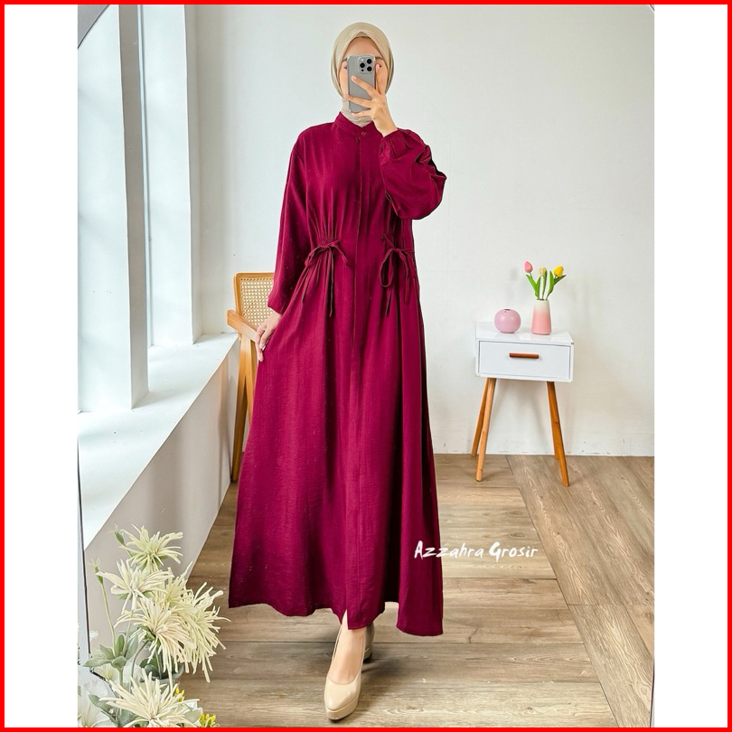 Am - Amira Dress Gamis Abaya Wanita Kancing Intip Polo Linen Busui 644-7949