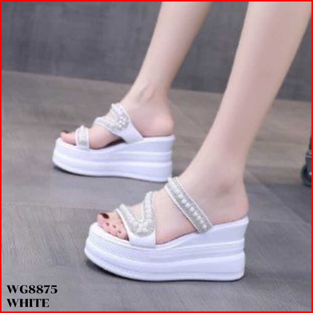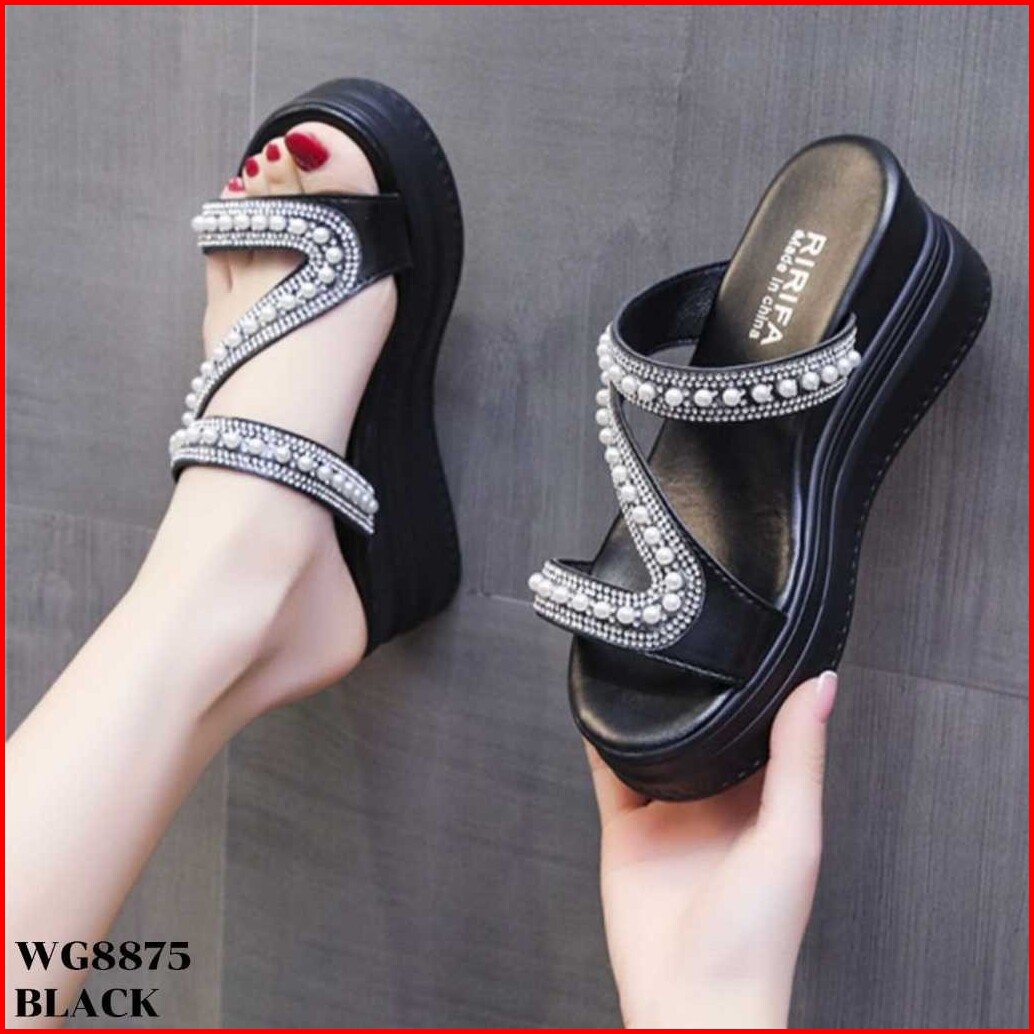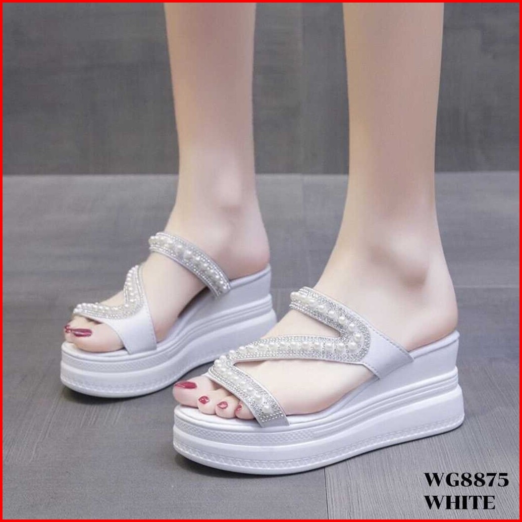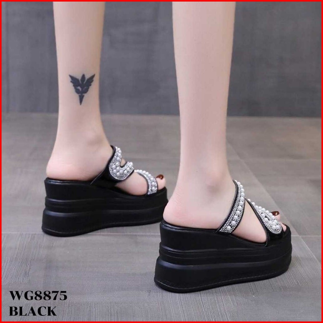 Prf Sandal Wedges Highsole Tinggi 7.5cm Red Black White Korea Shoes Pearls Design Bahan Sintetis Wg8875
