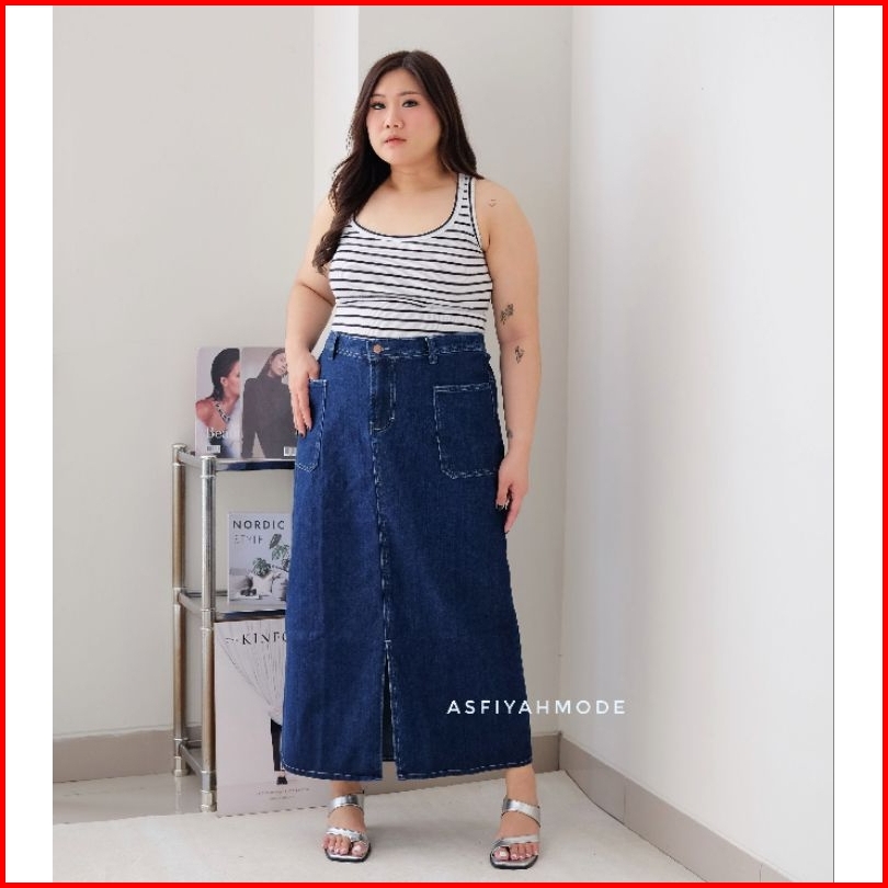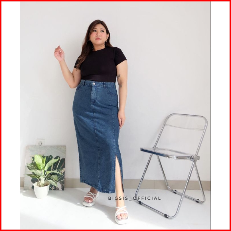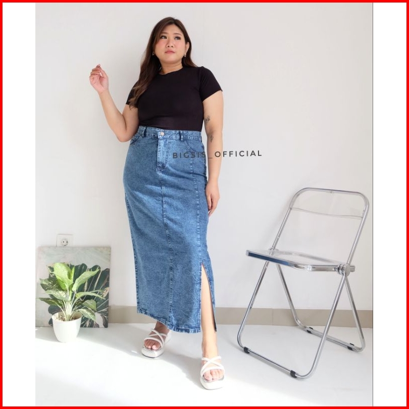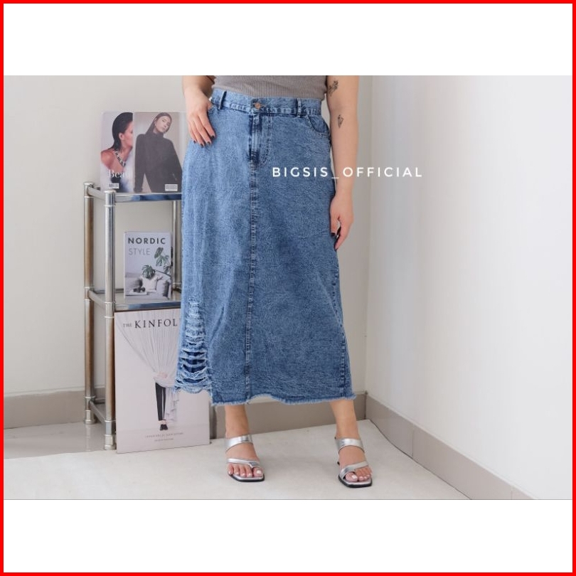 Rok Jeans Wanita Josie Skirt Rok Sobek Jeans Jumbo