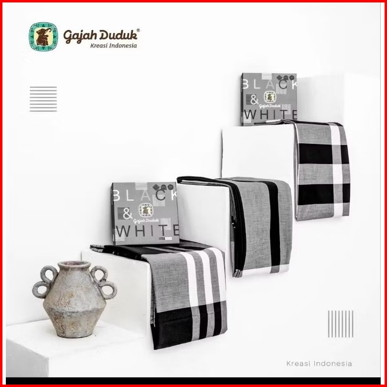 Gajah Duduk Black And White Dewasa Sarung Pria Hitam Putih Full Motif Katun Rayon Lembut